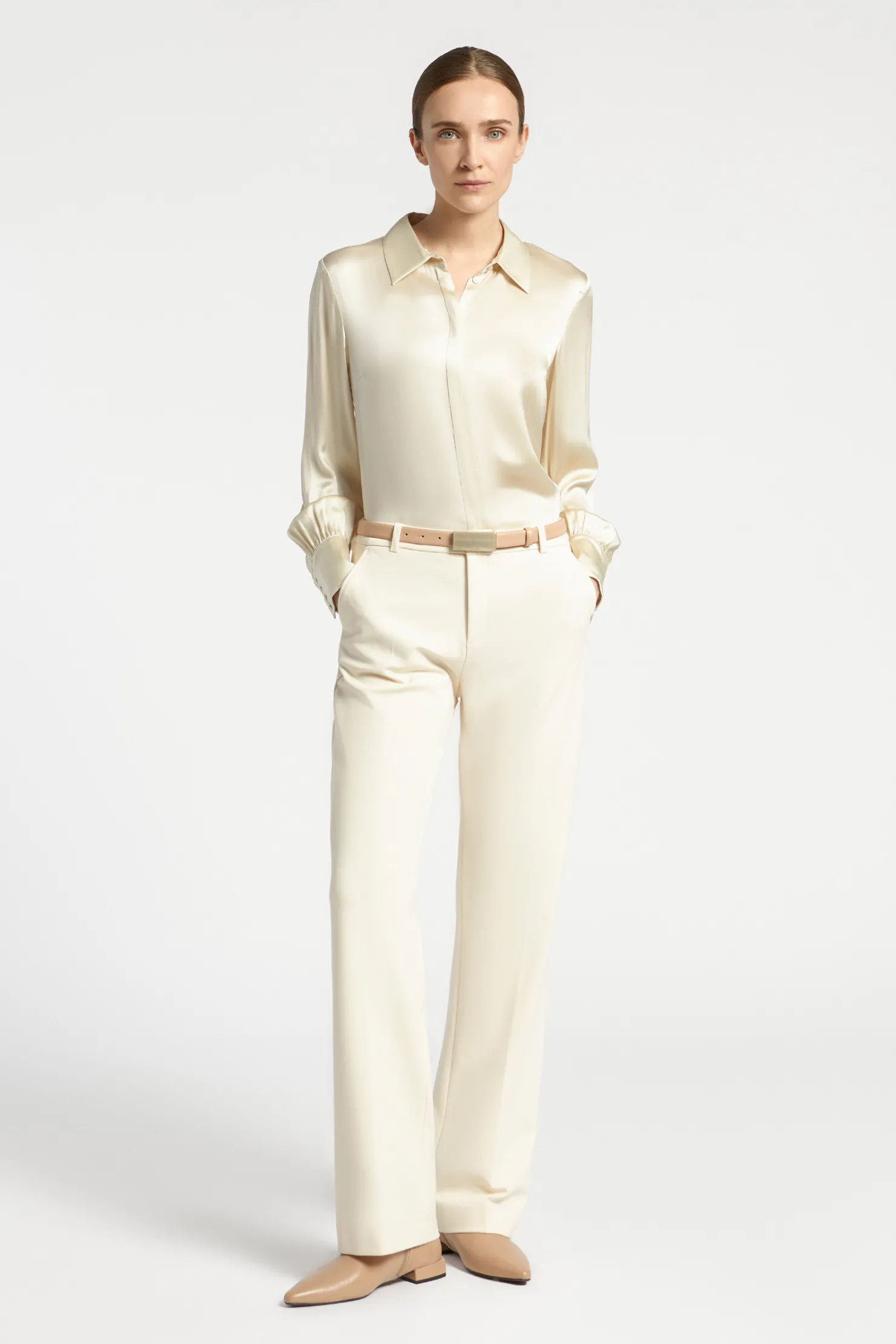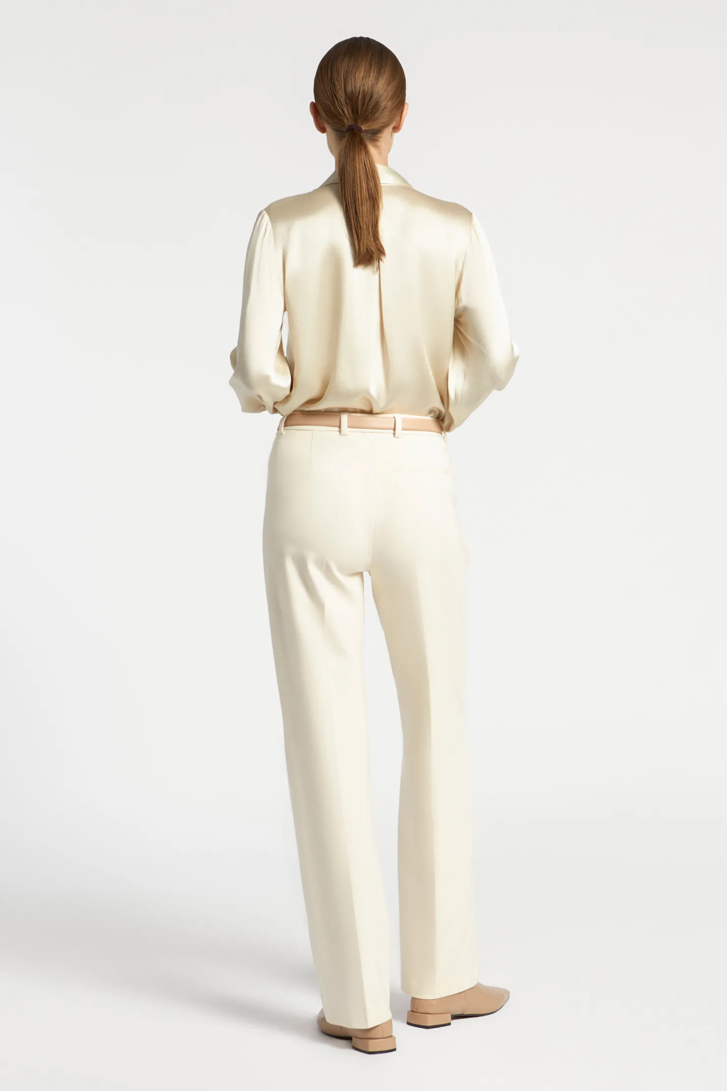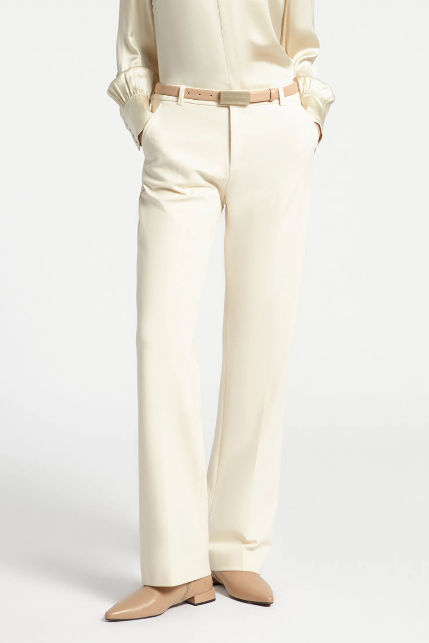 Elegante pasvorm met rechte pijpen Twee steekzakken Zachte stof met hoog draagcomfort Sluiting met rits en knop Ceintuu…
