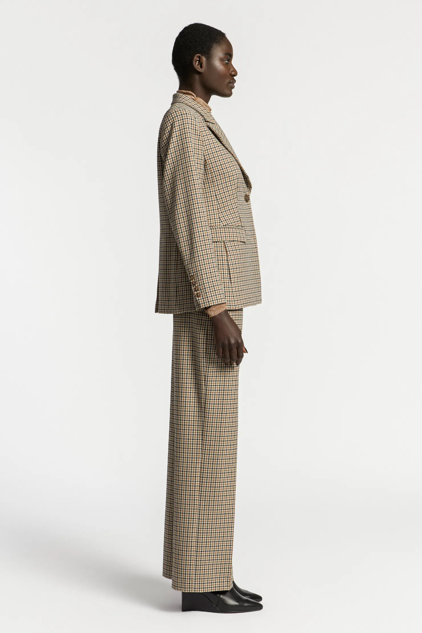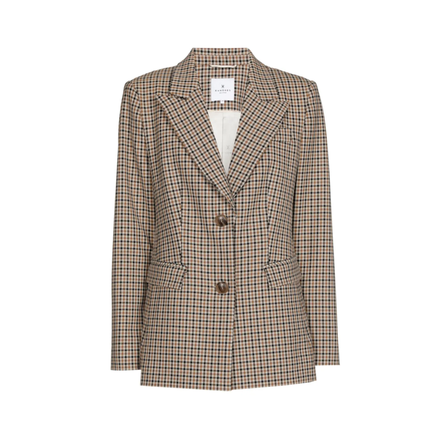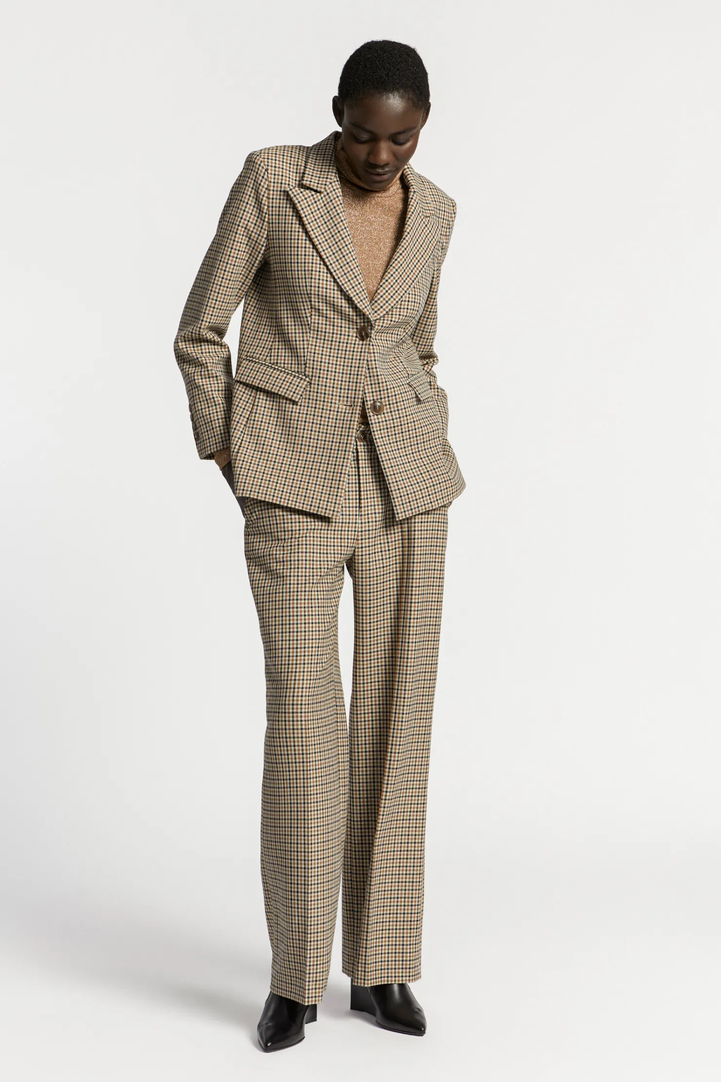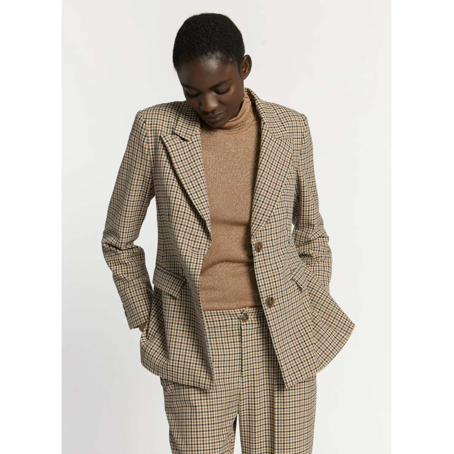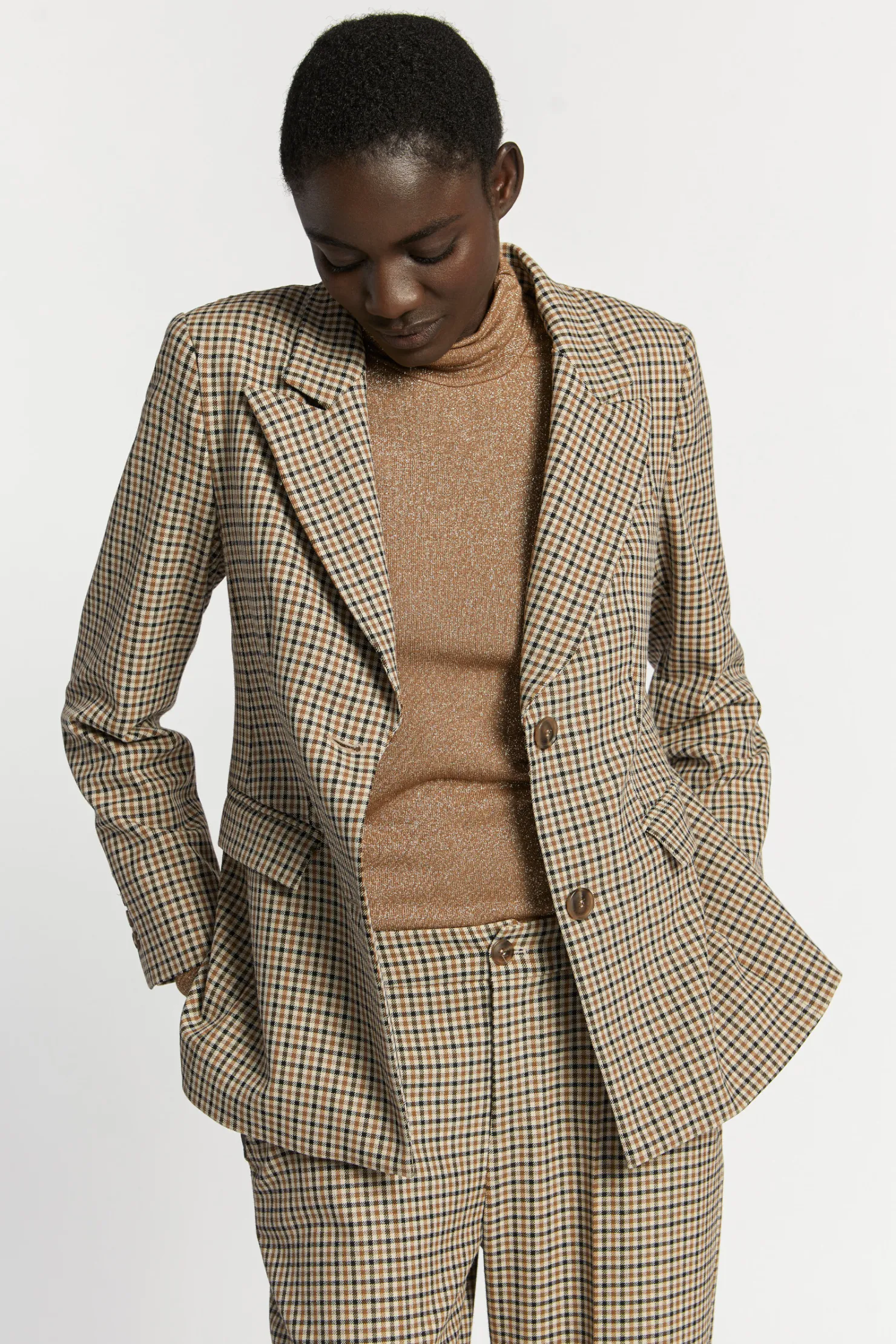 Gecentreerde pasvorm Blazer met geruite print Zakken met klep Mouwen met knoopjes en split Gevoerd