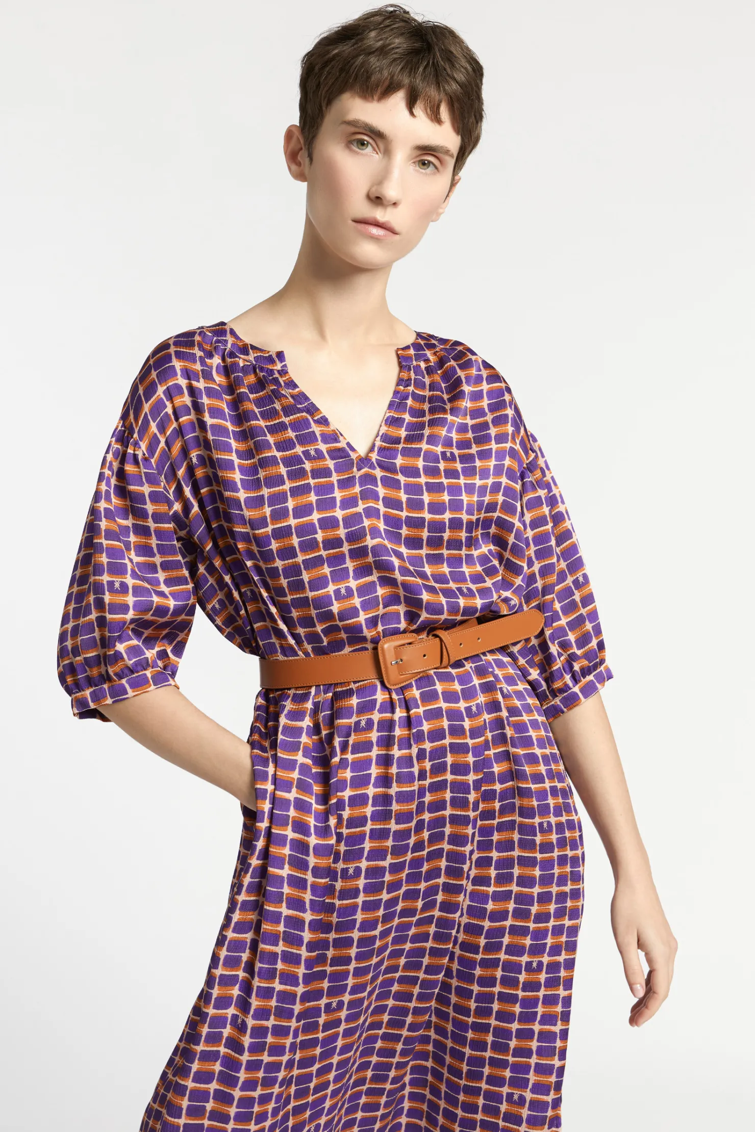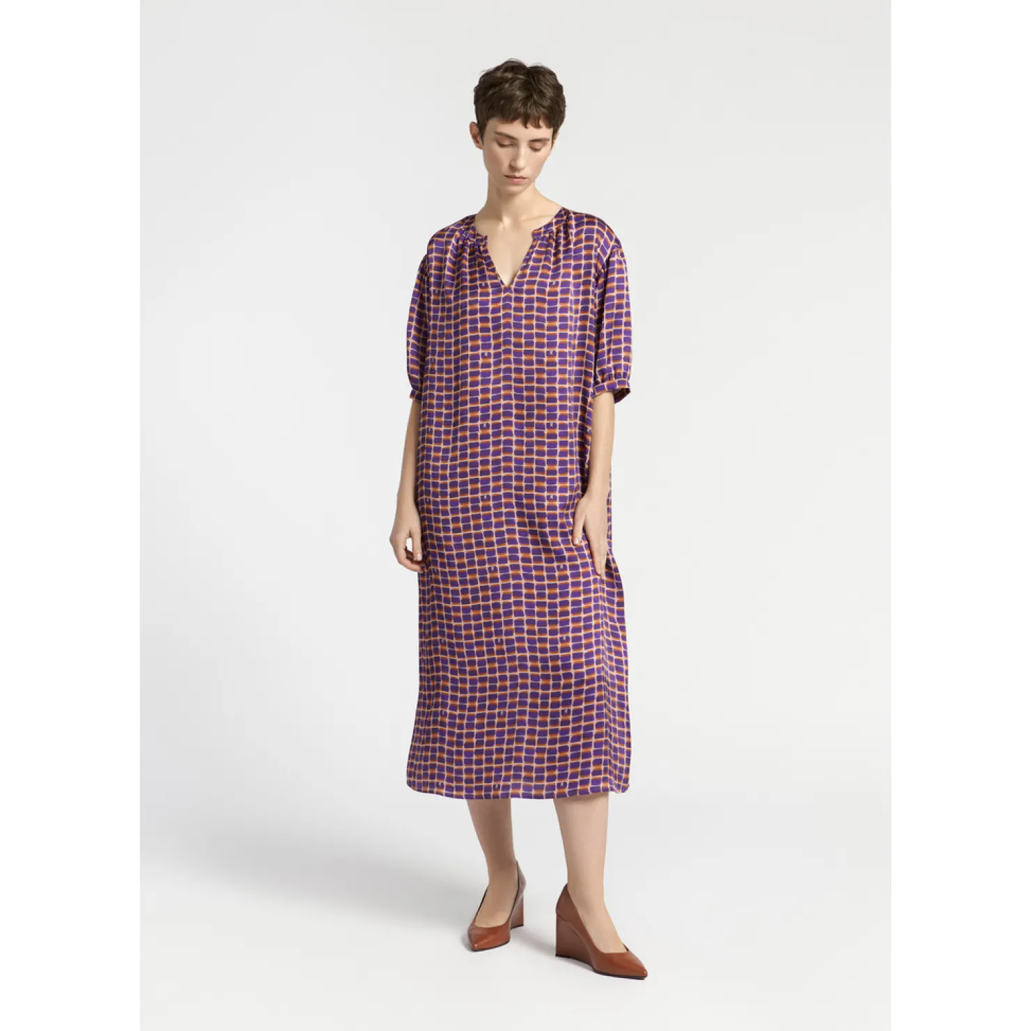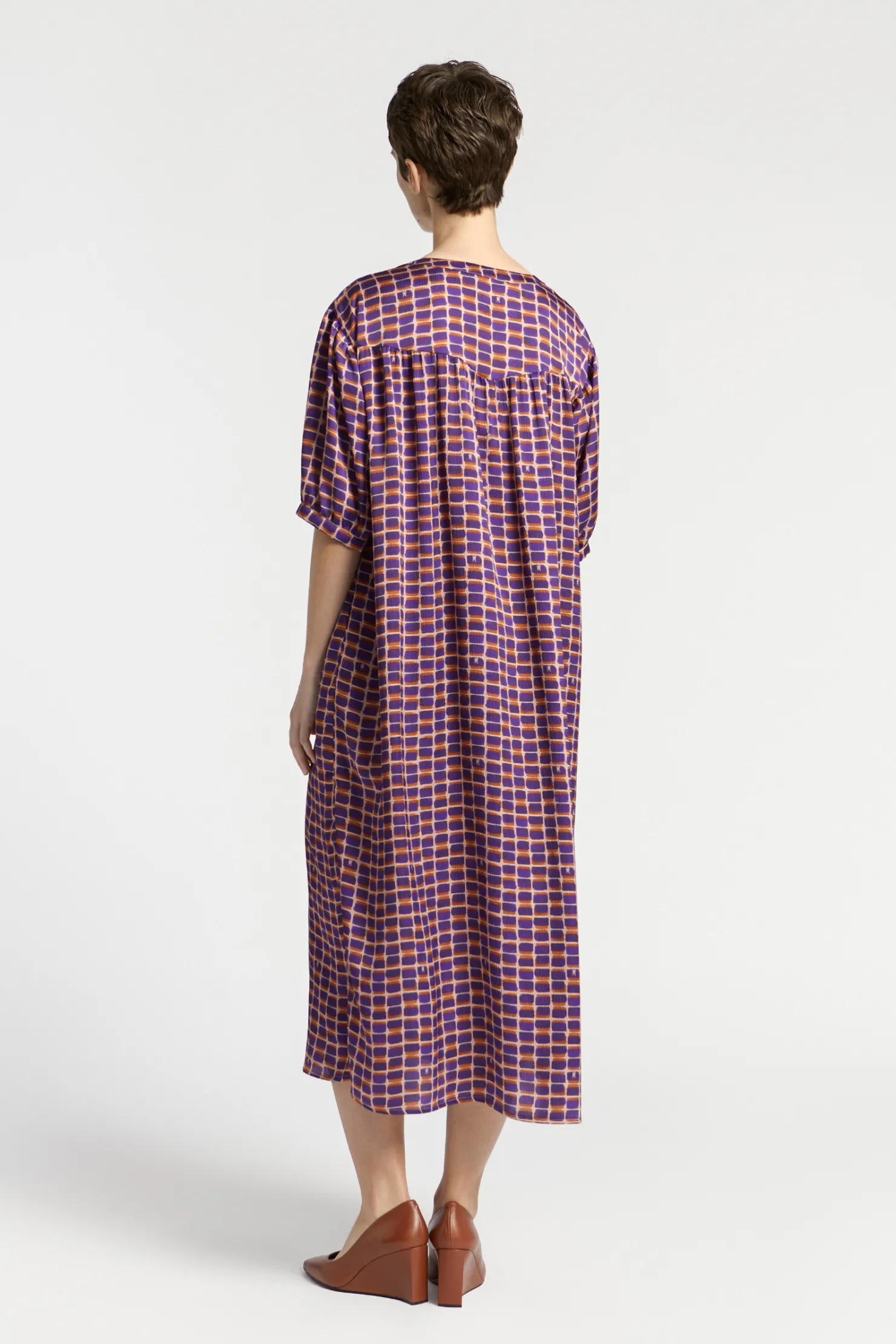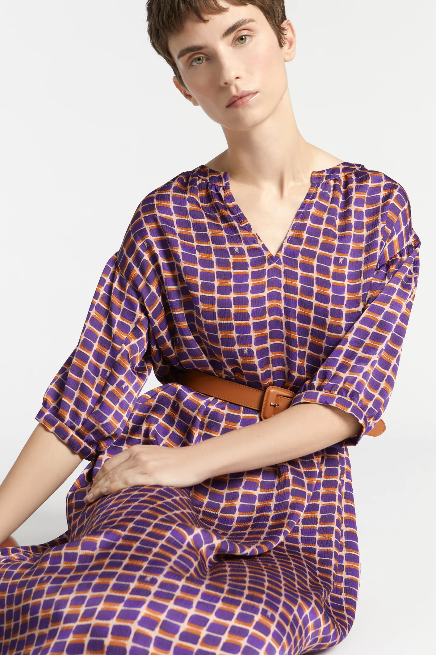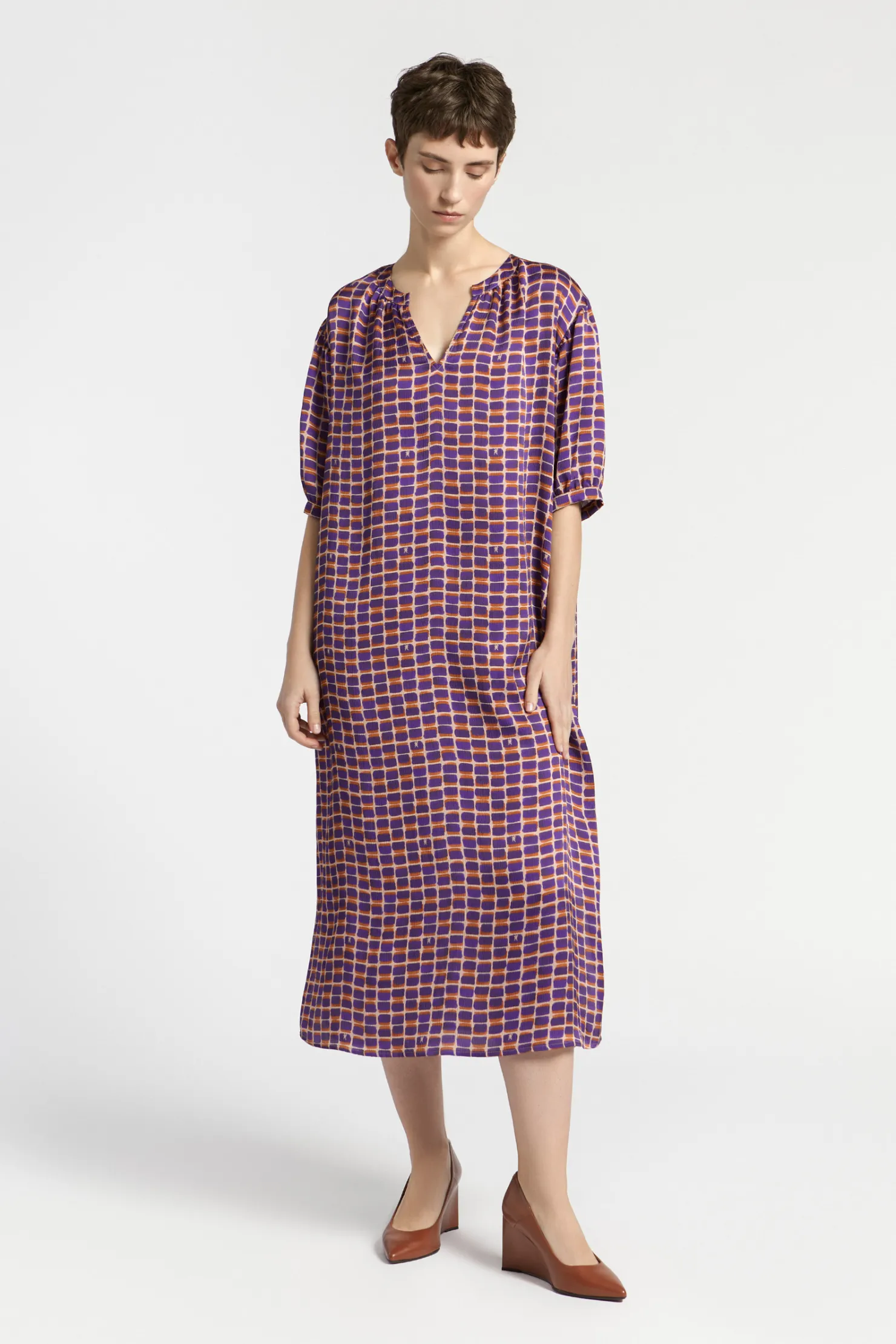 Volumineuze seersucker jurkGerecycleerde polyester Ronde kraag met split Drop shoulder met ballonmouw Split in de zijna…