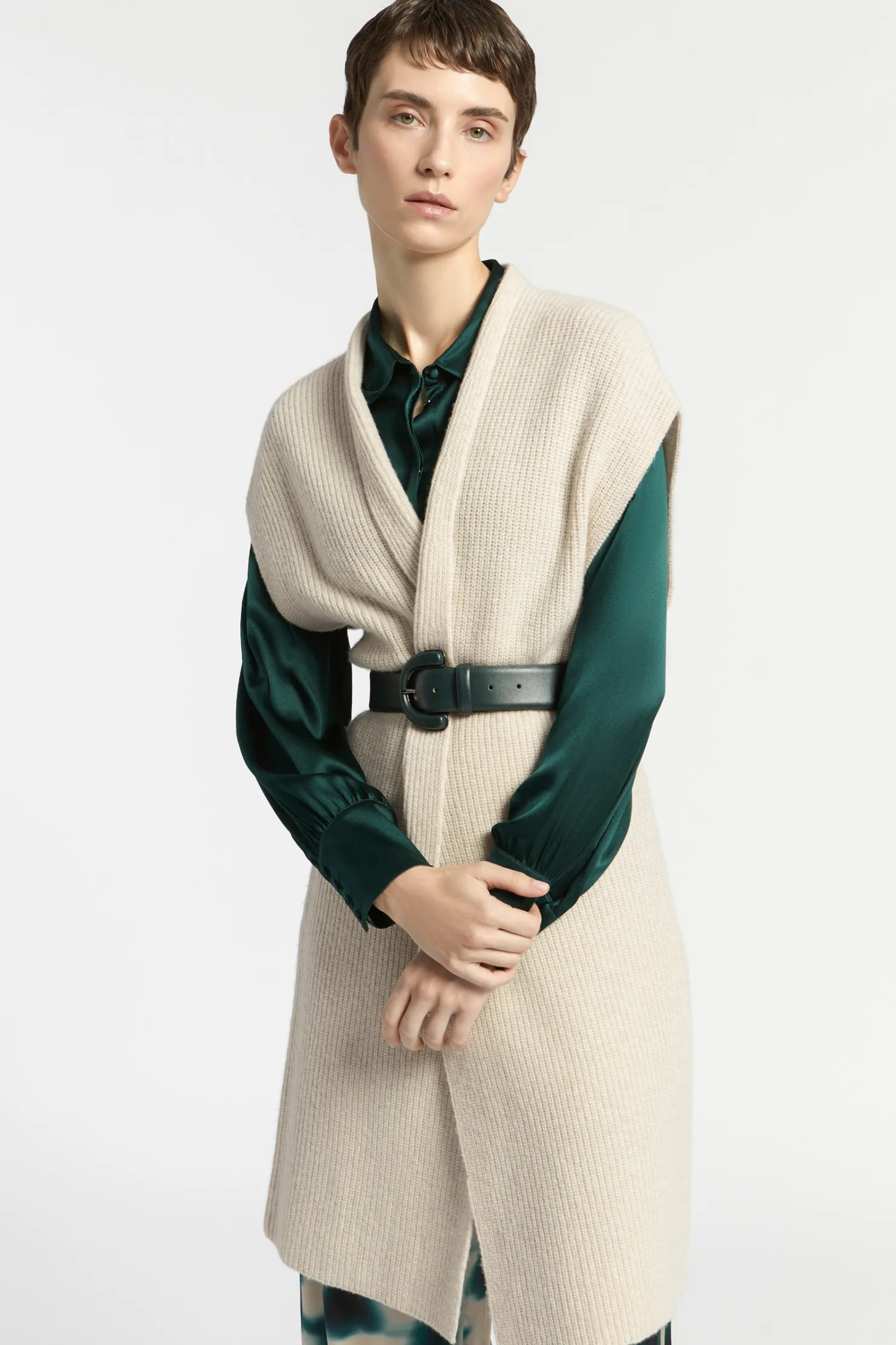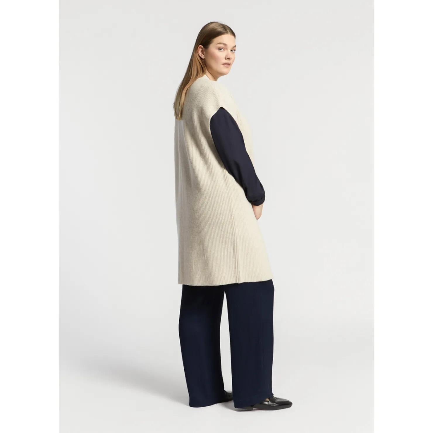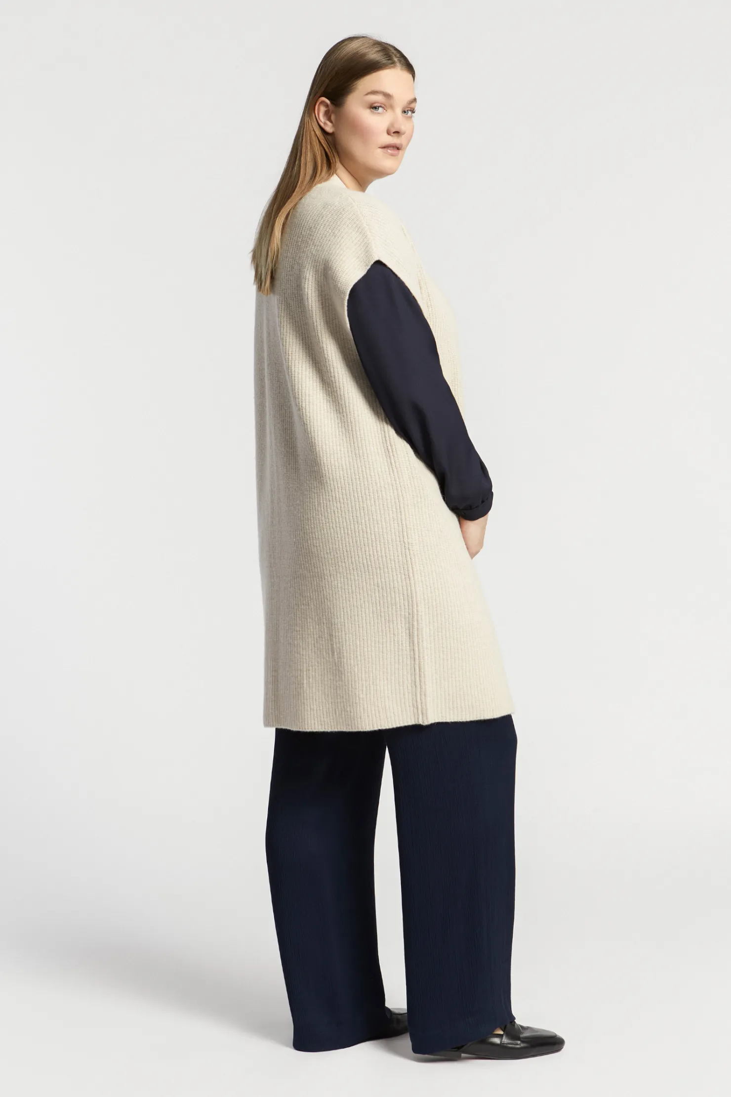 Lange cardigan Mouwloos Gerecycleerde wol
