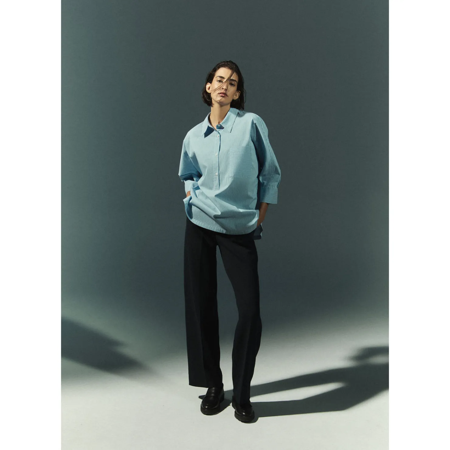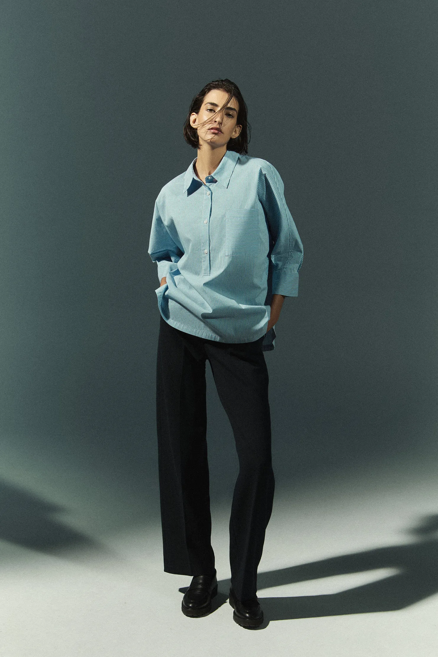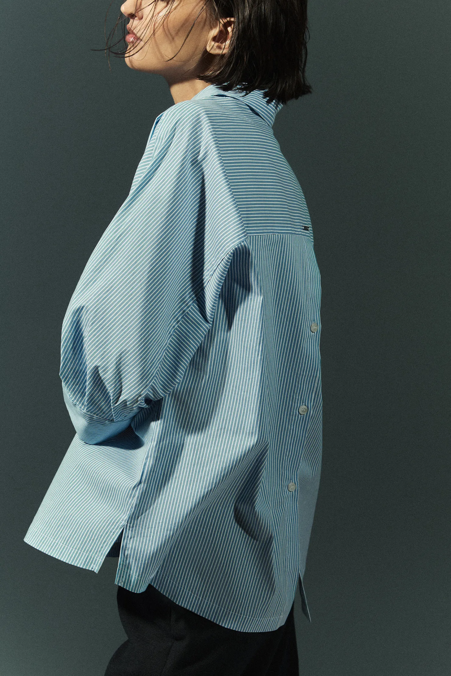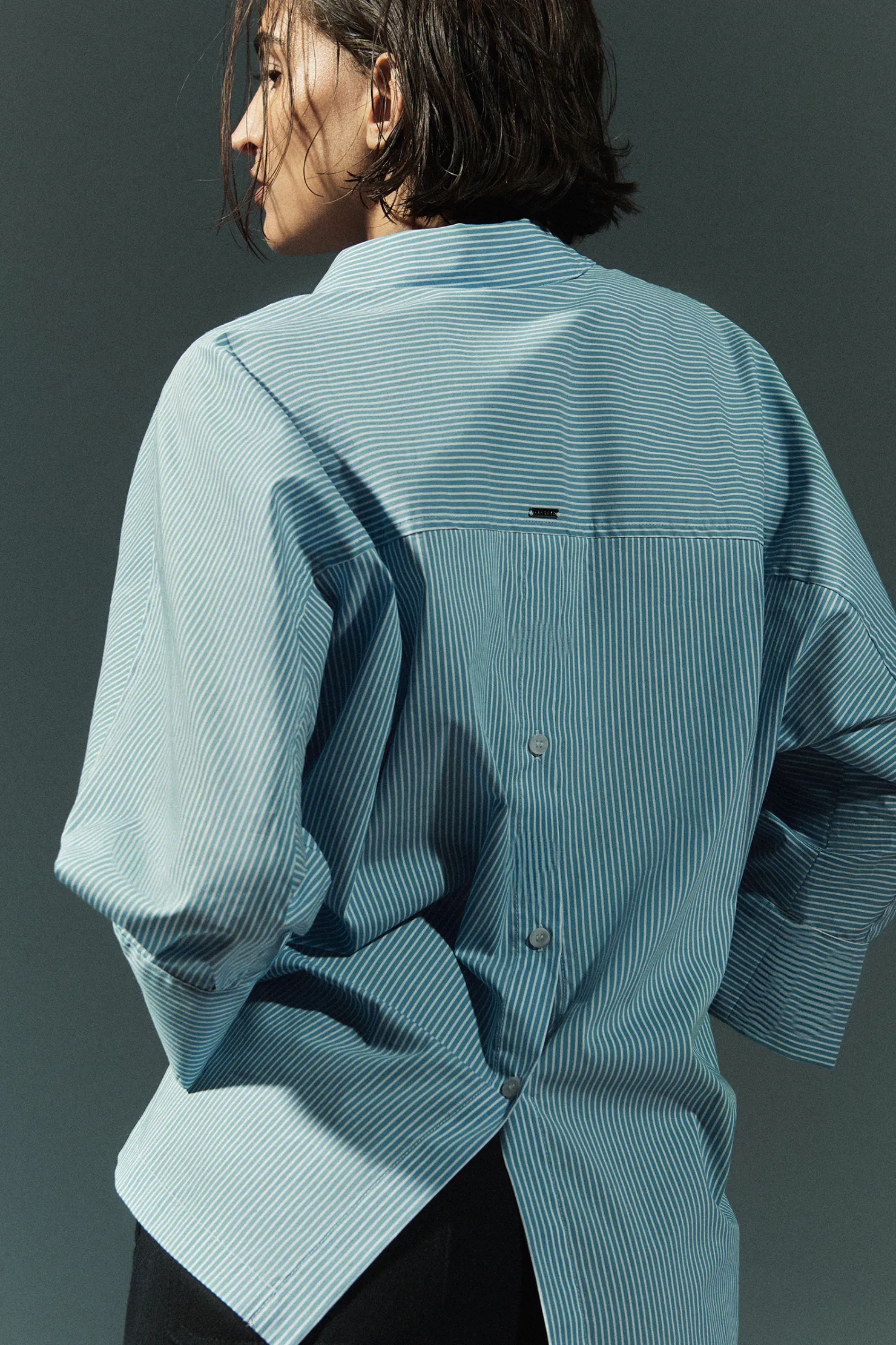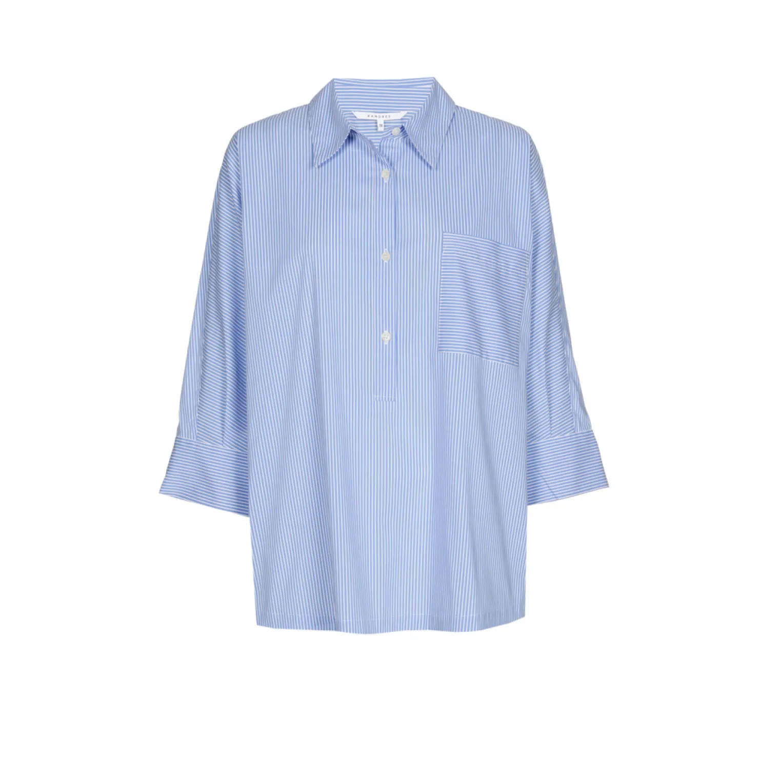 HemdkraagHalve knopenrij, voor- en achteraanBorstzakje¾ mouwen met brede cuff