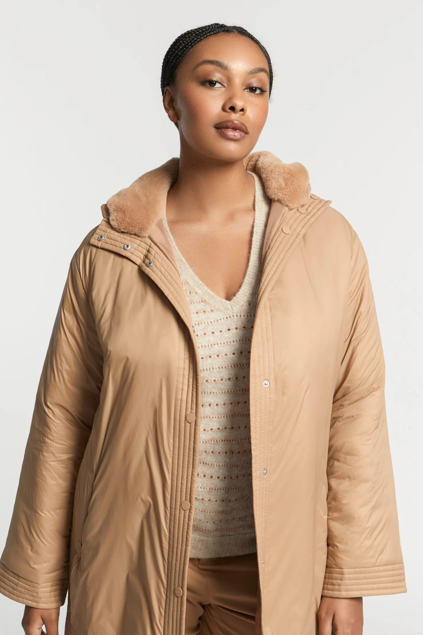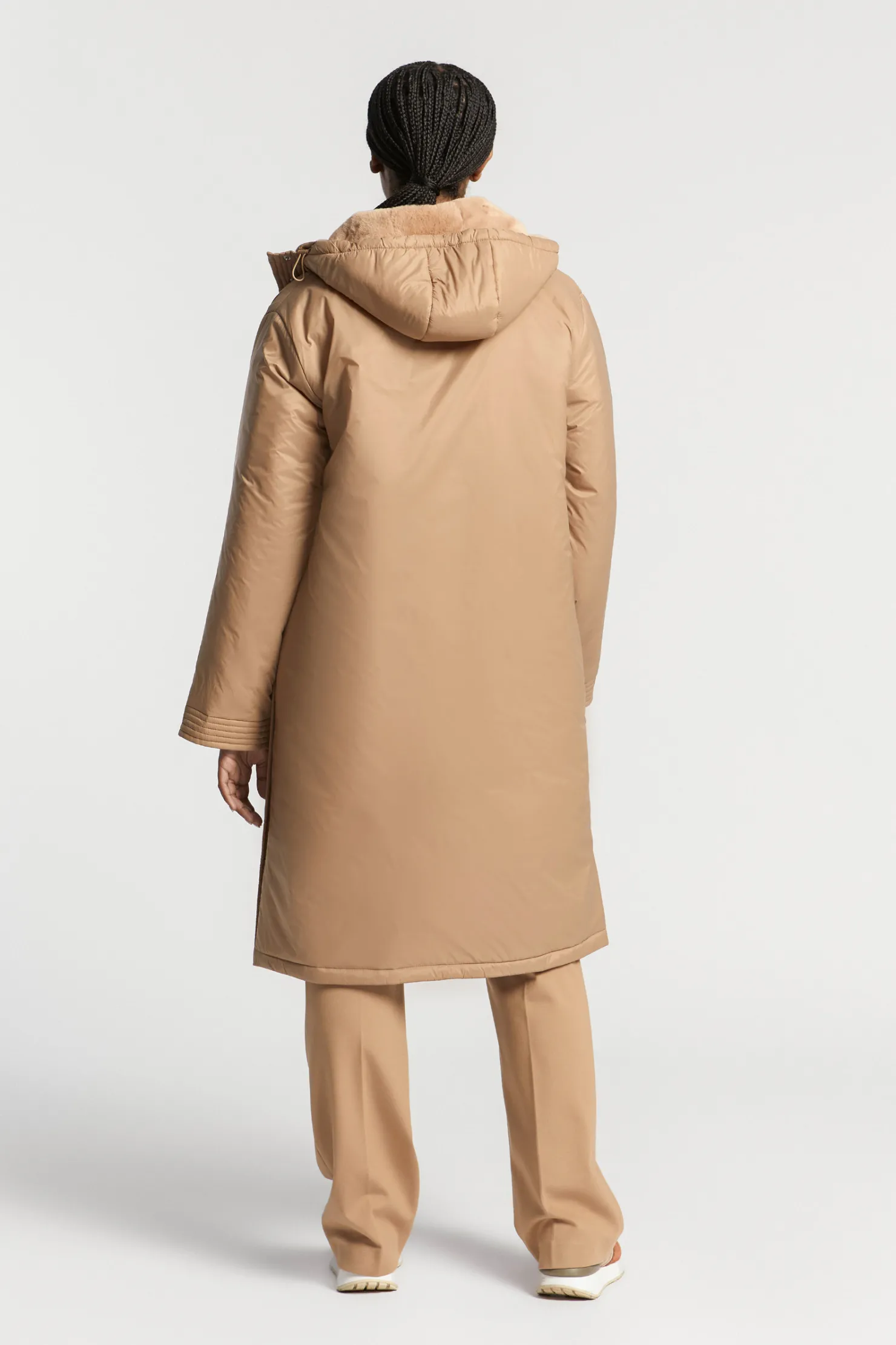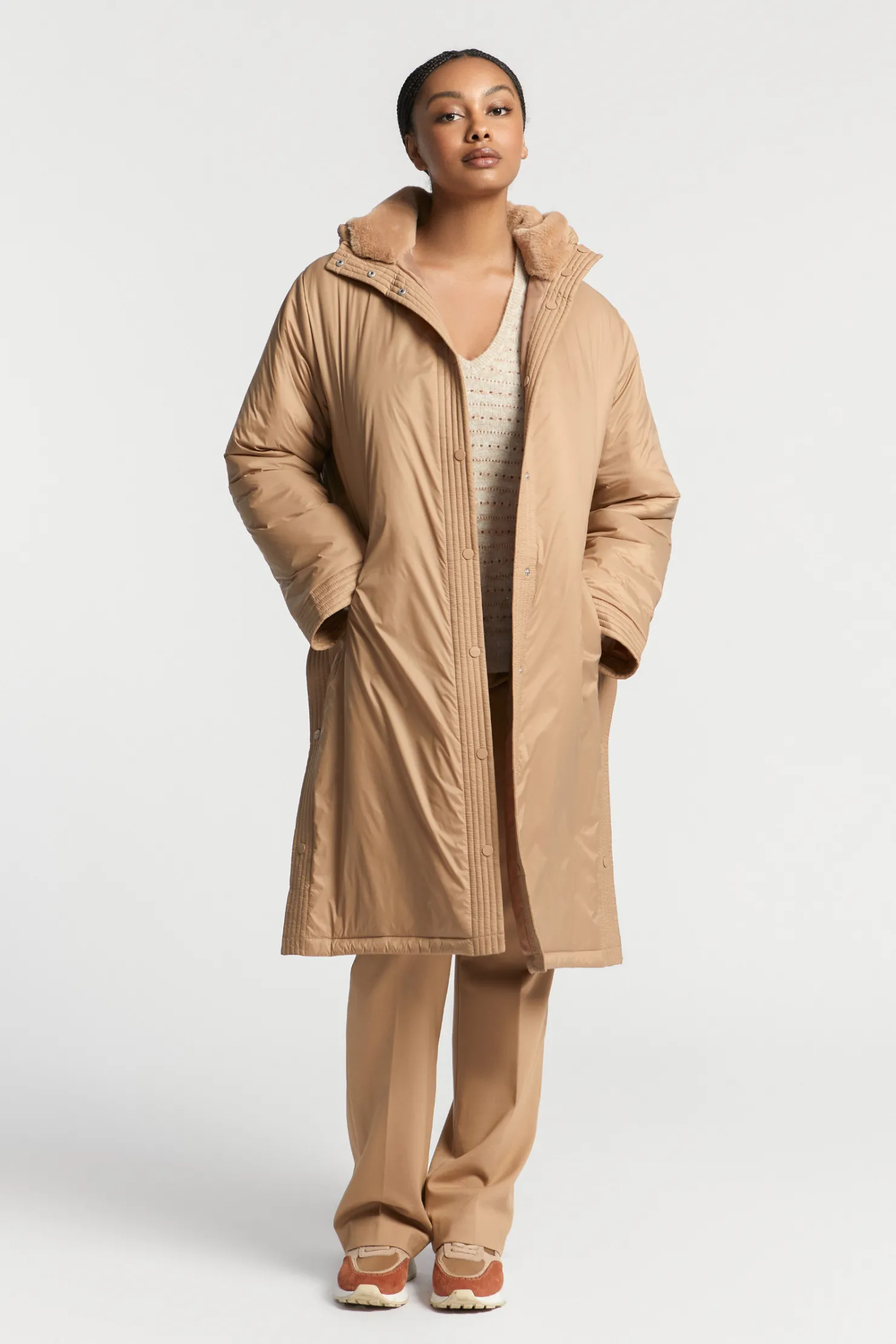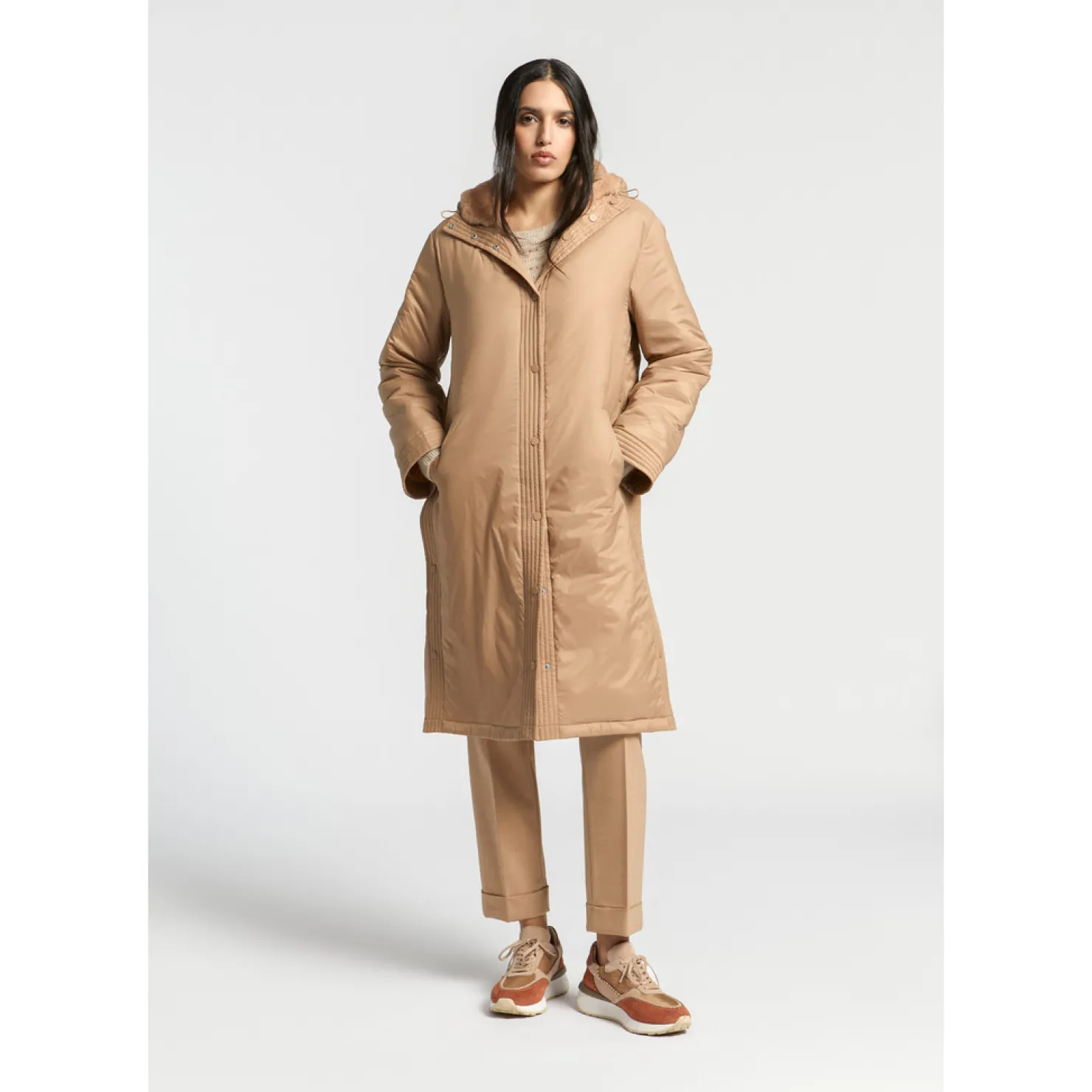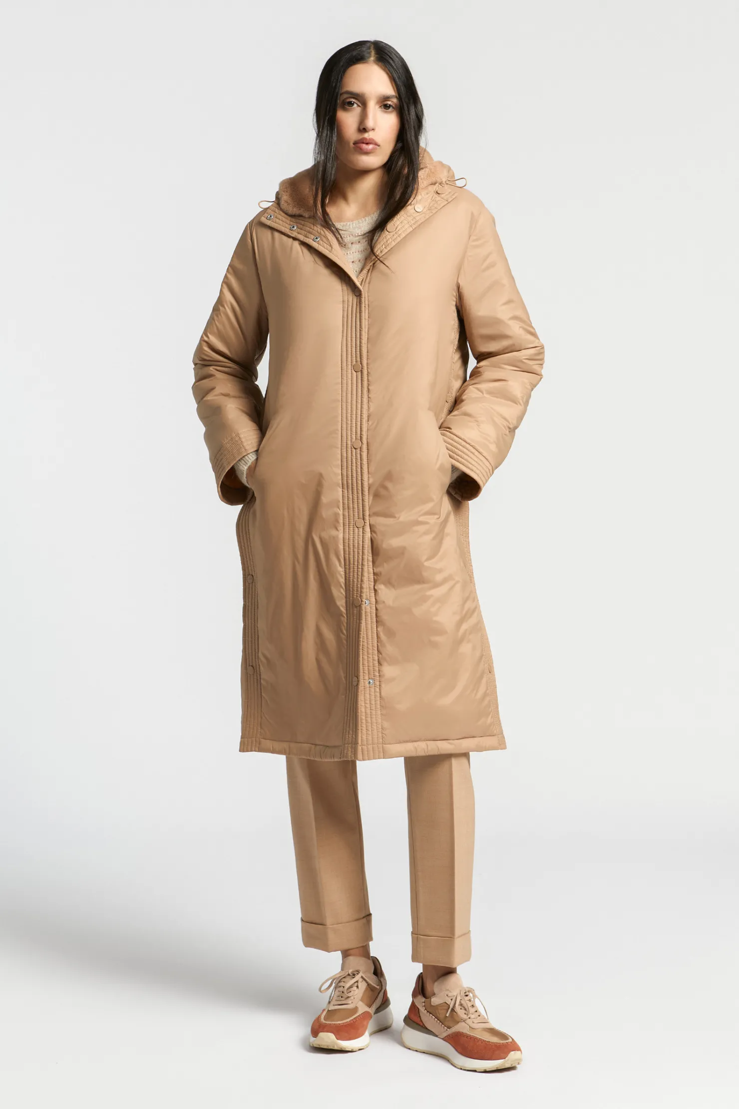 Lange padded parka Drukknopen en split aan zijkant Kap met faux fur Sluiting met drukknopen Steekzakken in zijnaad