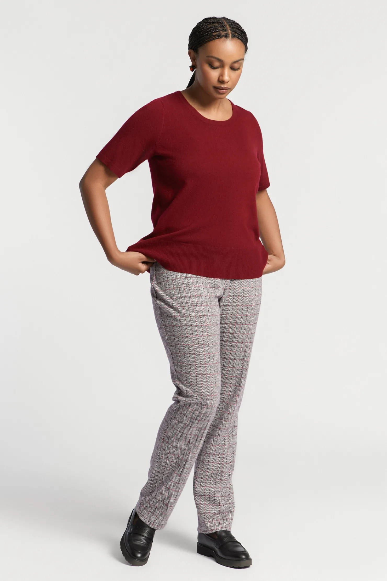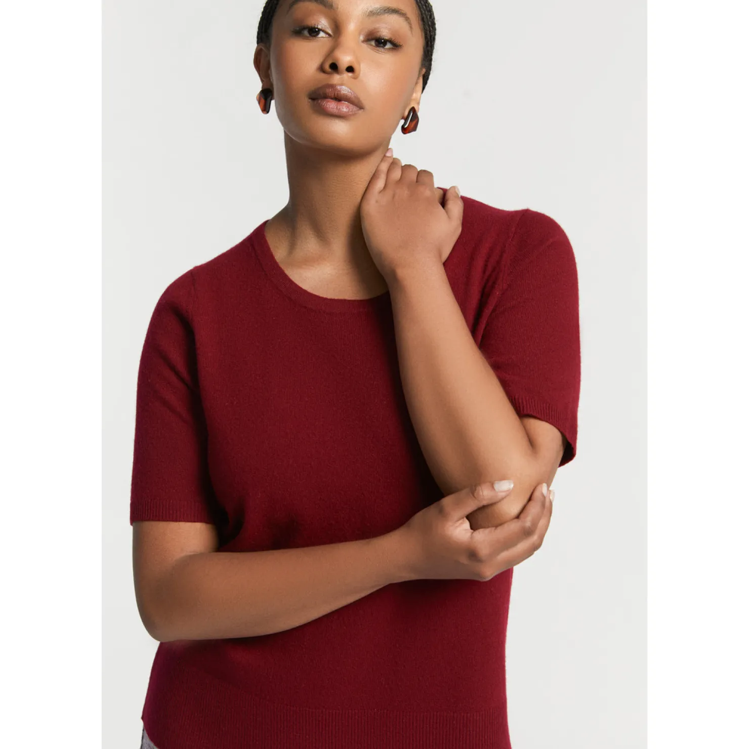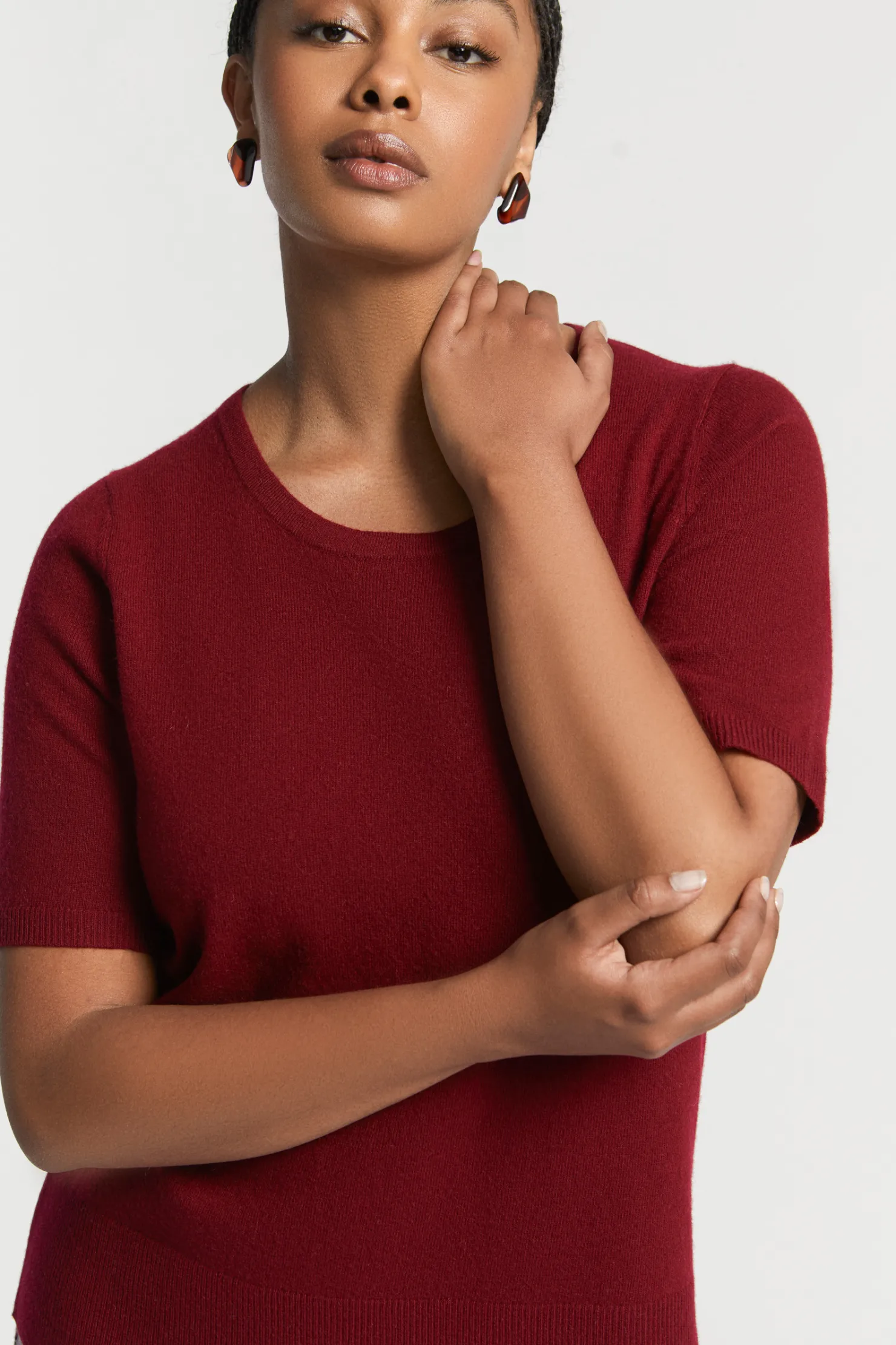 Fijne wolmix Ronde hals Korte mouwen Rechte pasvorm