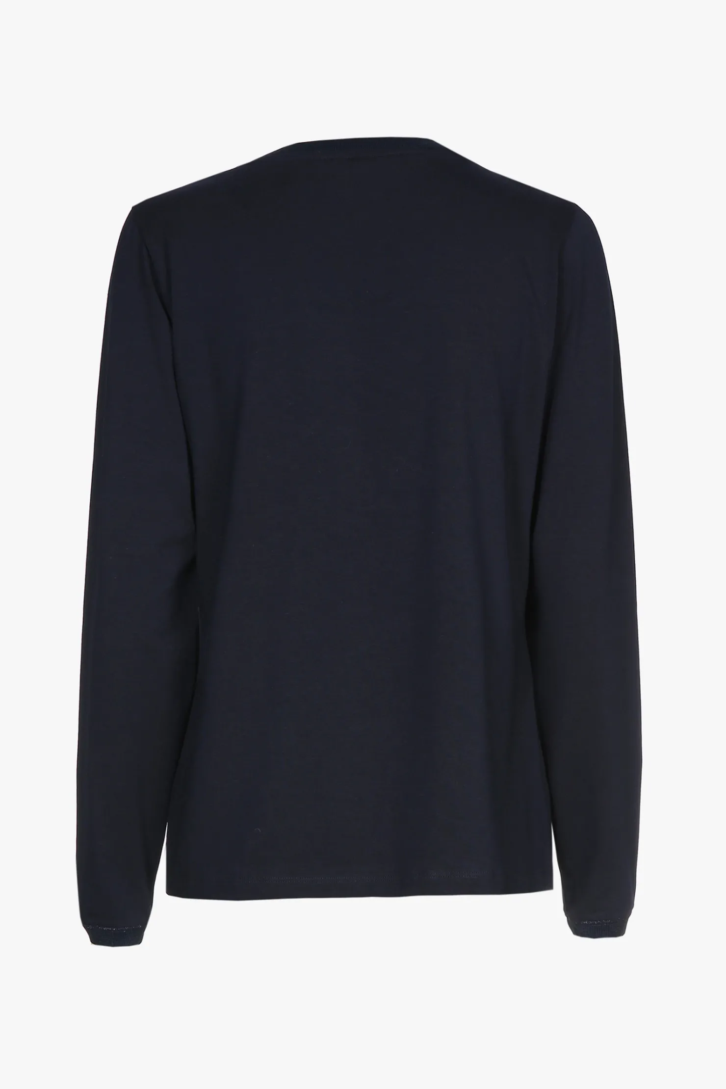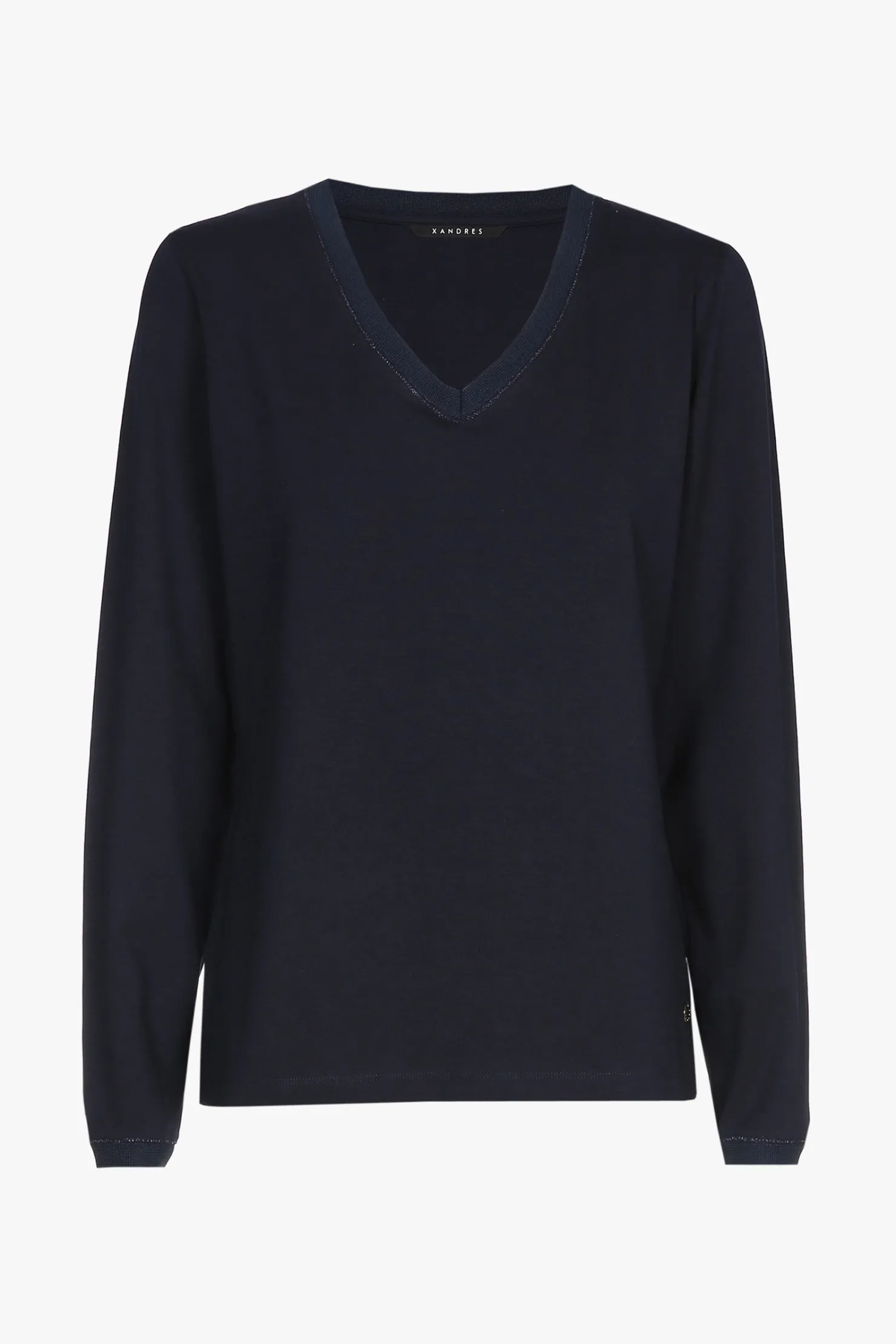 DAMES Xandres blauw T-shirt met V-hals en lange mouwen