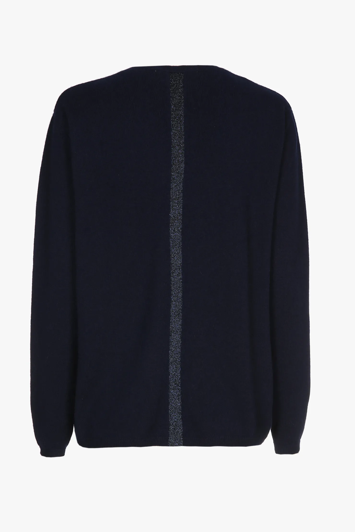 Cashmere pullover met V-hals en lange mouwen. Cashmere is een zachte, soepele wollen vezel die je ook in de zomermaanden kan dragen: licht en ademend. De glanzende streep op de rug geeft de tijdloze pull een chic accent.