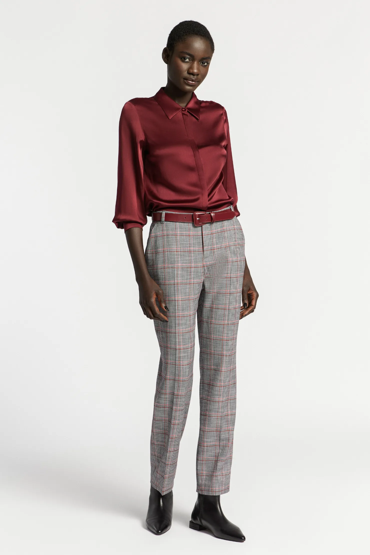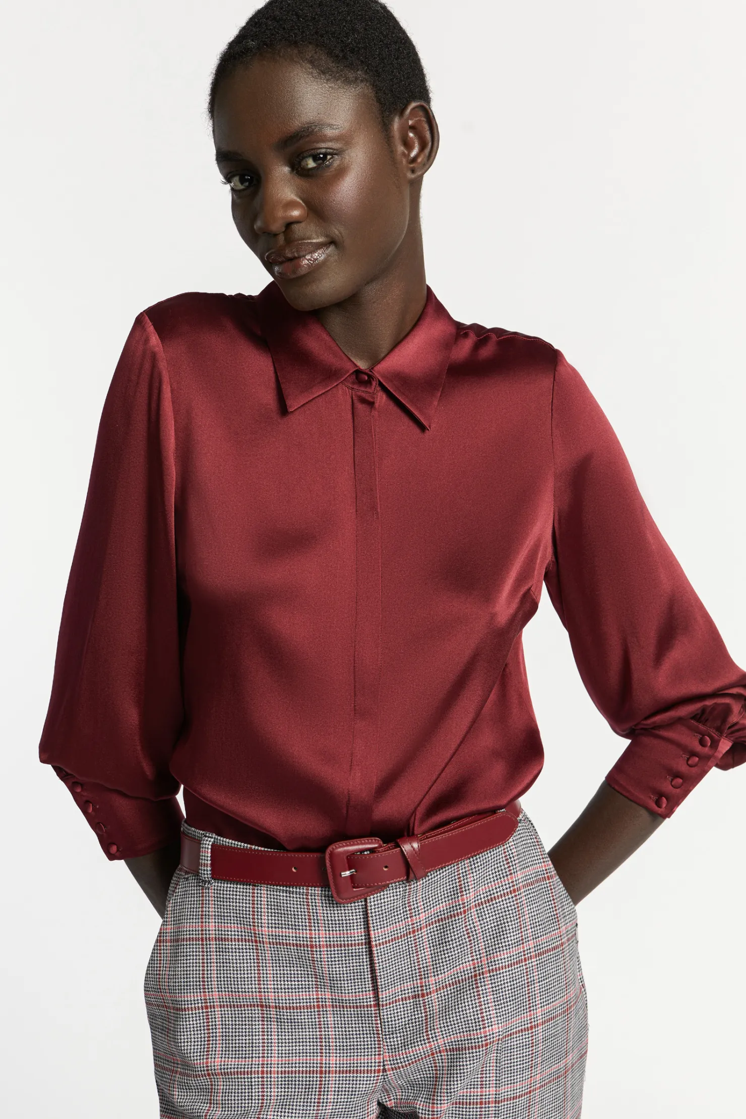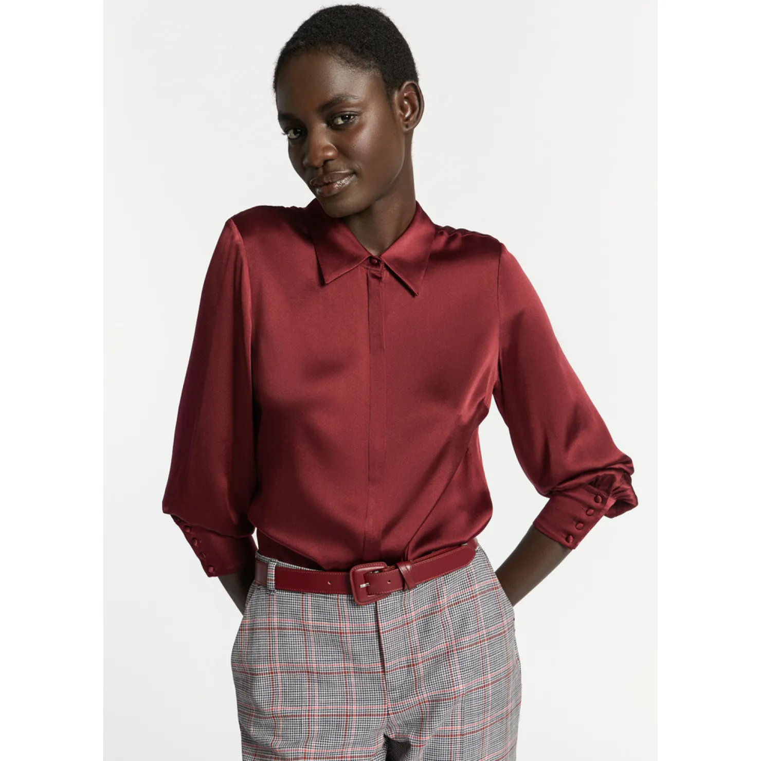 Zijdemix Blinde knoopsluiting Cuff met overtrokken knopen Borstneepje Elegante, vrouwelijke pasvorm