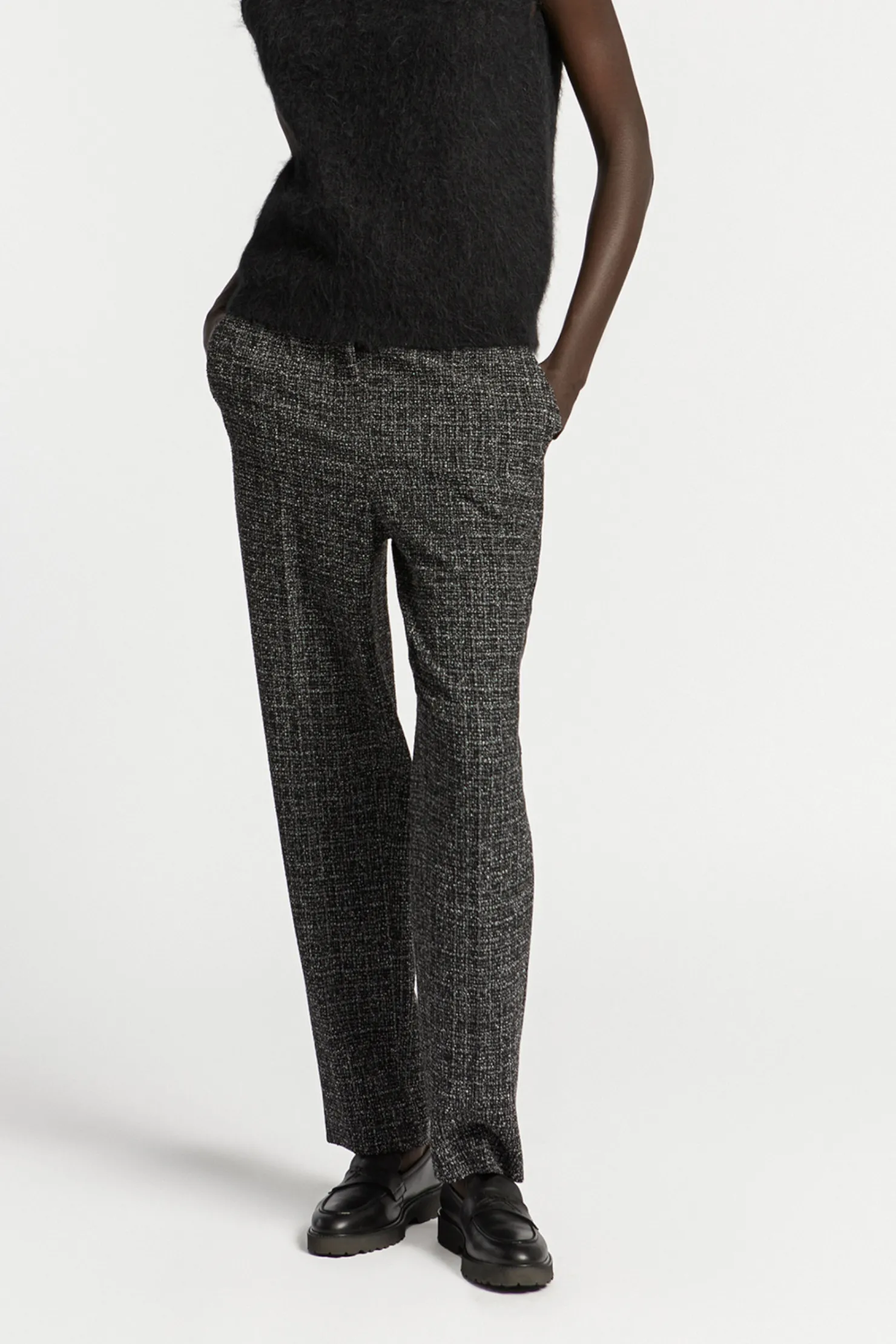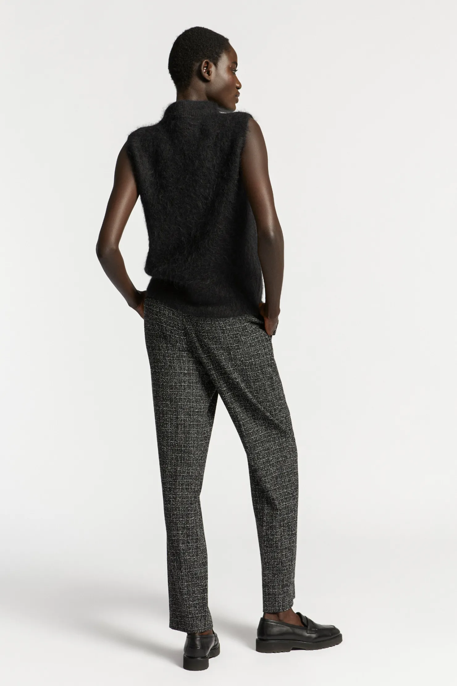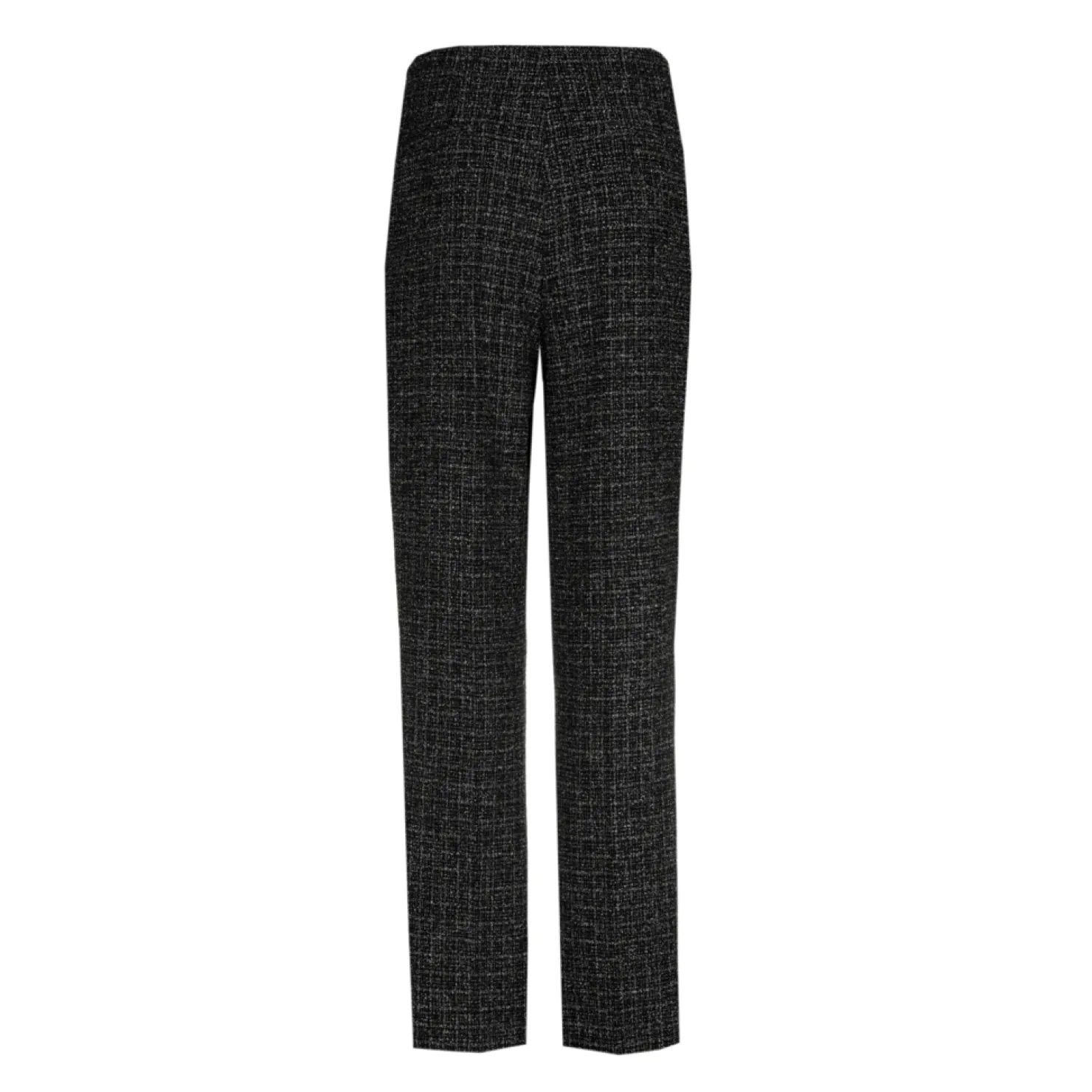 Aangesneden tailleband met elastiek Fijne bouclettestof 2 steekzakken Smalle pijpen