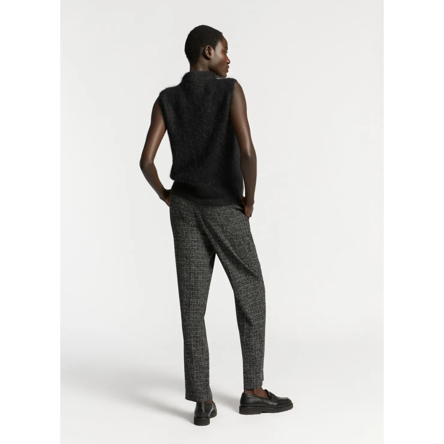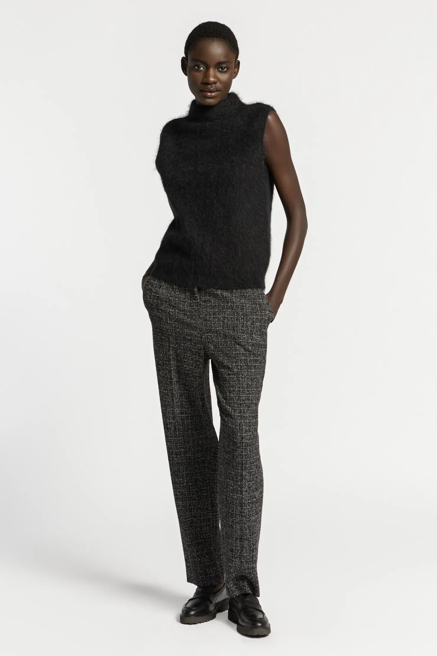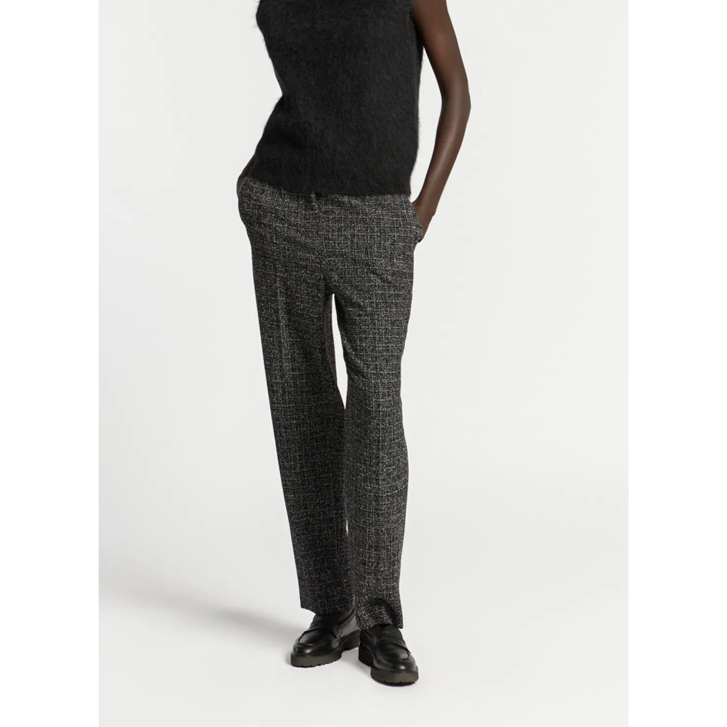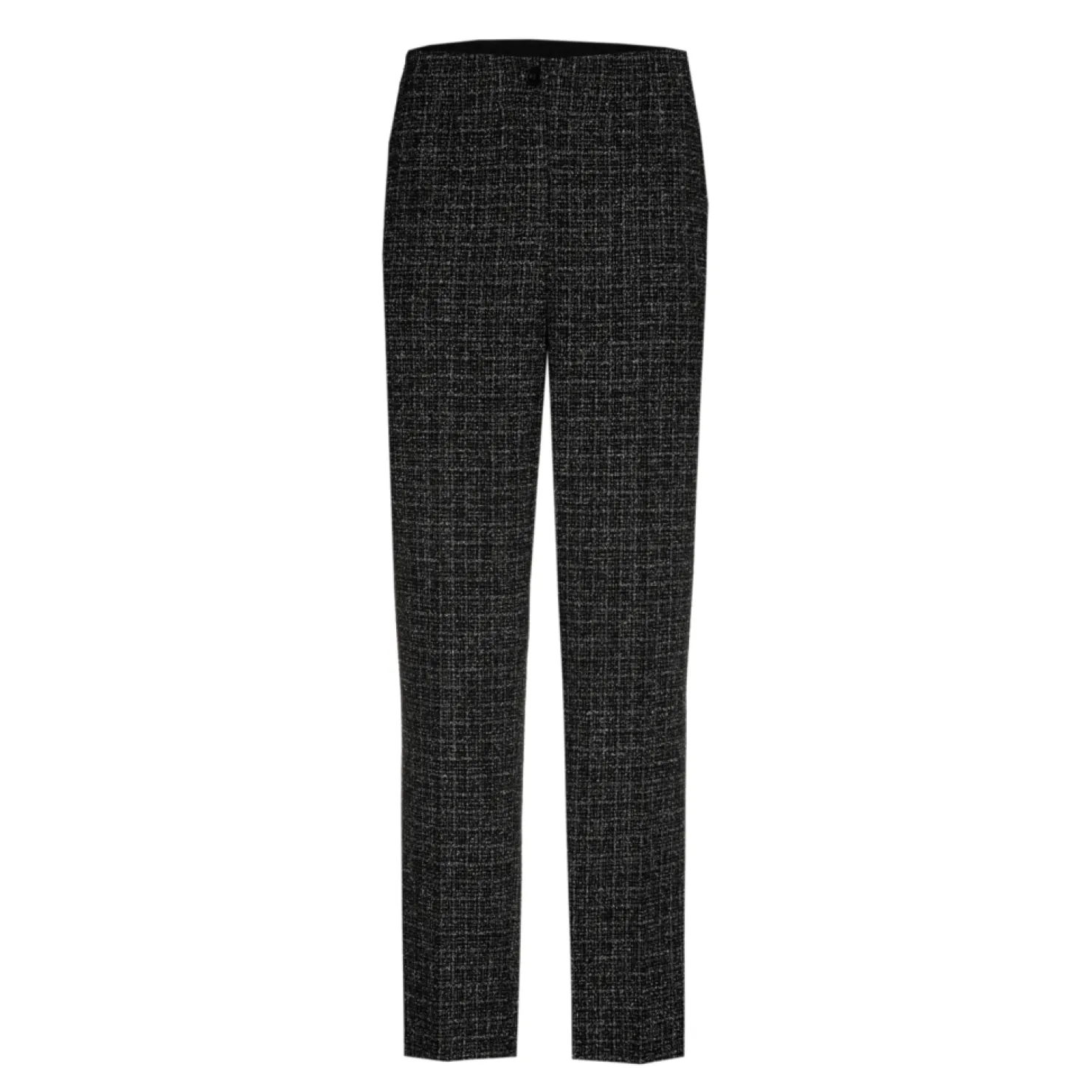 Aangesneden tailleband met elastiek Fijne bouclettestof 2 steekzakken Smalle pijpen