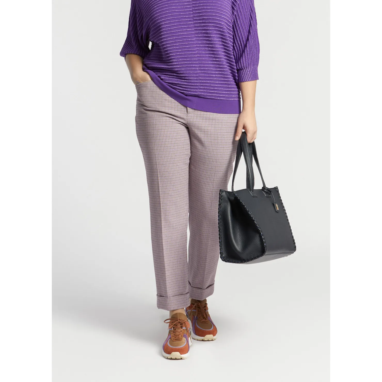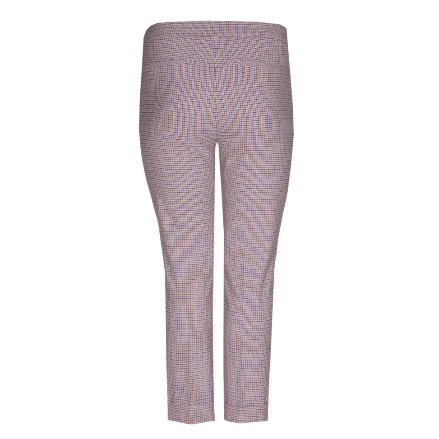 Tijdloze ruitenprint Smalle pijpen Omslag aan de boorden Elastiek aan de rug 7/8 lengte