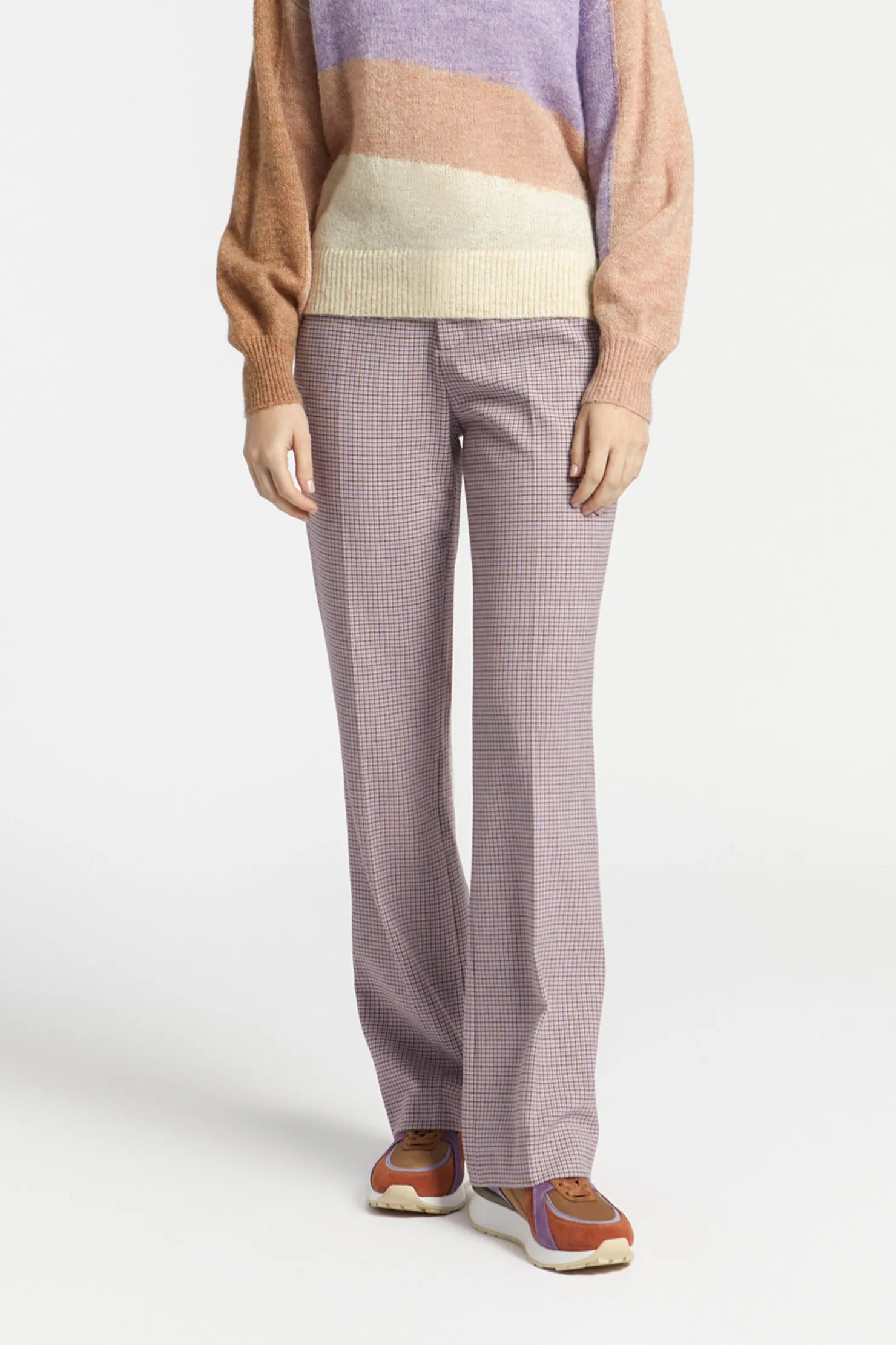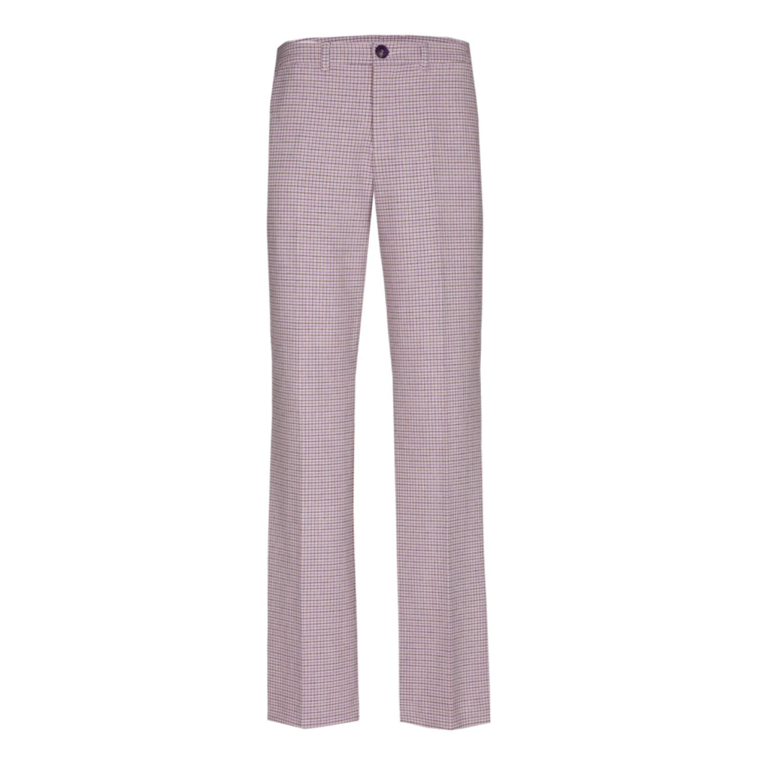 Subtiele, tijdloze ruitenprint Twee steekzakken Rechte pijpen Ceintuurlussen