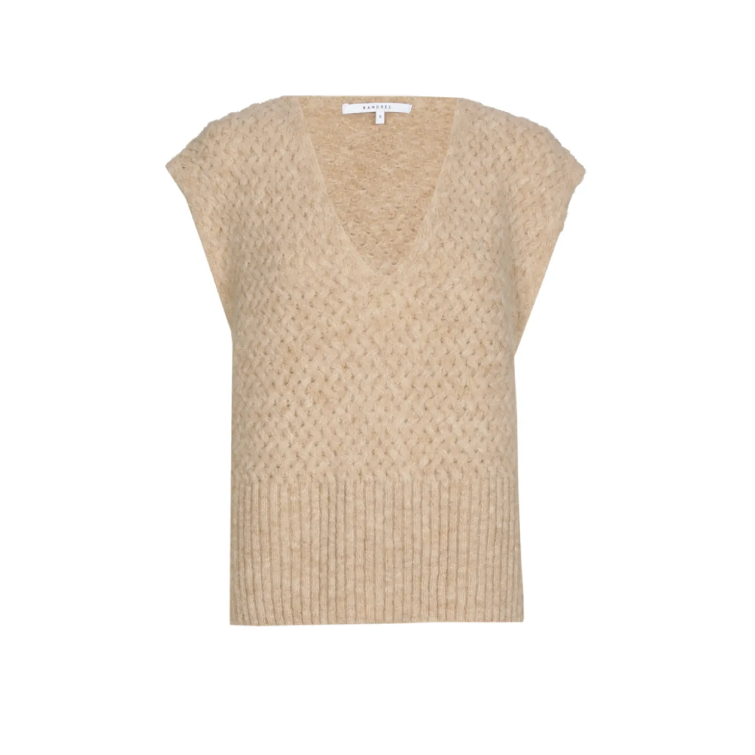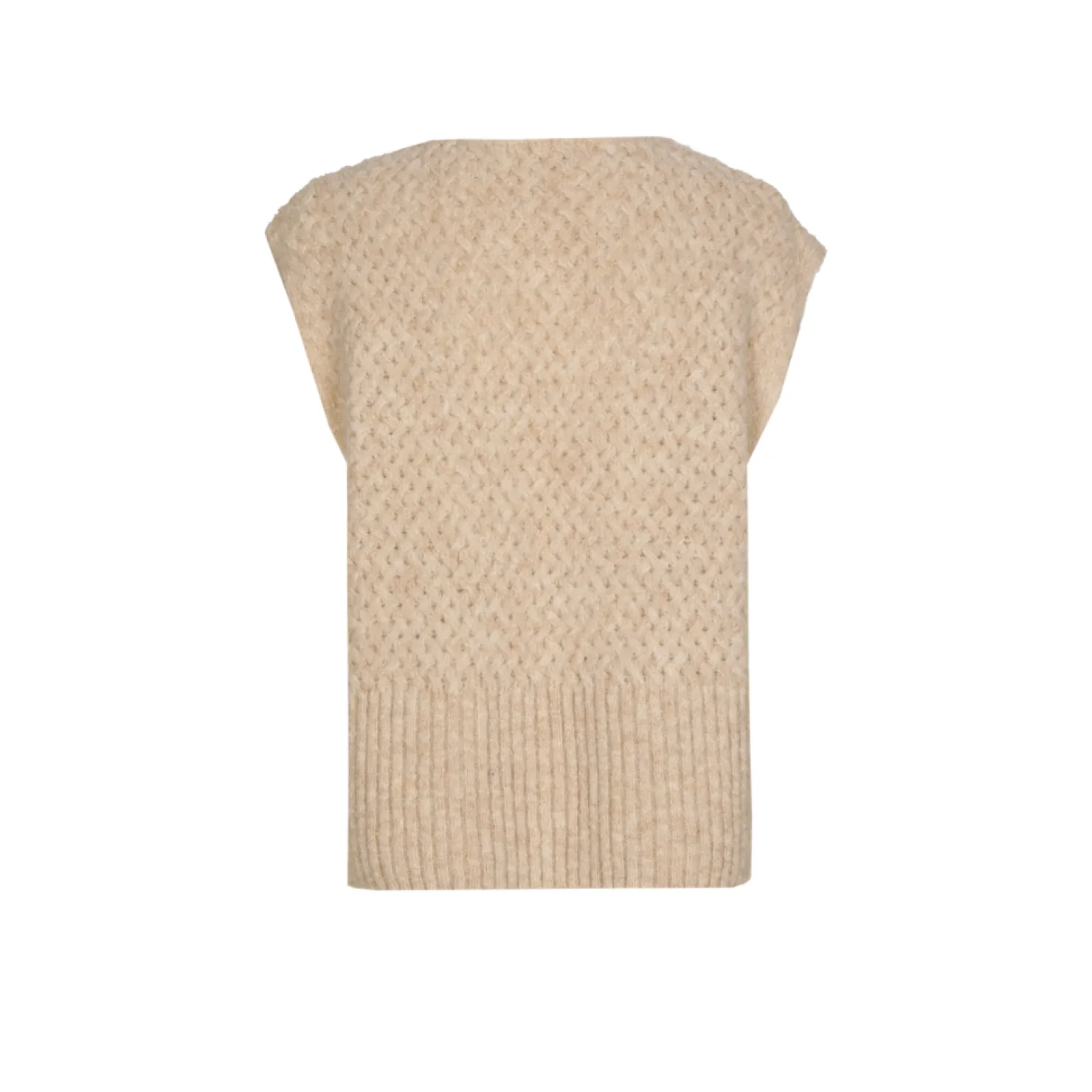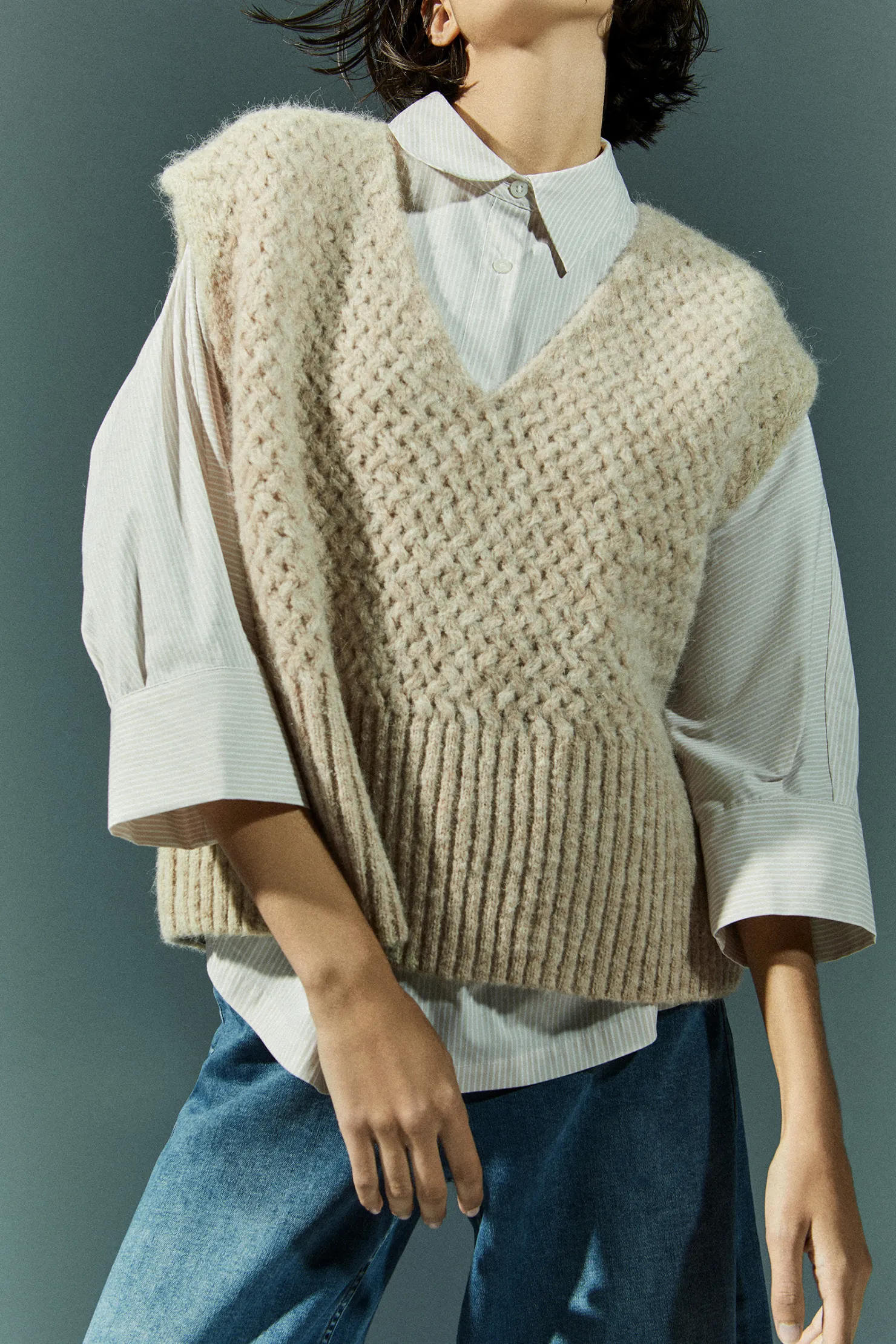 Grofgebreide debardeurV-halsGeribbelde boordZijsplitjes onderaan de zoom
