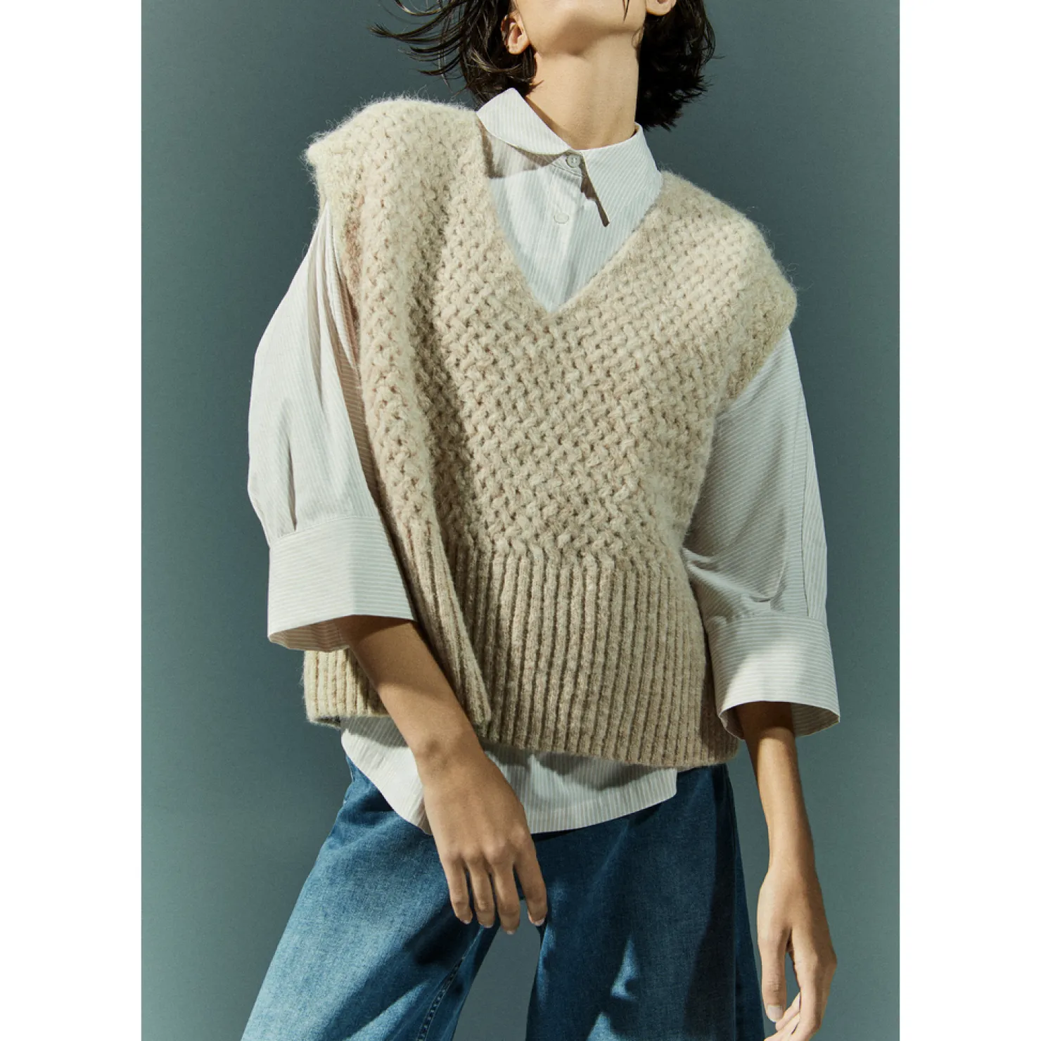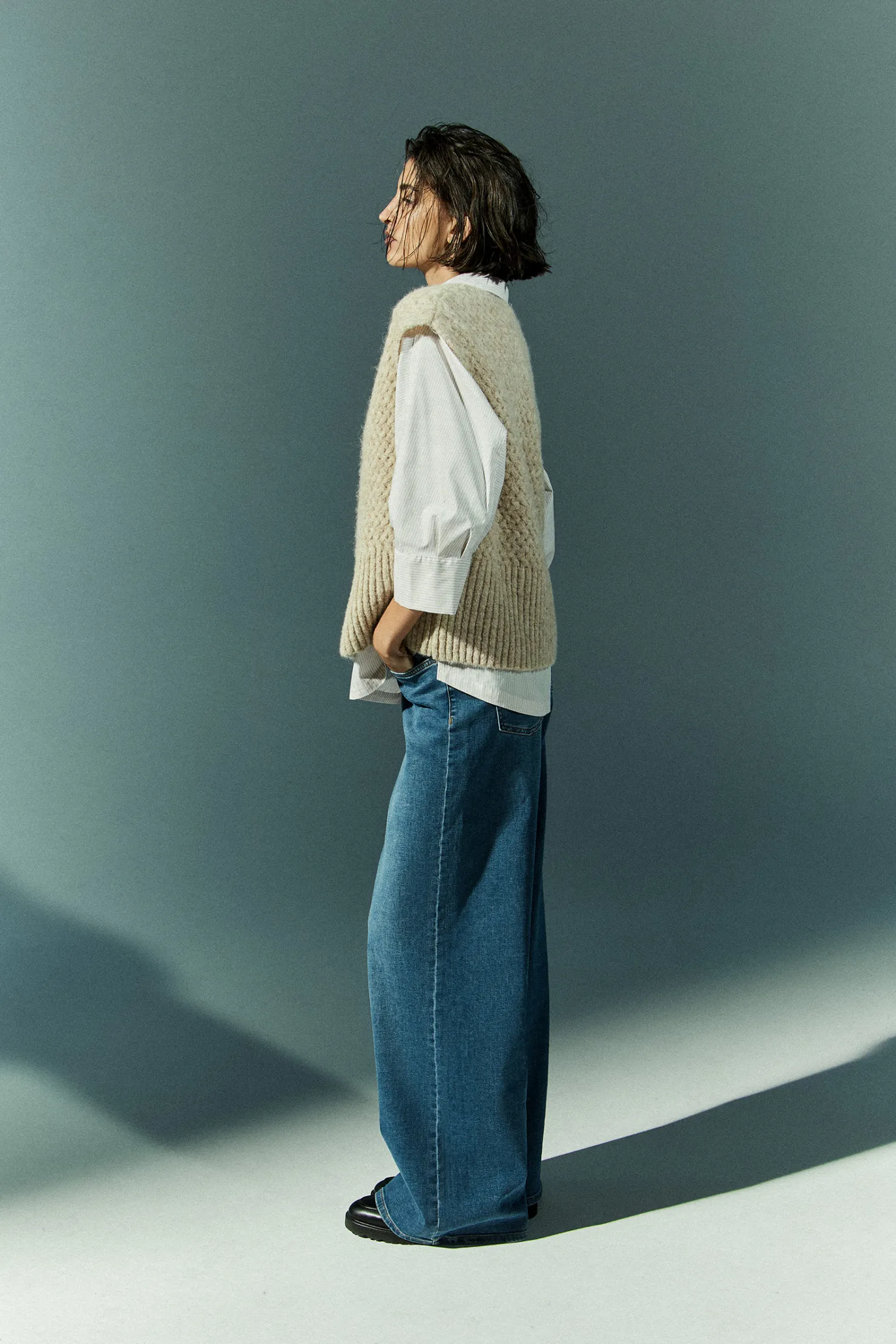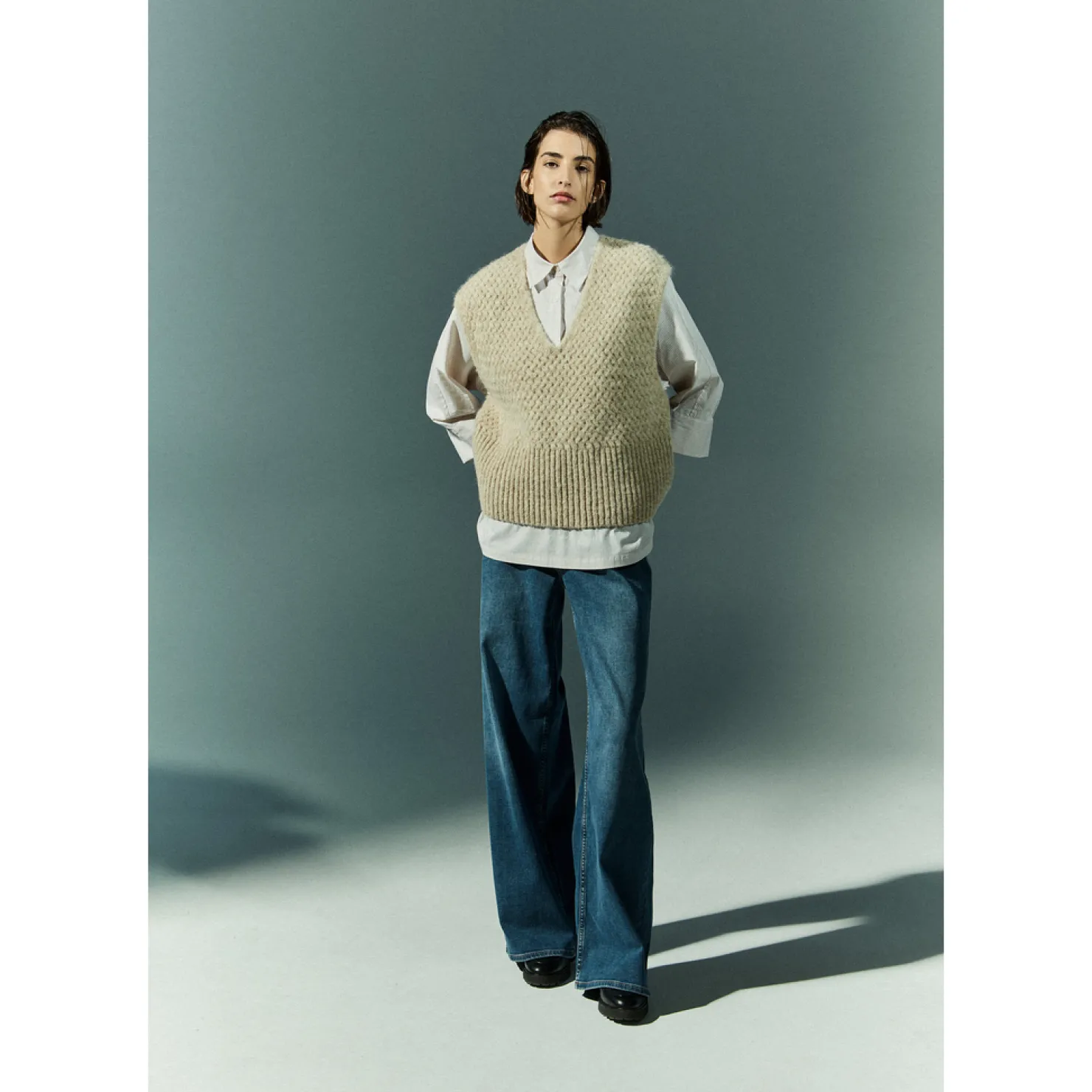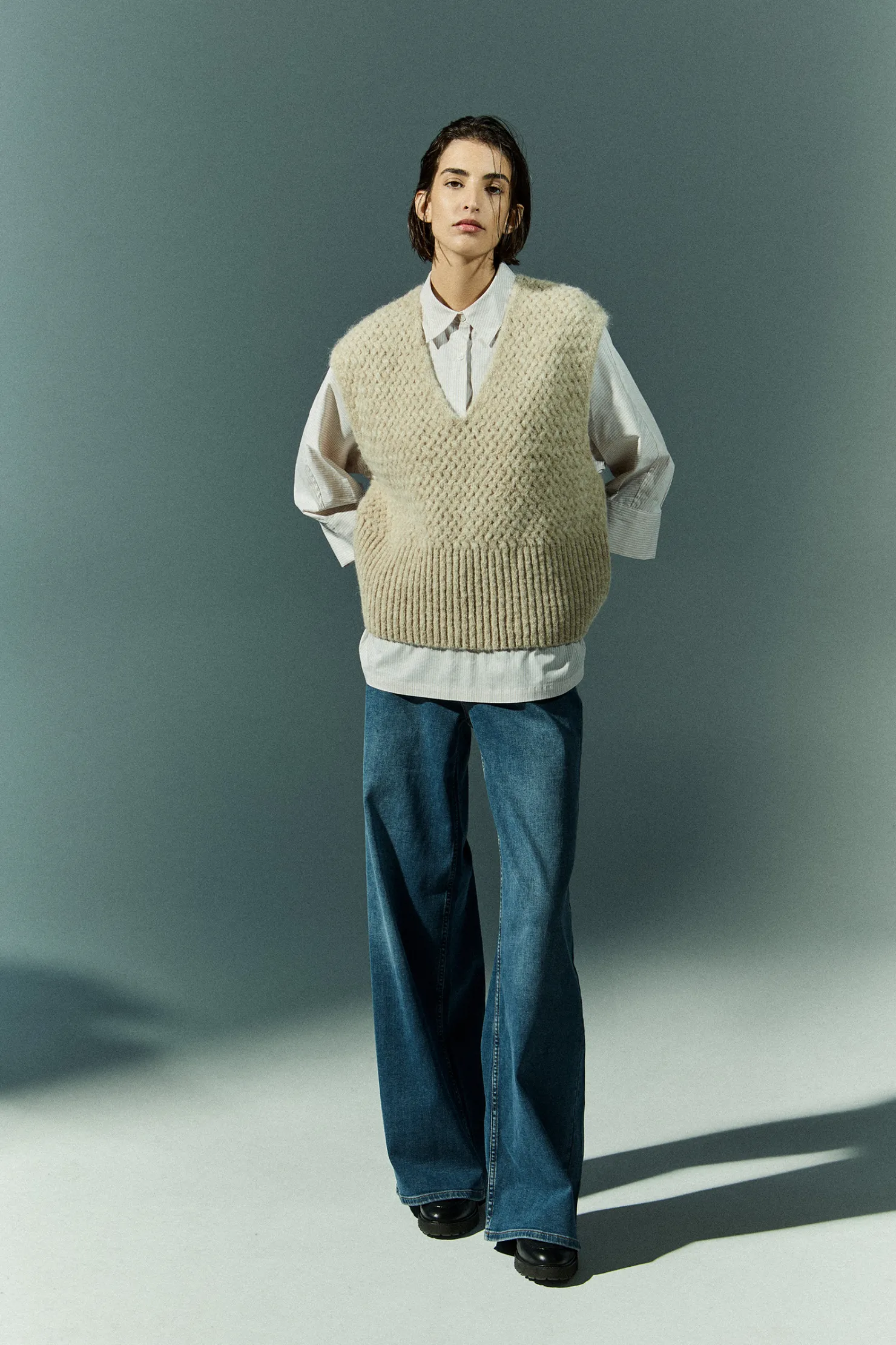Grofgebreide debardeurV-halsGeribbelde boordZijsplitjes onderaan de zoom