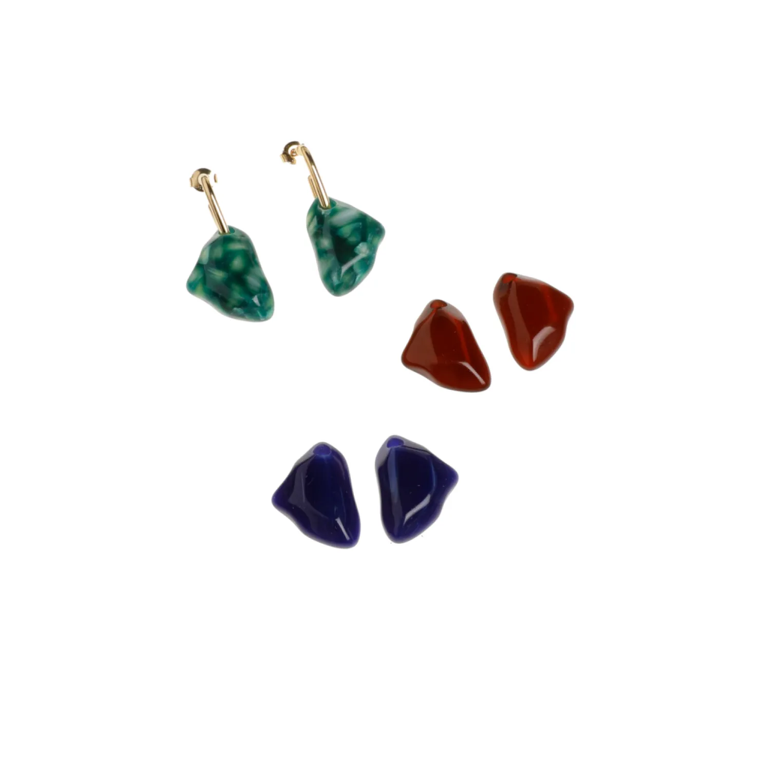Doosje met drie paar oorbellen Drie verschillende hangers Elegant sieraad Unieke steen