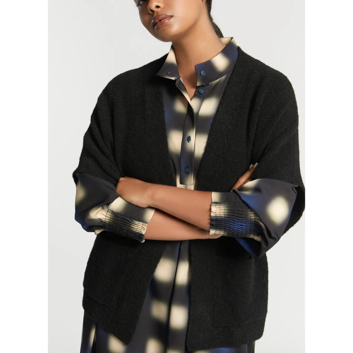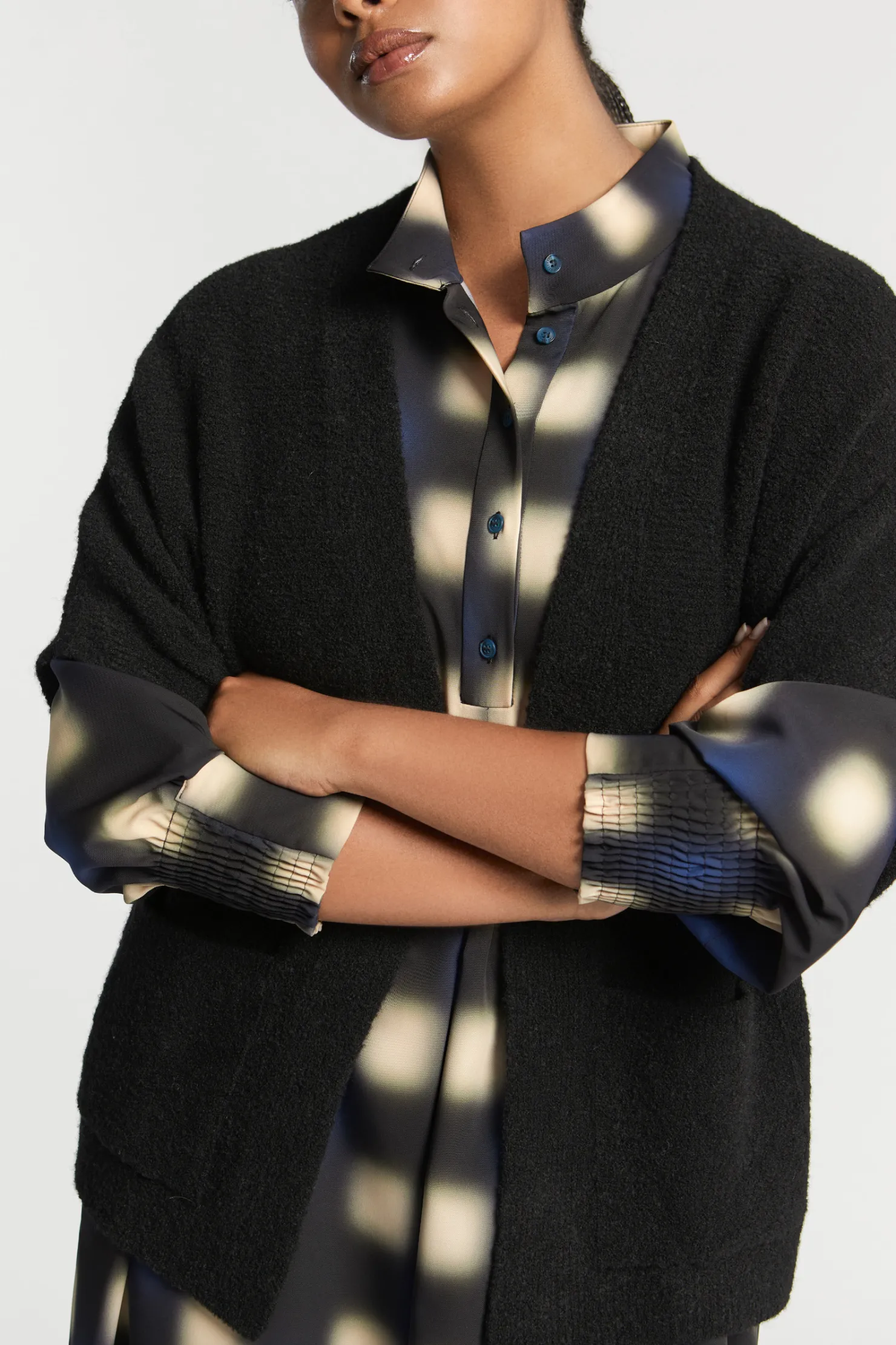Aangebreide mouwen Doorlopende naad middenrug Zachte bouclettemix