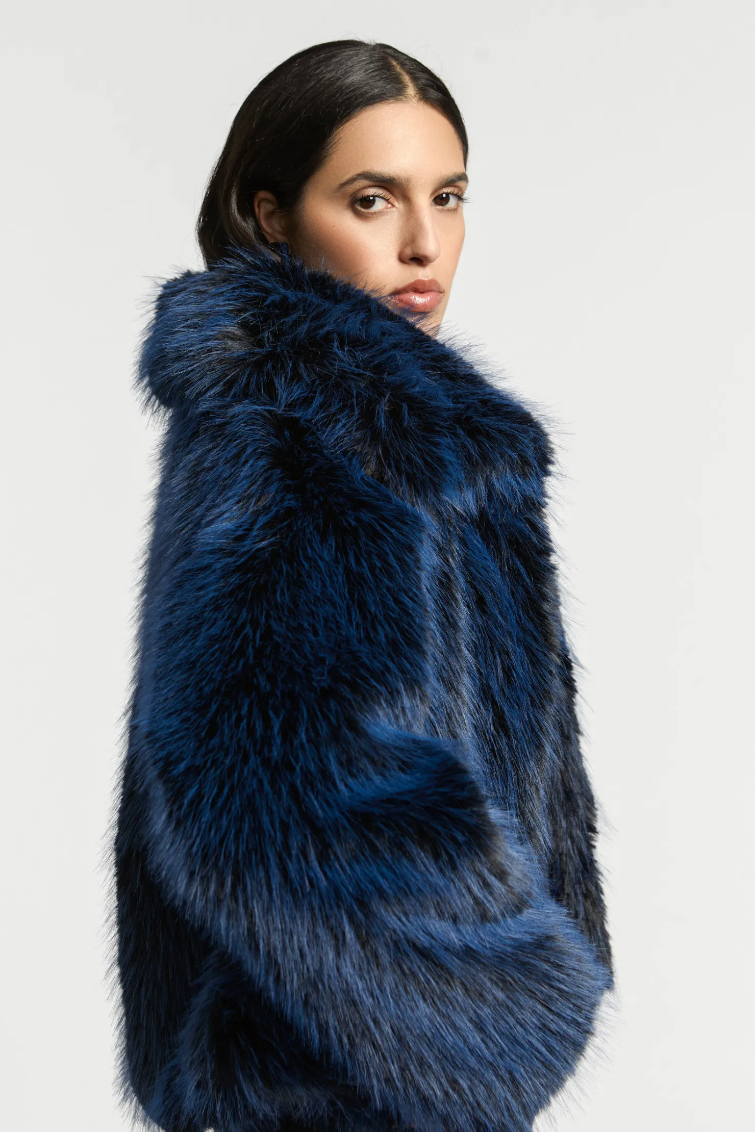 Kort model met brede kraag Zachte faux fur Sluiting met haakje 2 steekzakken Statement item