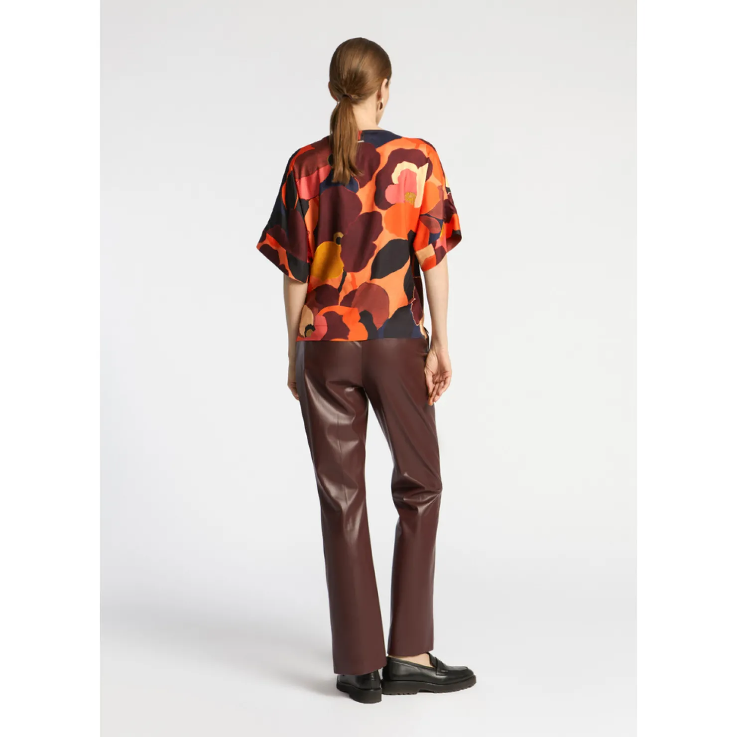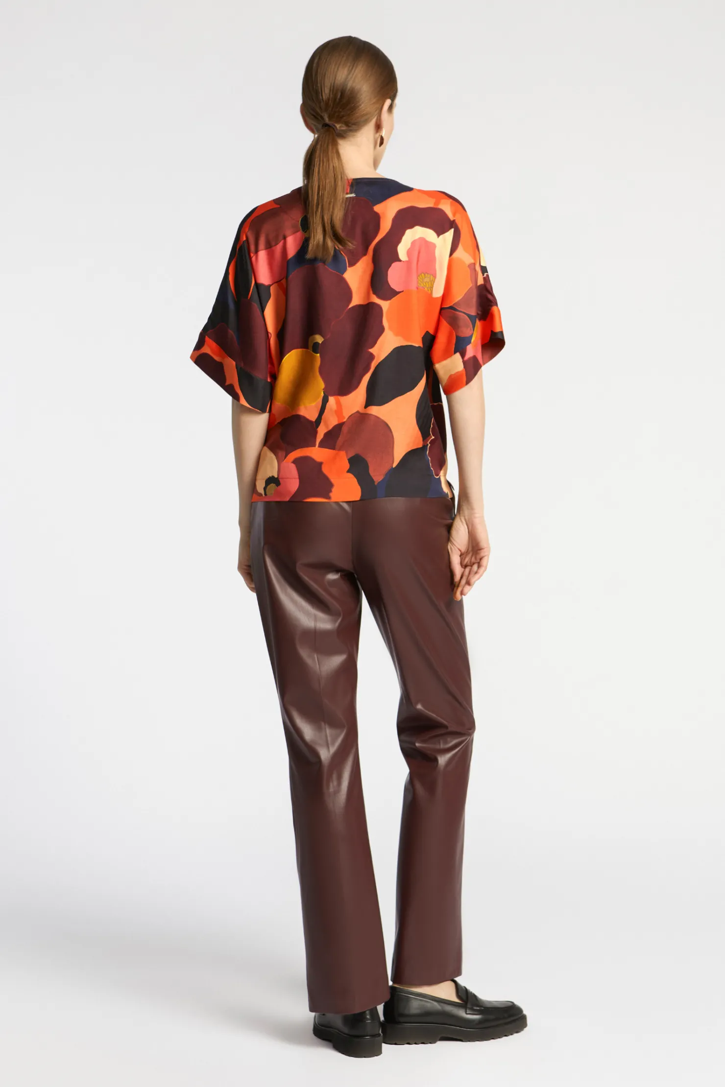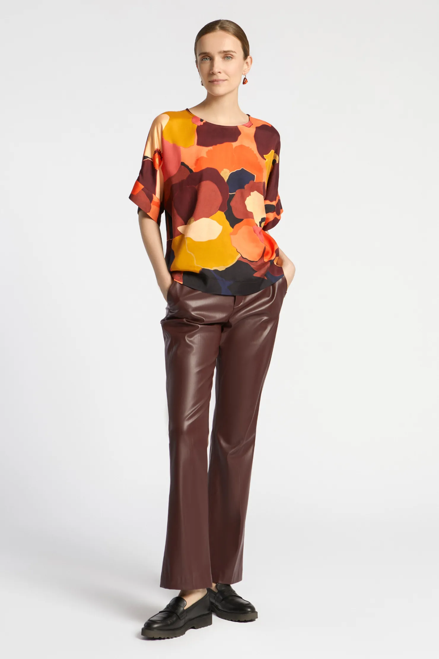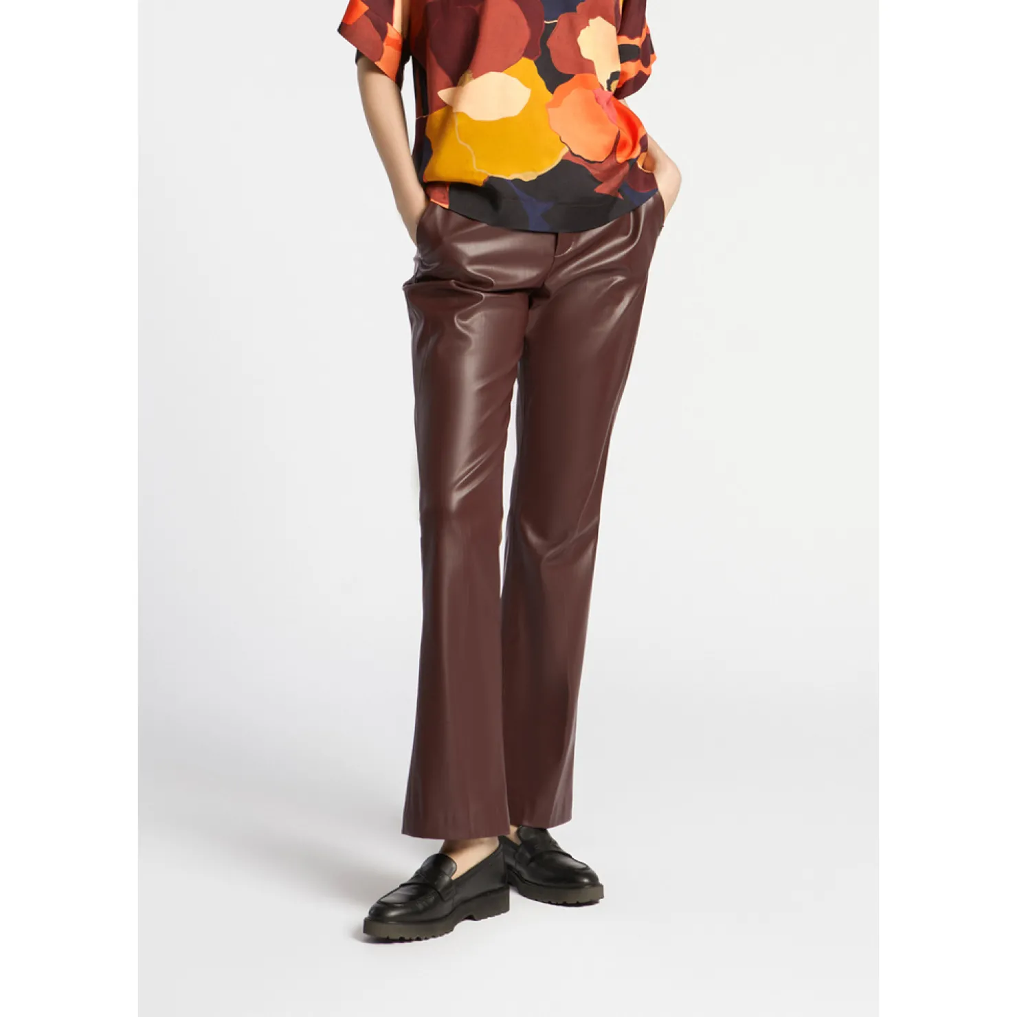 Broek in faux leather Rechte pijpen Twee steekzakken Sluiting met rits en knop