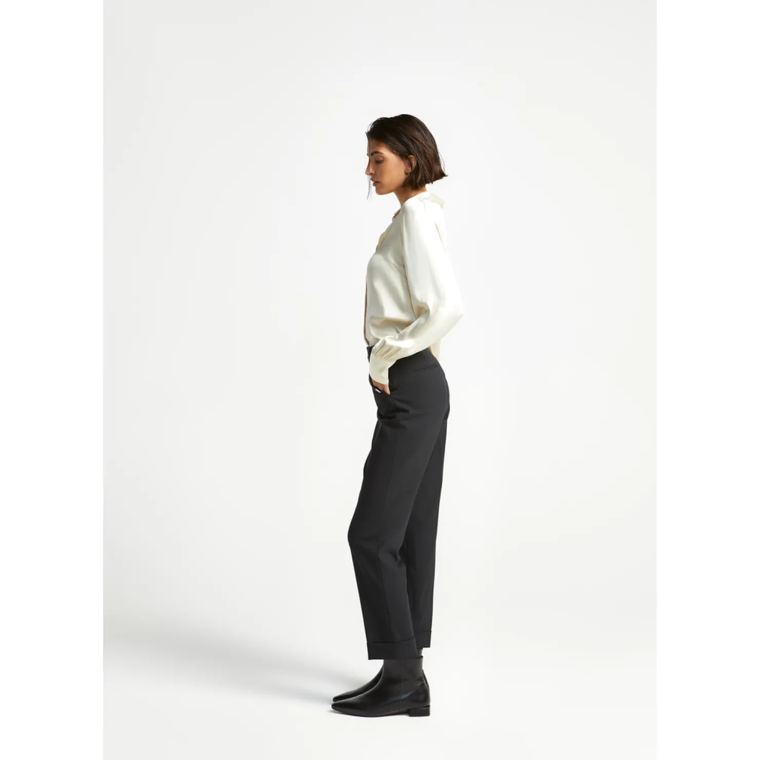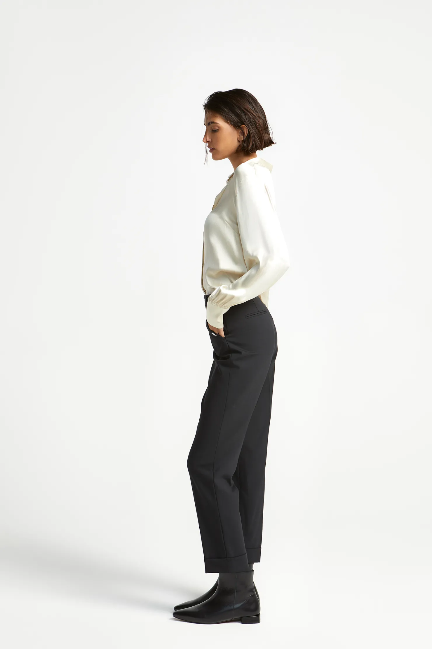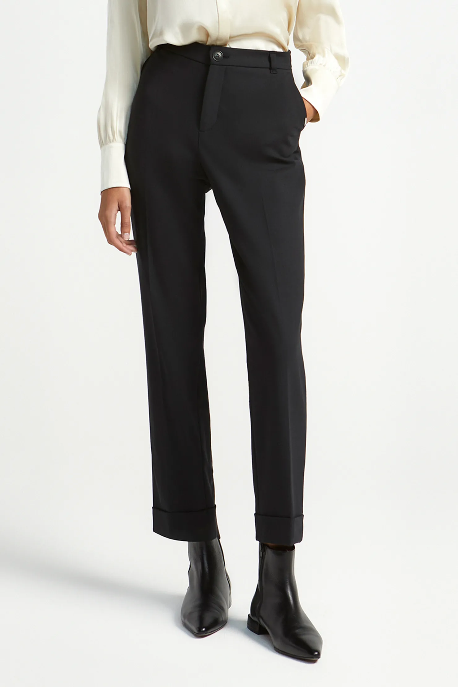 Omgeplooide zoom Geklede broek met comfortabele fit Twee steekzakken Smalle pijpen Ceintuurlussen