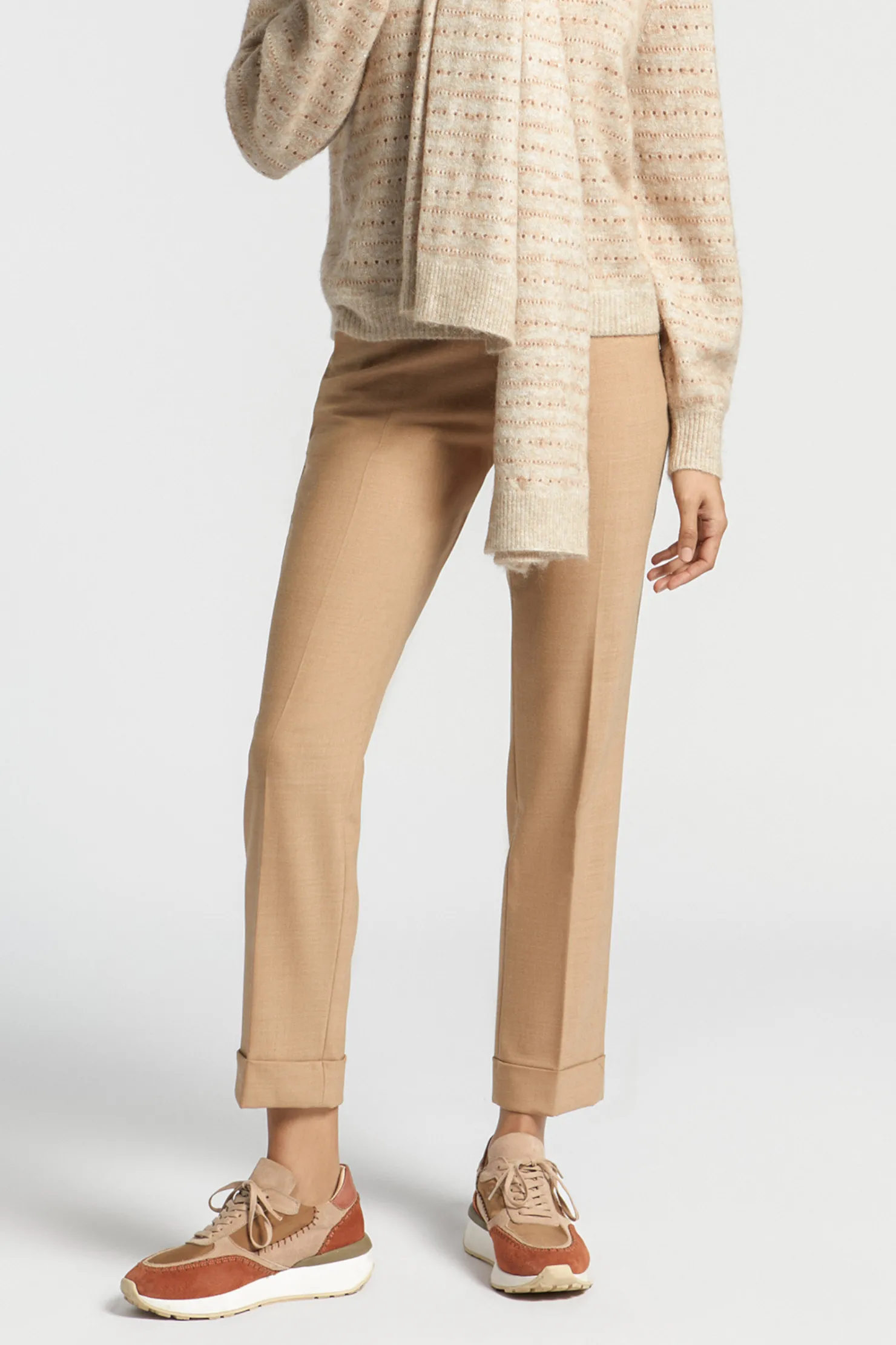 Omgeplooide zoom Geklede broek met comfortabele fit Twee steekzakken Smalle pijpen Ceintuurlussen