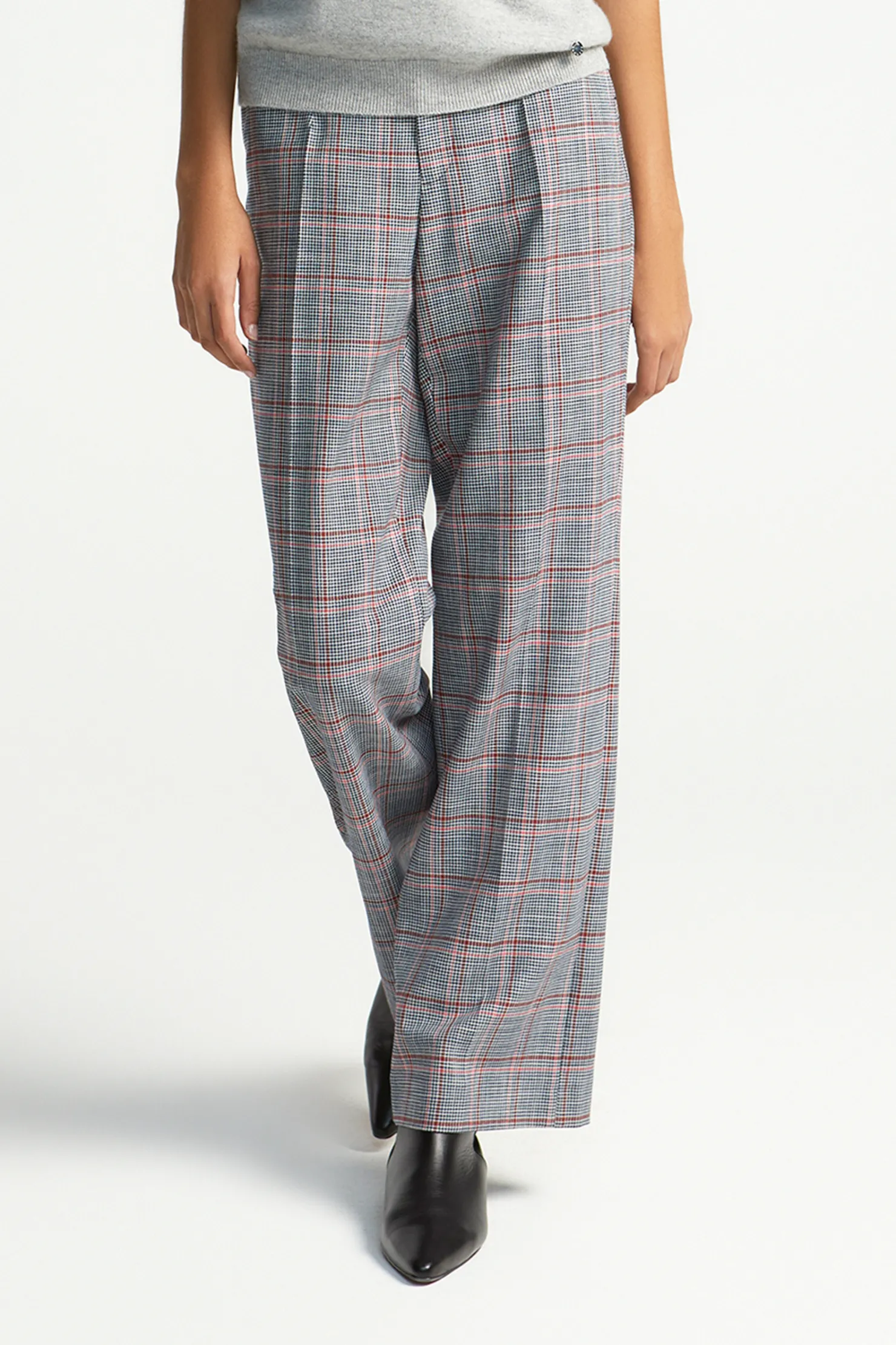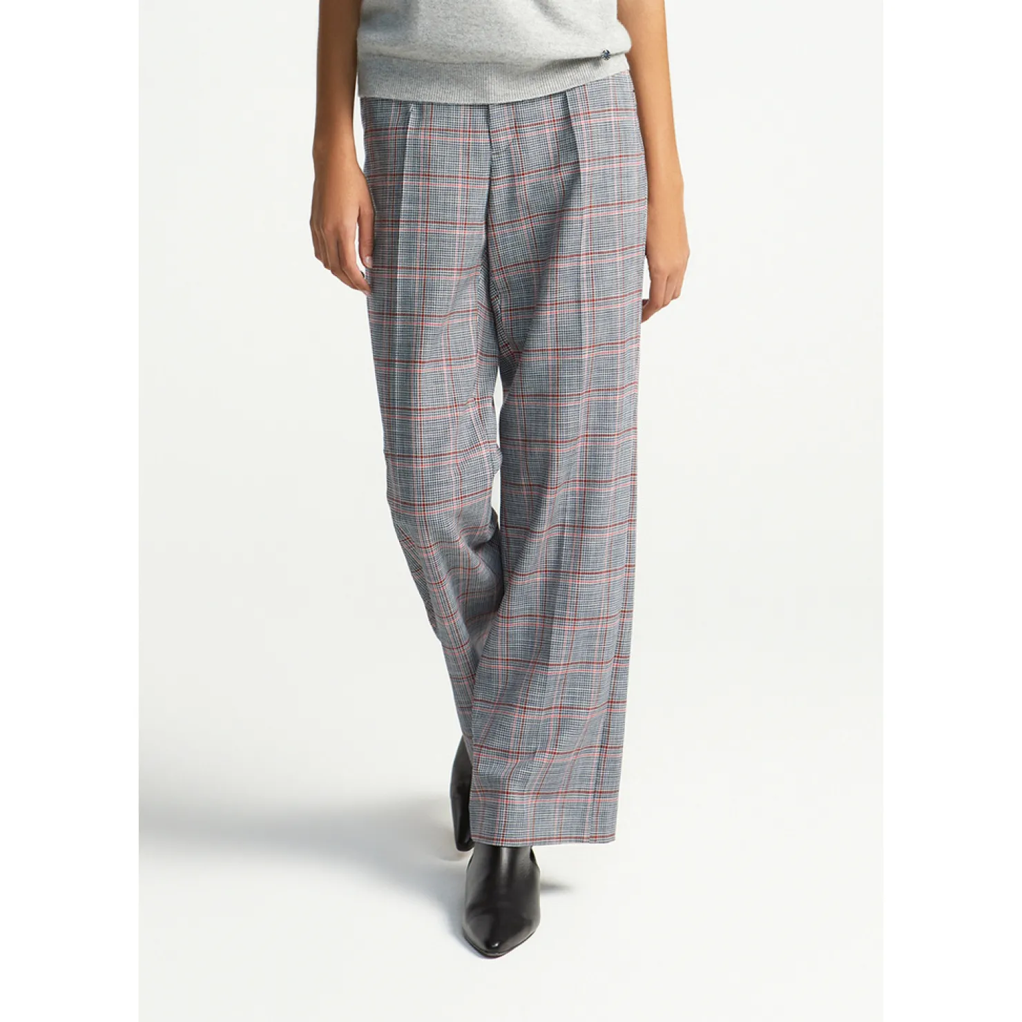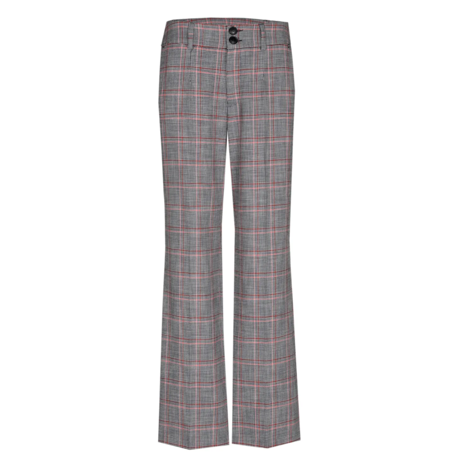 Tijdloze ruitenprint Gekleed model met rechte pijpen Twee steekzakken Ceintuurlussen