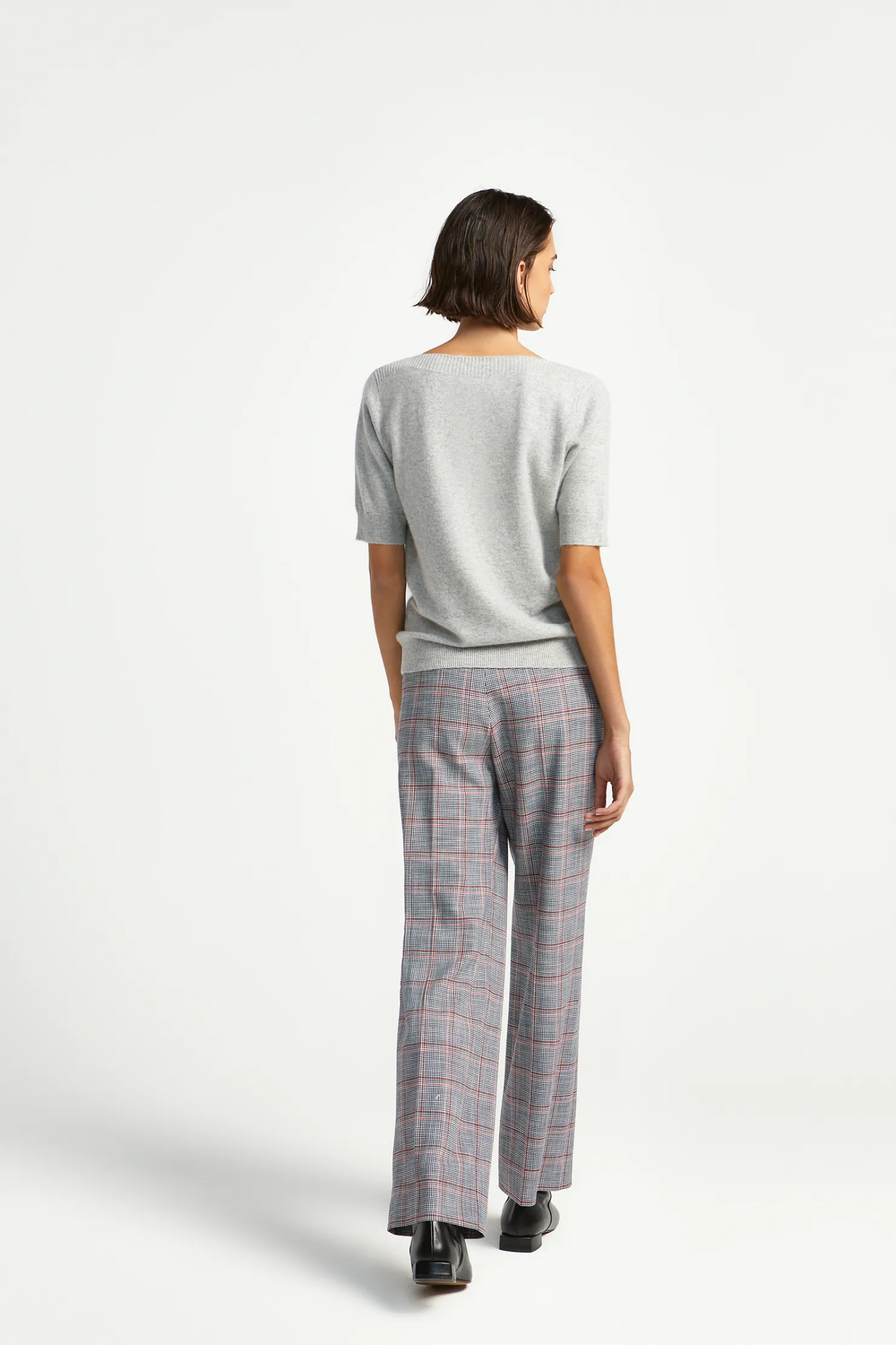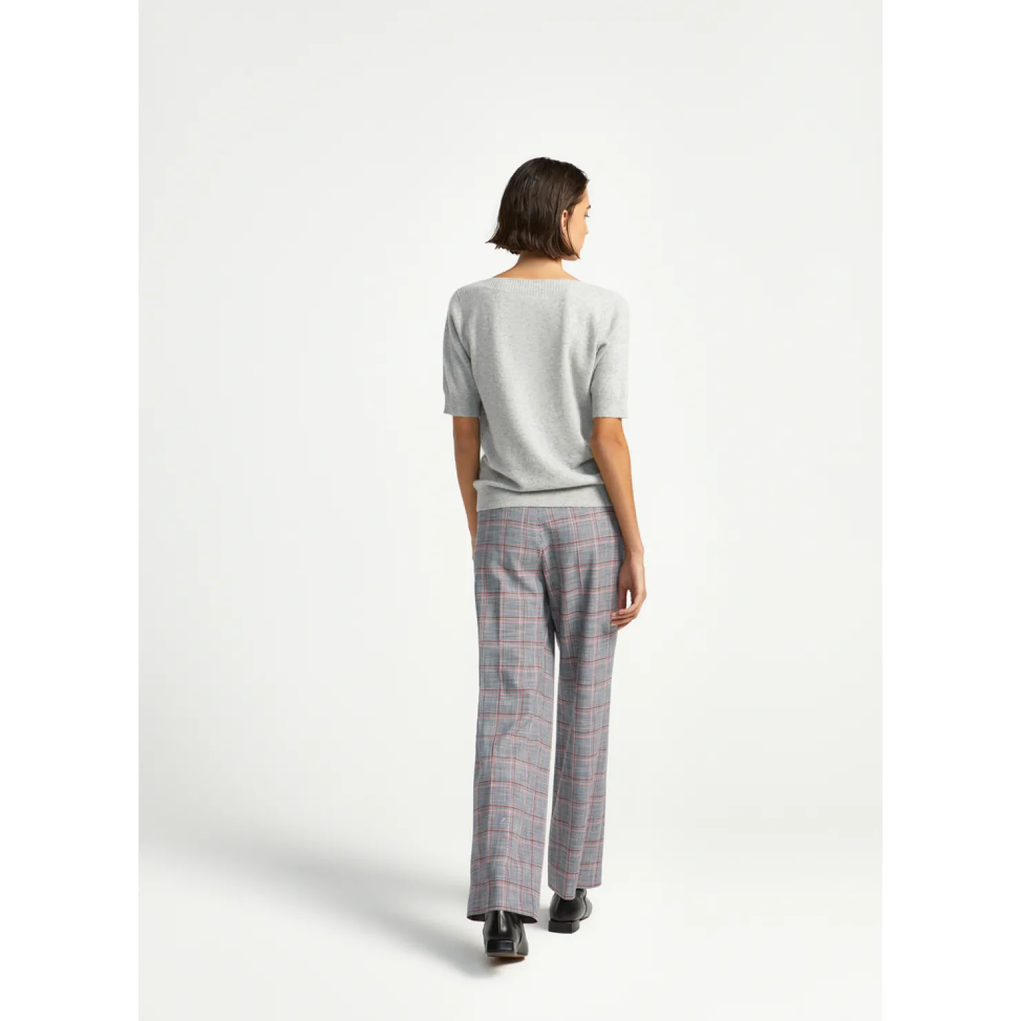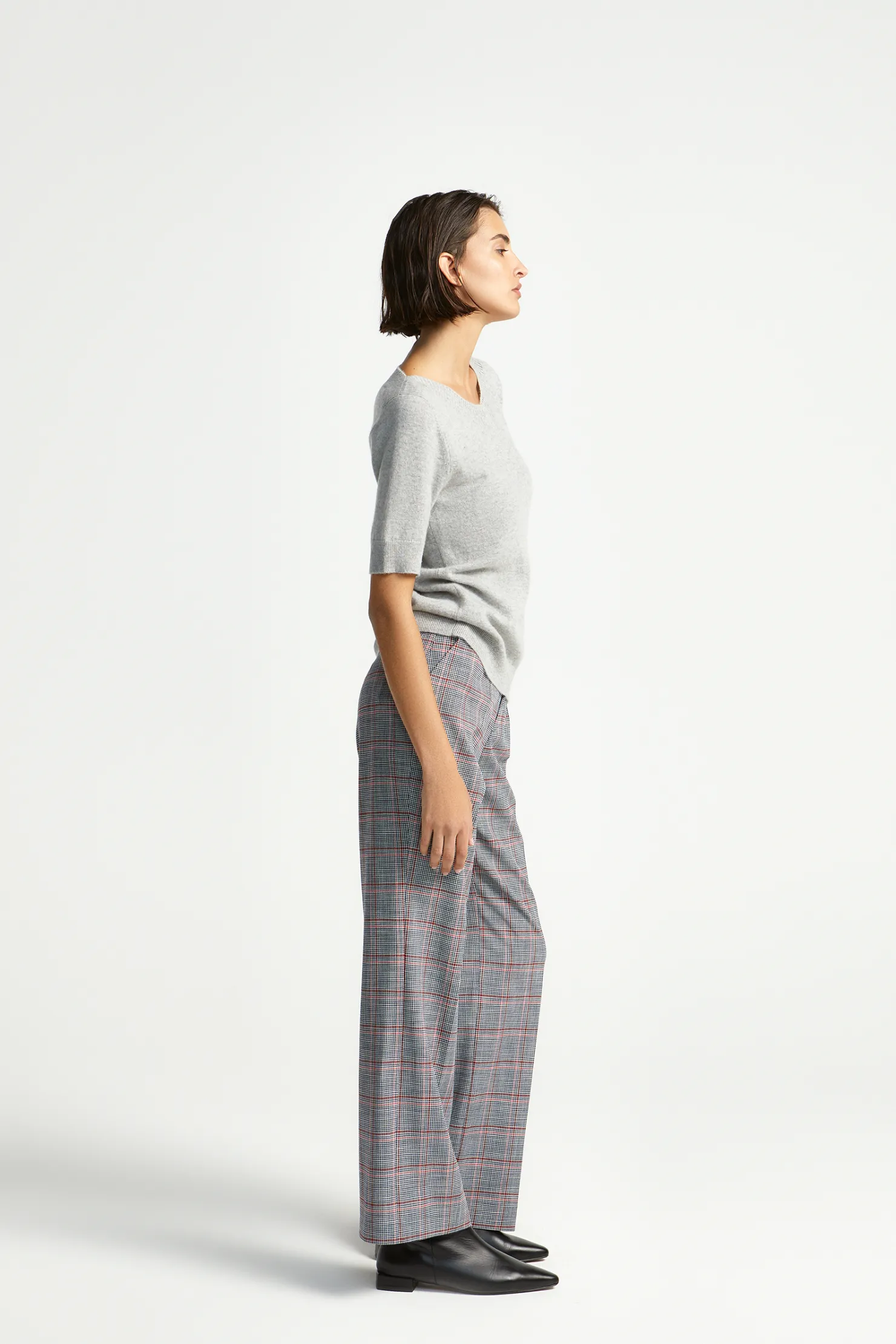 Tijdloze ruitenprint Gekleed model met rechte pijpen Twee steekzakken Ceintuurlussen