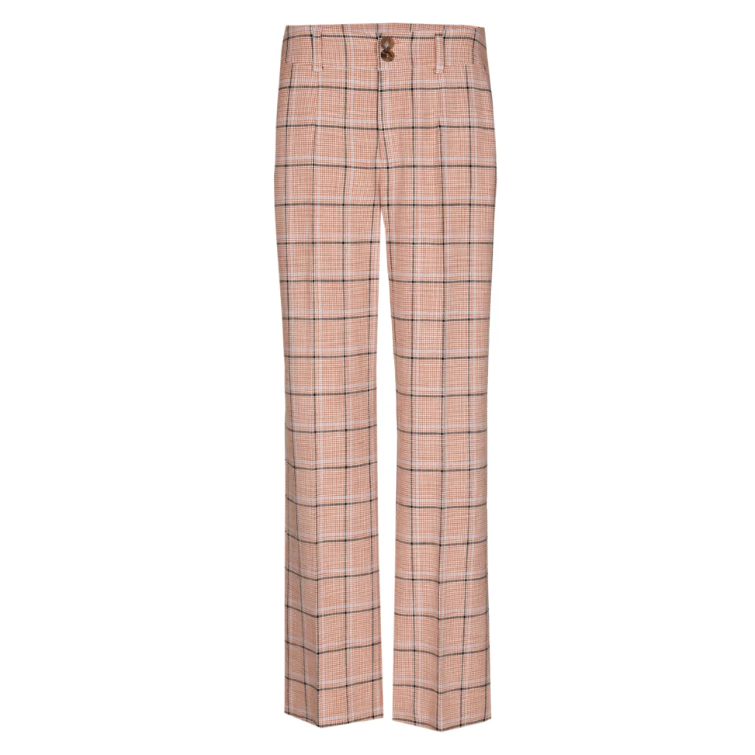 Tijdloze ruitenprint Gekleed model met rechte pijpen Twee steekzakken Ceintuurlussen