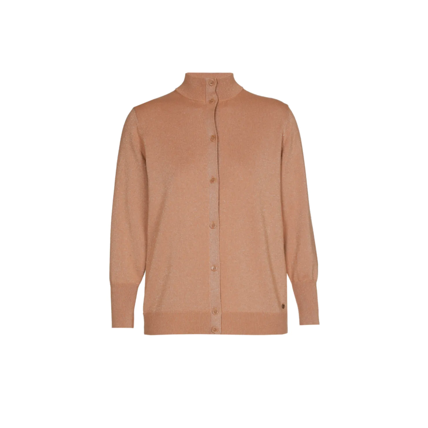 Subtiele toon-op-toon lurex Sluiting met knopen Opstaand kraagje Lange mouwen met geribde cuff Cashmeremix