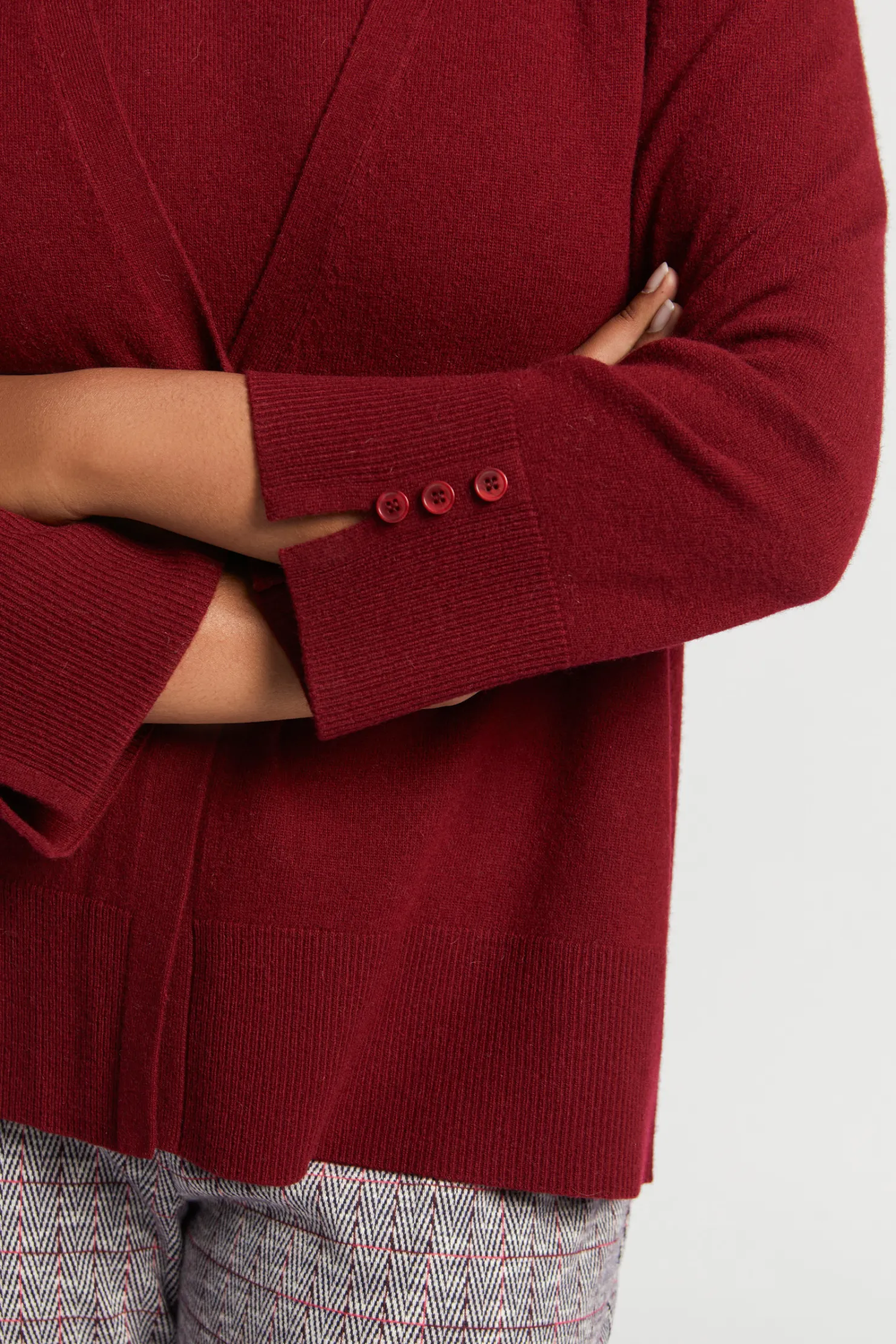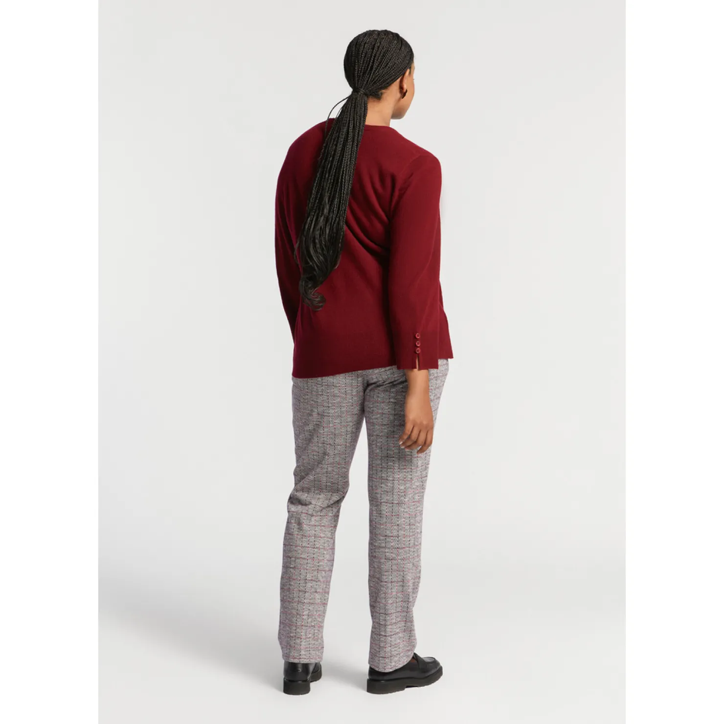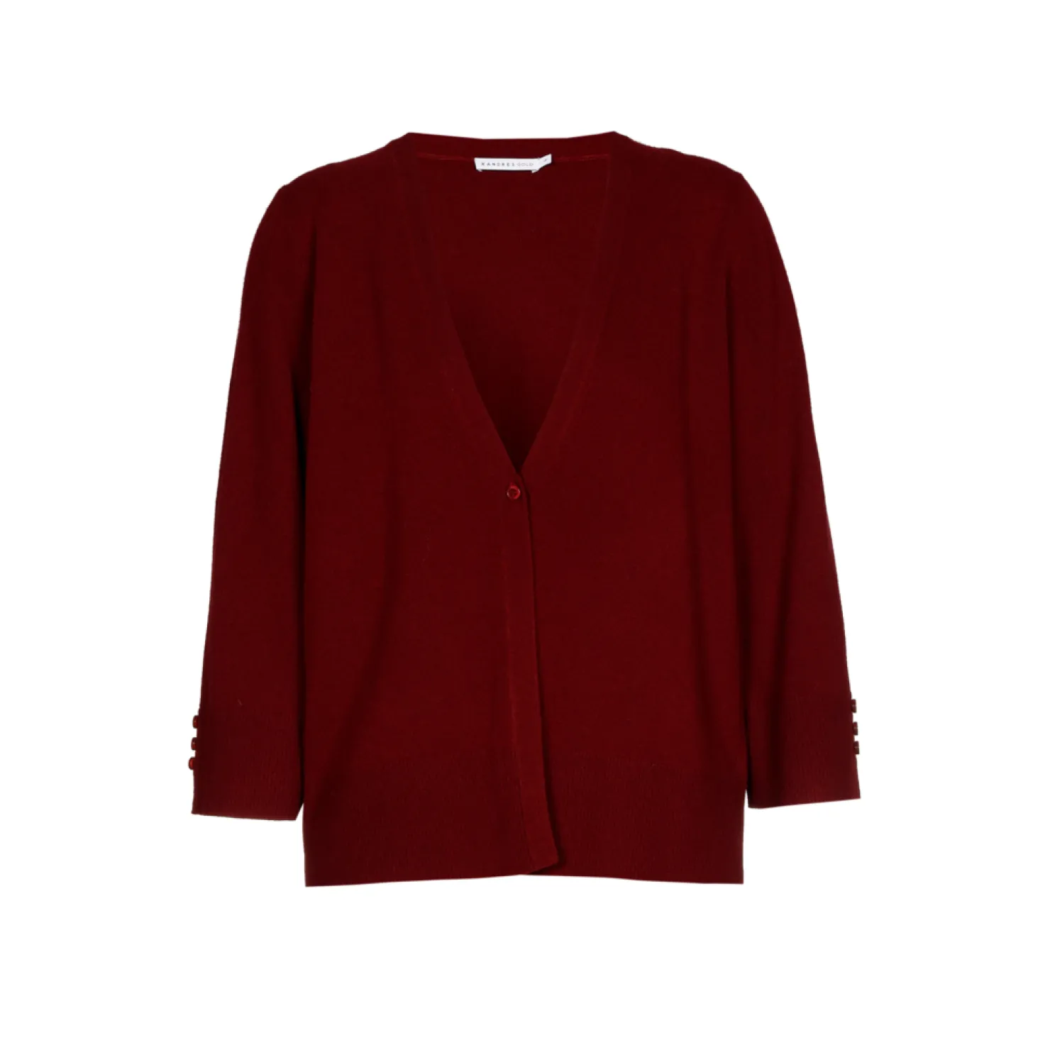 Sluiting met knop Diepe V-hals Hoge ribdetails Wijde 7/8 mouwen