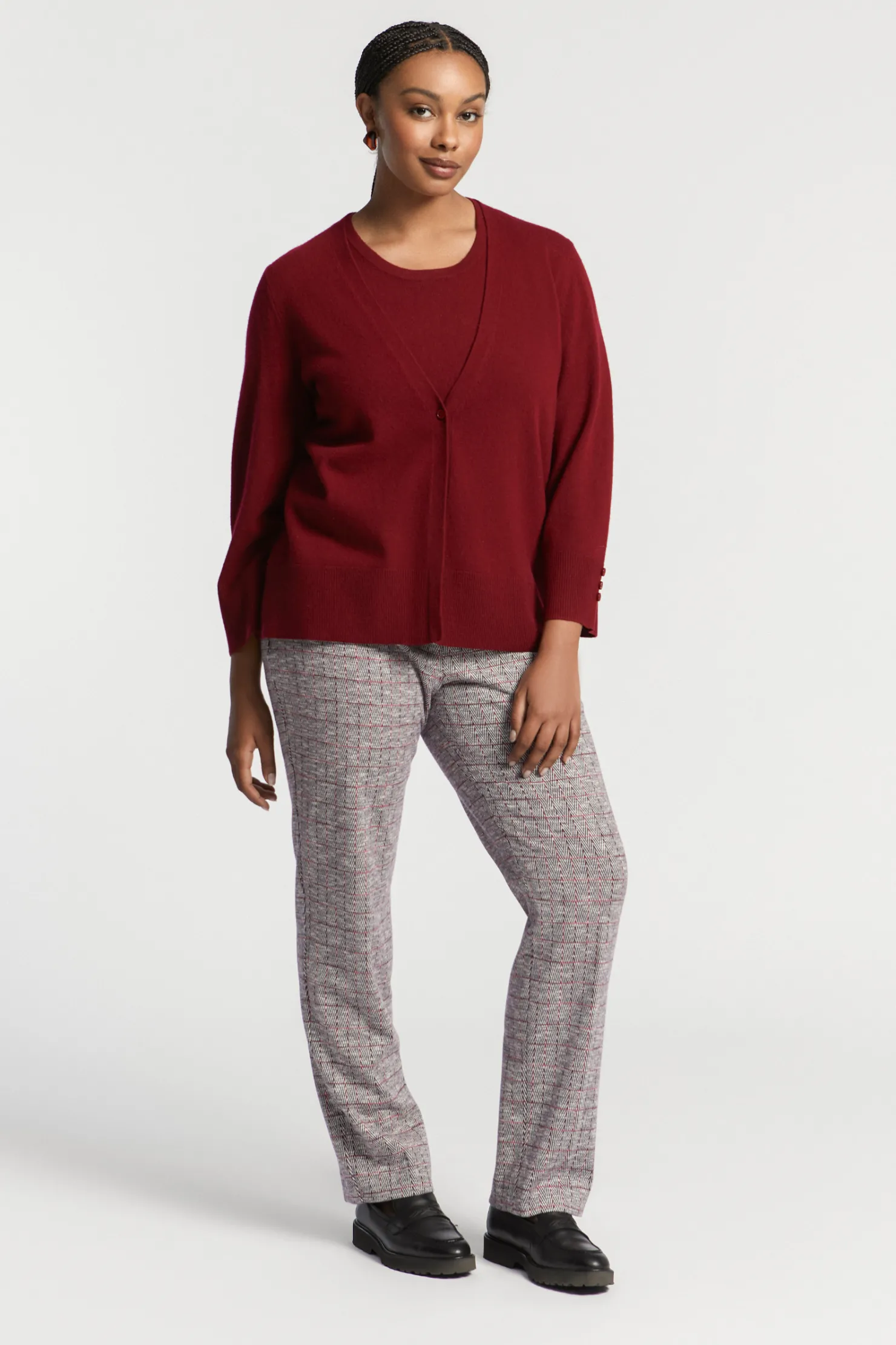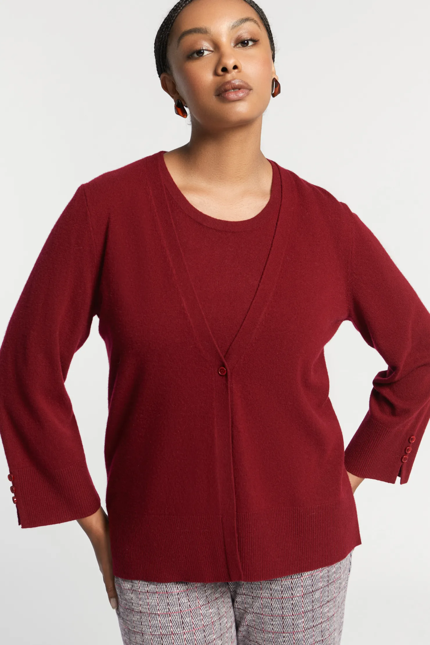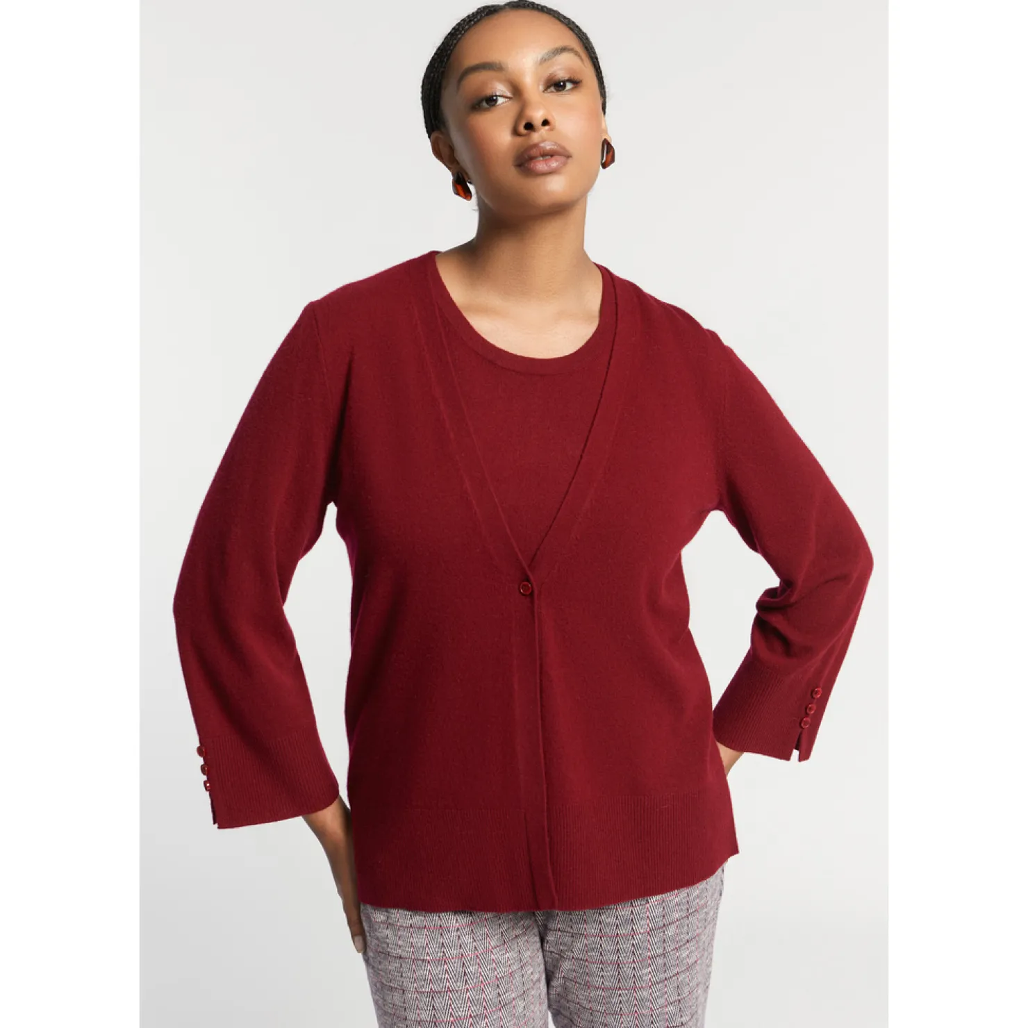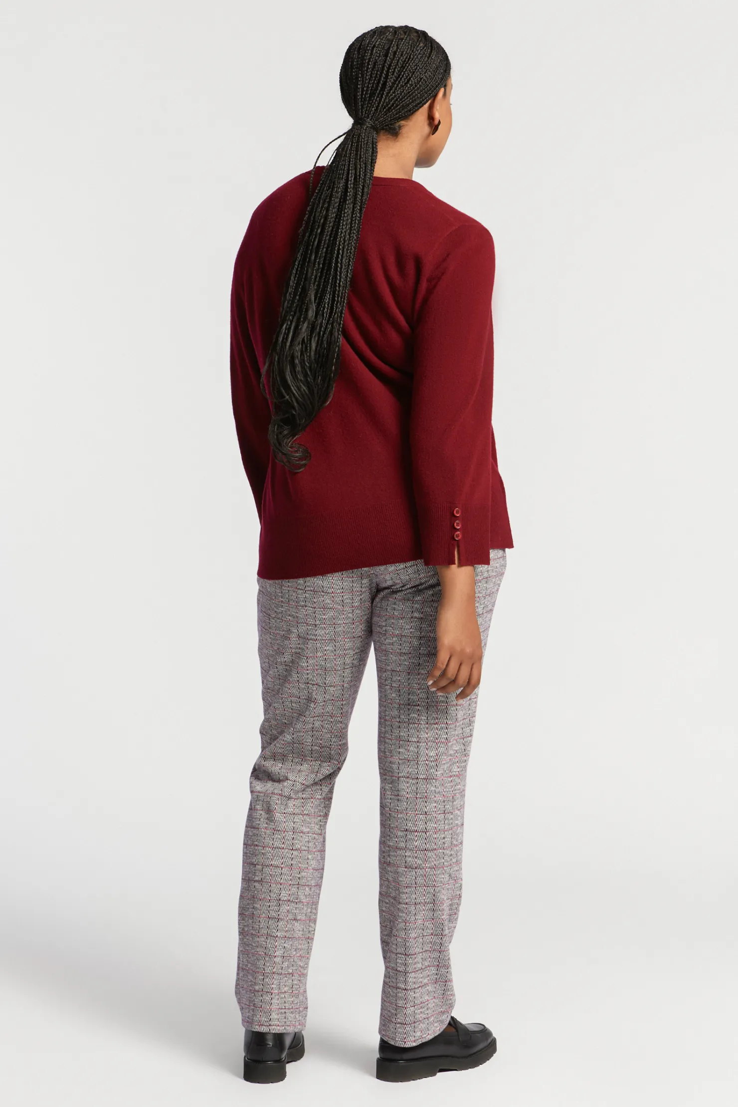 Sluiting met knop Diepe V-hals Hoge ribdetails Wijde 7/8 mouwen