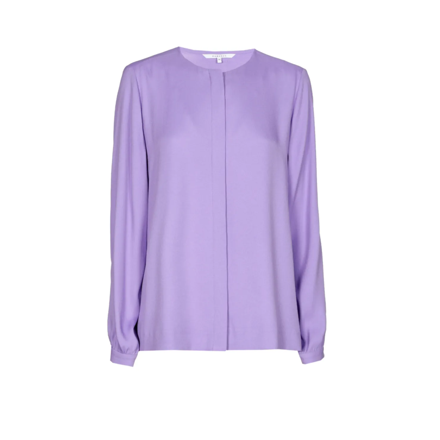 Blouse met ronde kraag Blinde knoopsluiting Fluïde stof Ronde hals Smalle cuff met knoopje