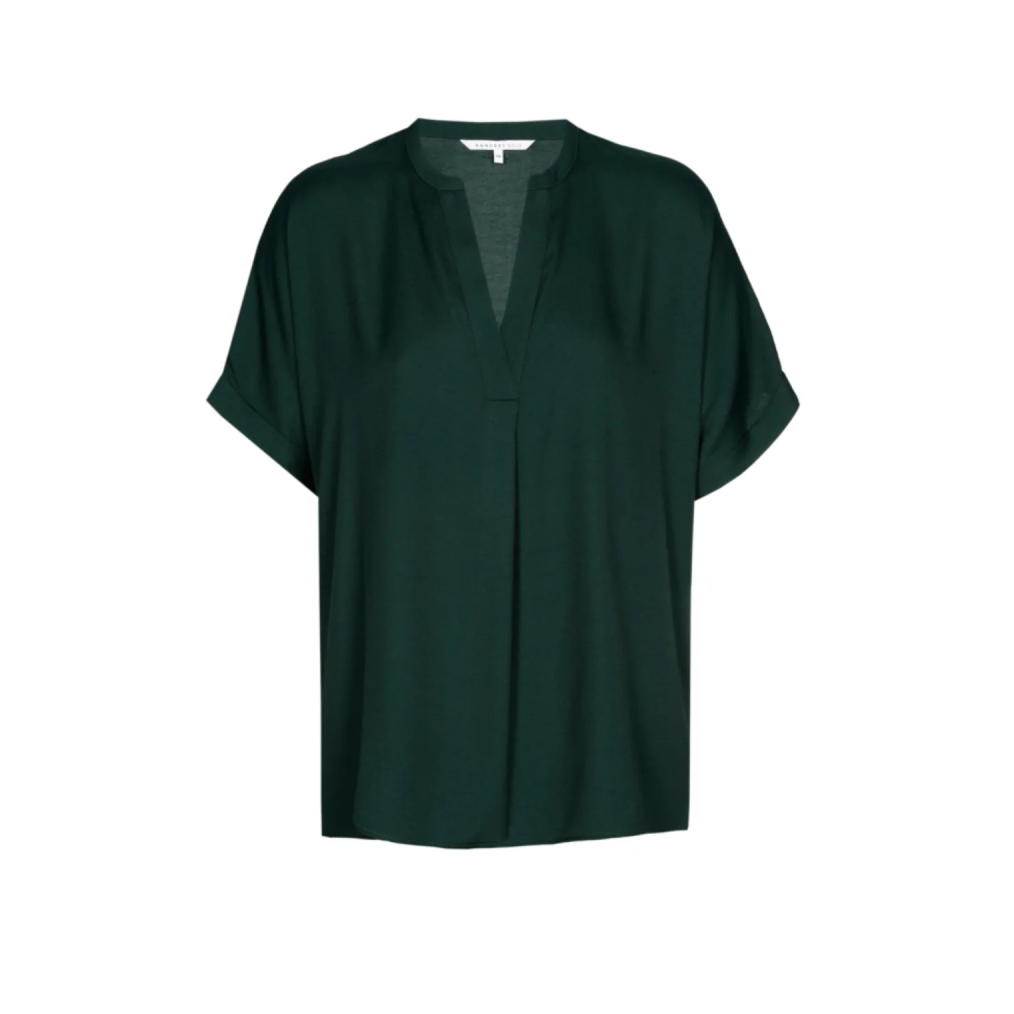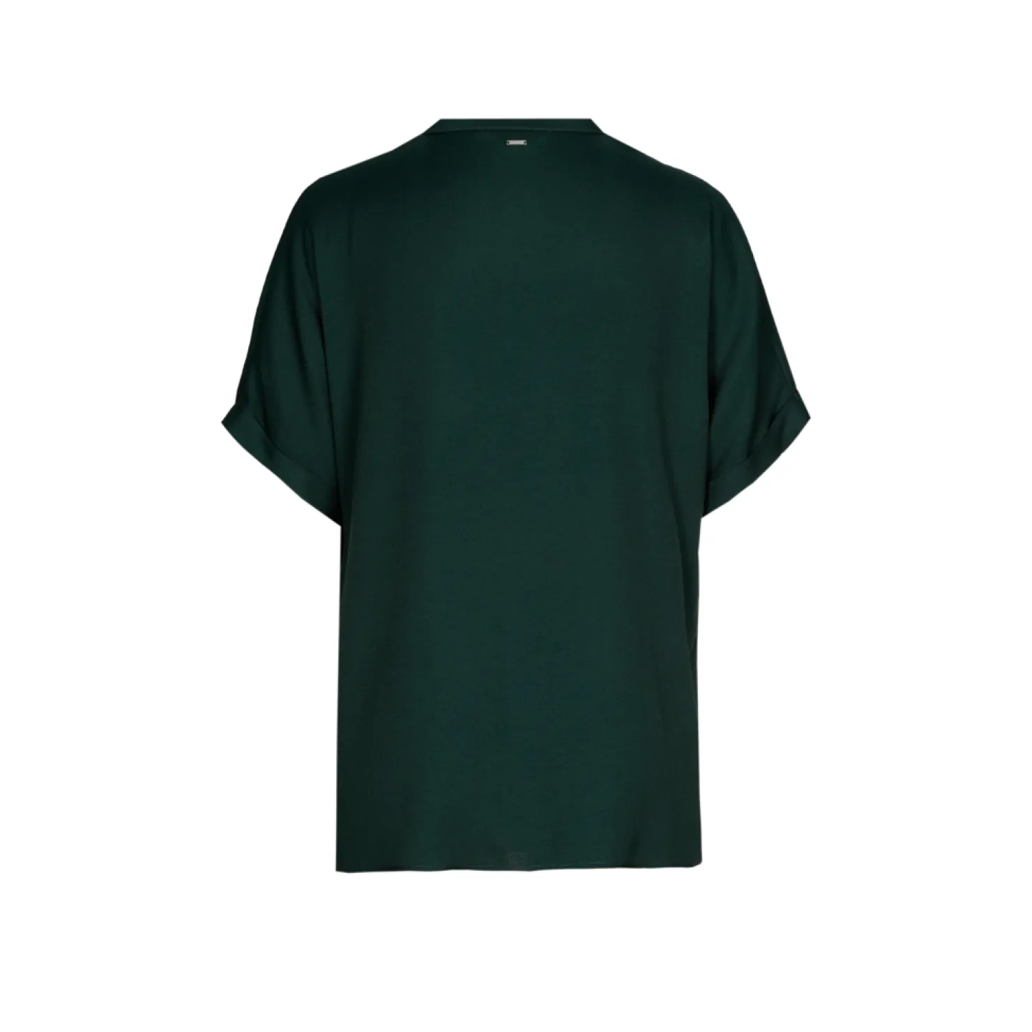 Ronde hals met split Licht glanzende stof Splitje aan de zijnaad Korte mouwen met omslag
