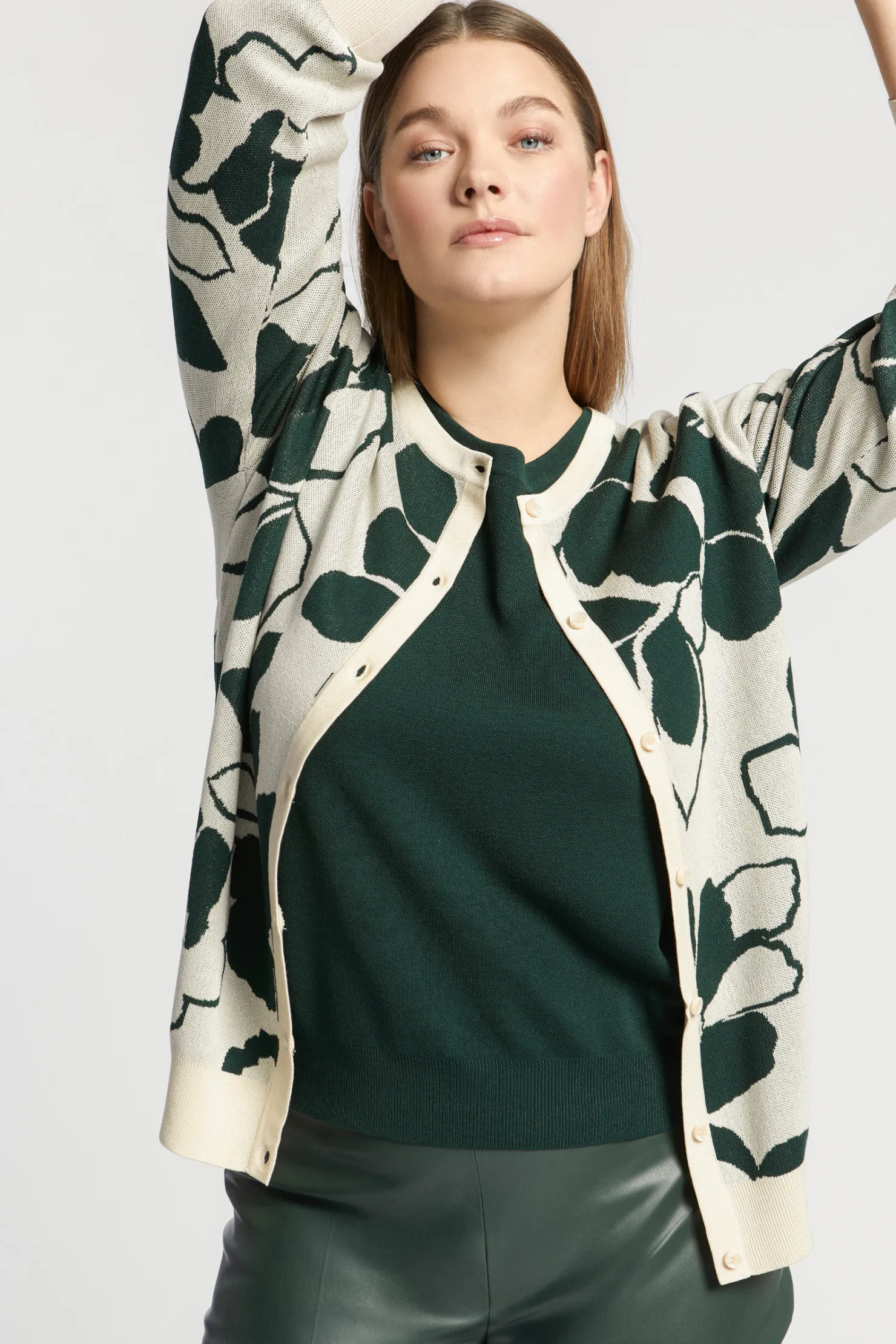 Ronde hals Jacquard bloemenprint Lange mouwen Gilet met stretch