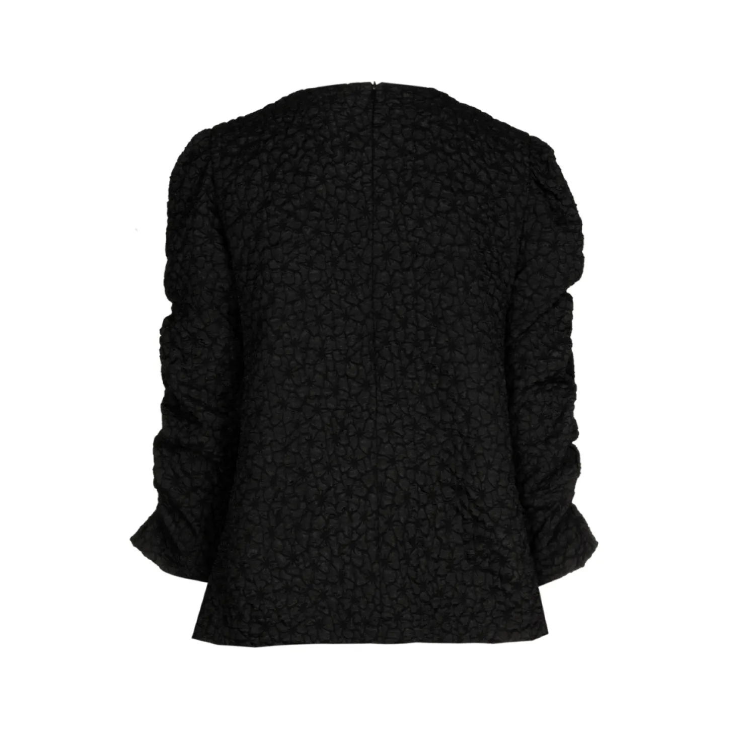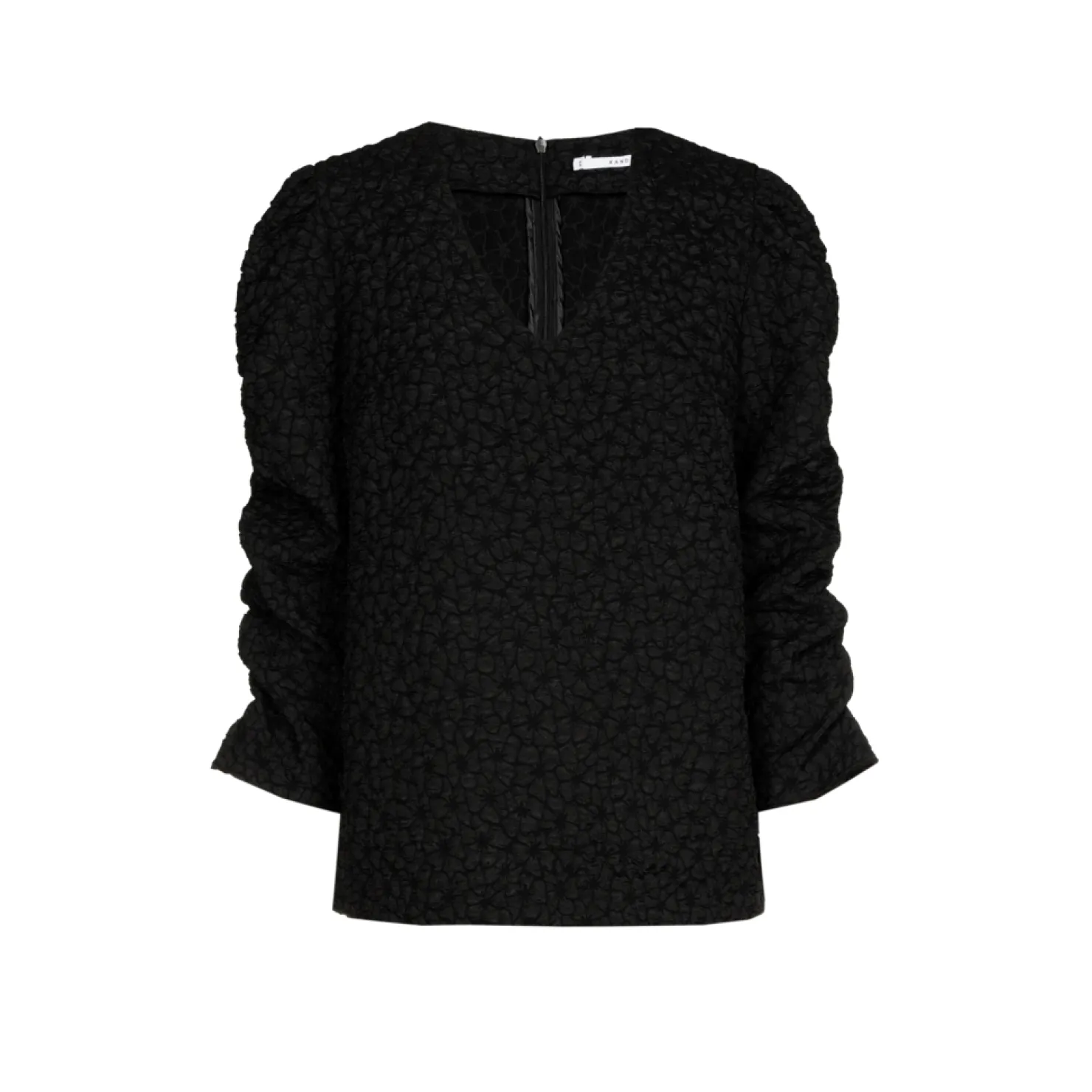Blouse met V-hals Pofmouw met opgetrokken effect Borstneep en splitje aan zijkant Blinde rits op de rug Jacquardgeweven…