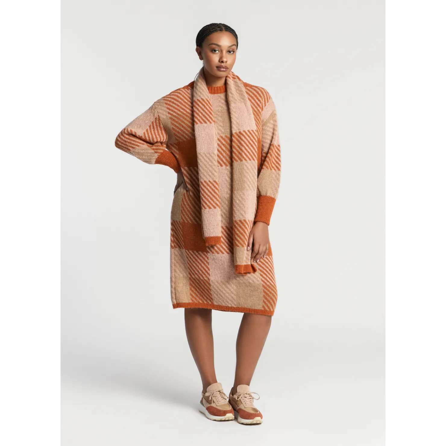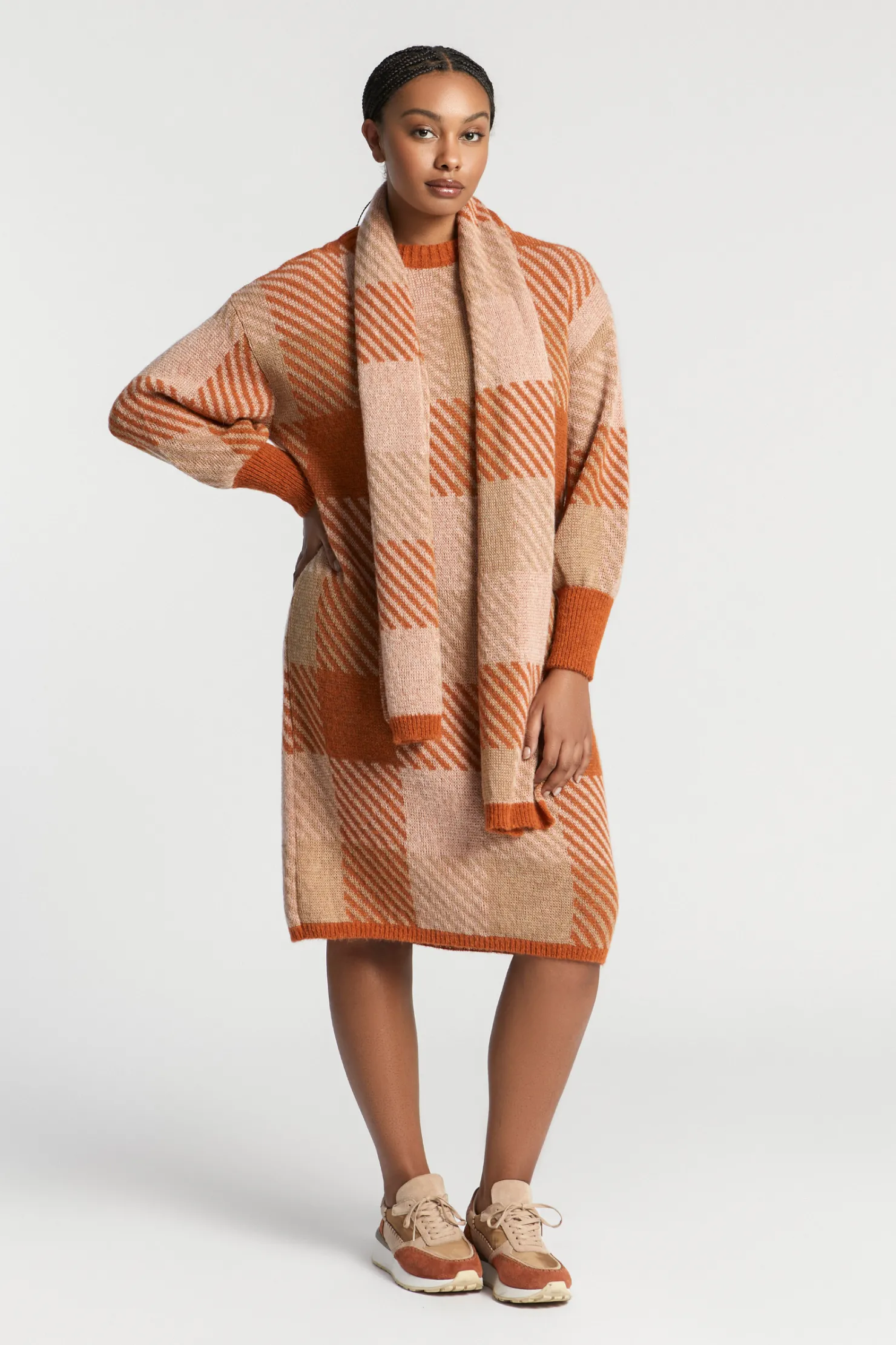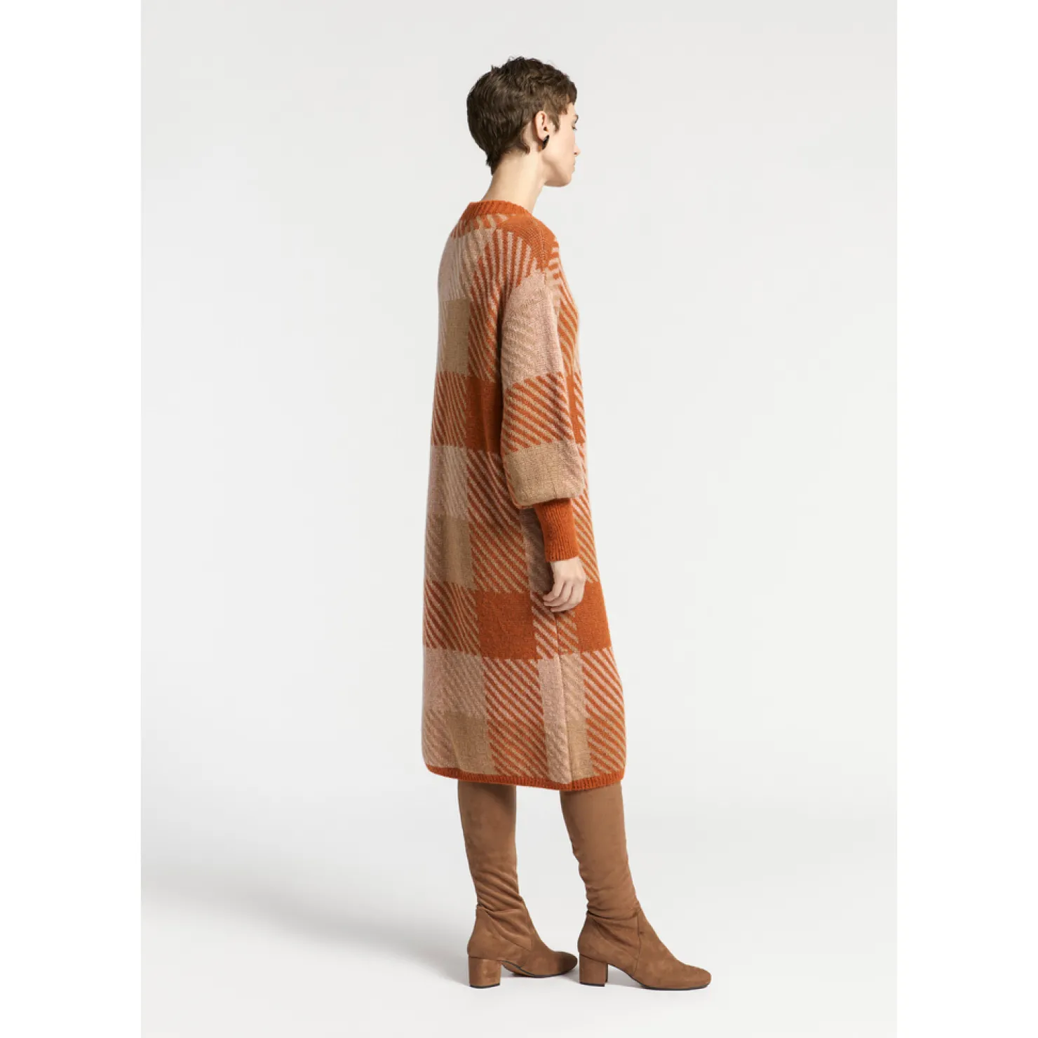 Rechte jurk met ronde hals Structuursteek van jacquard Tijdloze geruite print Middellange jurk