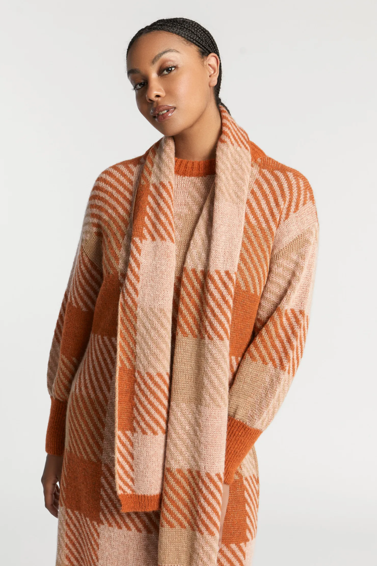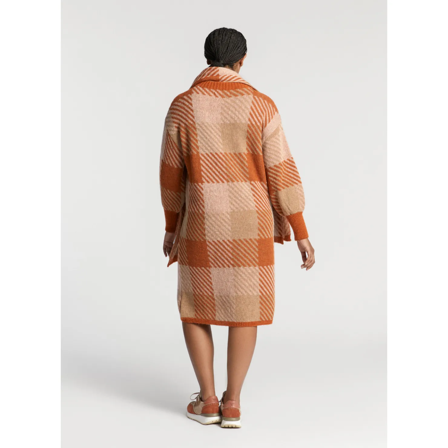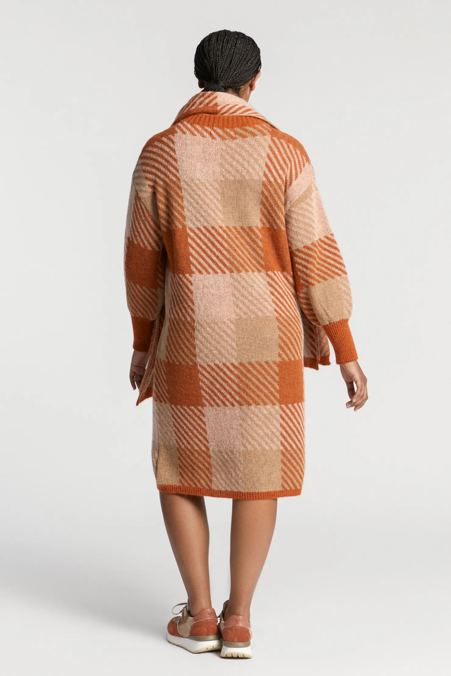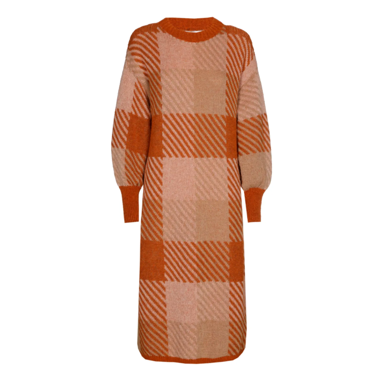 Rechte jurk met ronde hals Structuursteek van jacquard Tijdloze geruite print Middellange jurk
