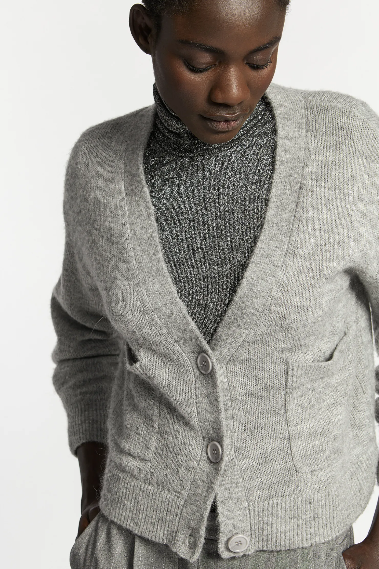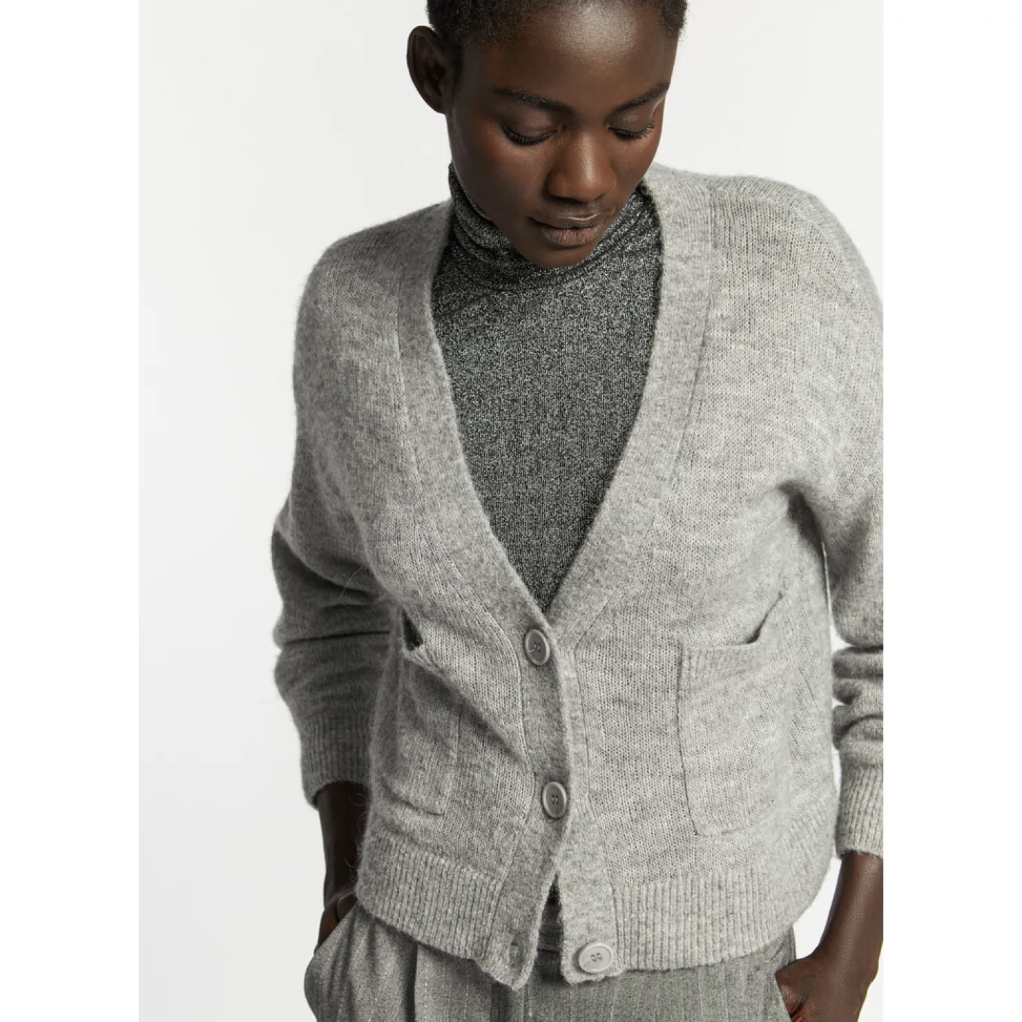 Mohairmix Korte gilet V-hals met drie knopen Opgebreide zakken Drop shoulder