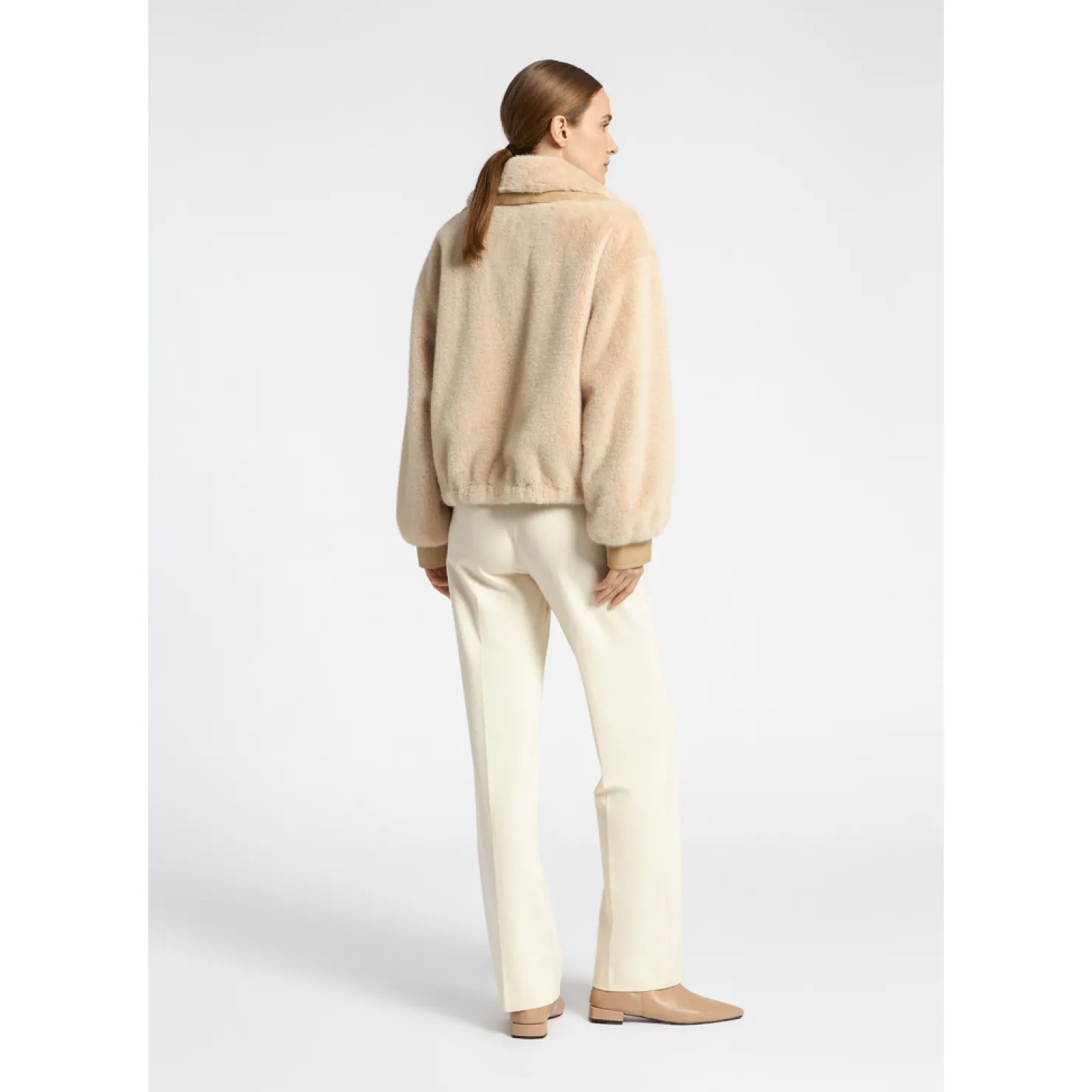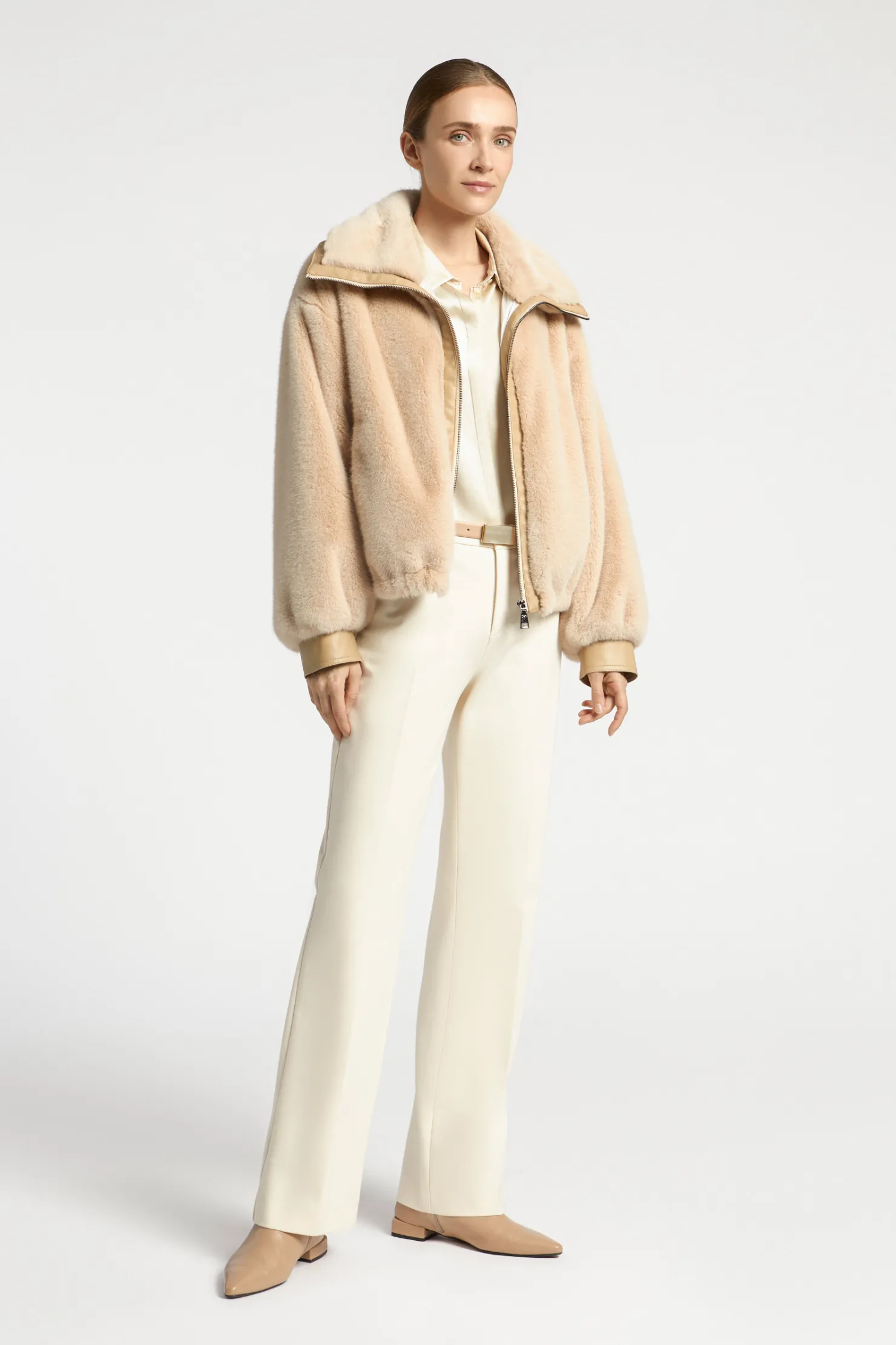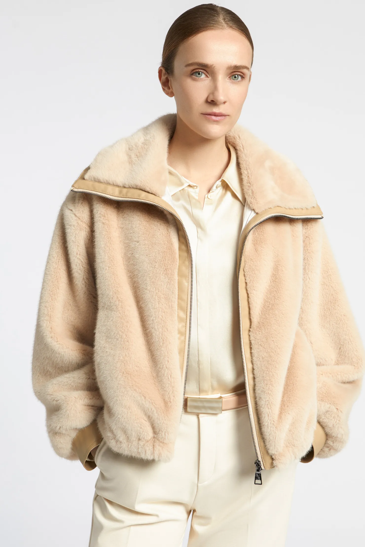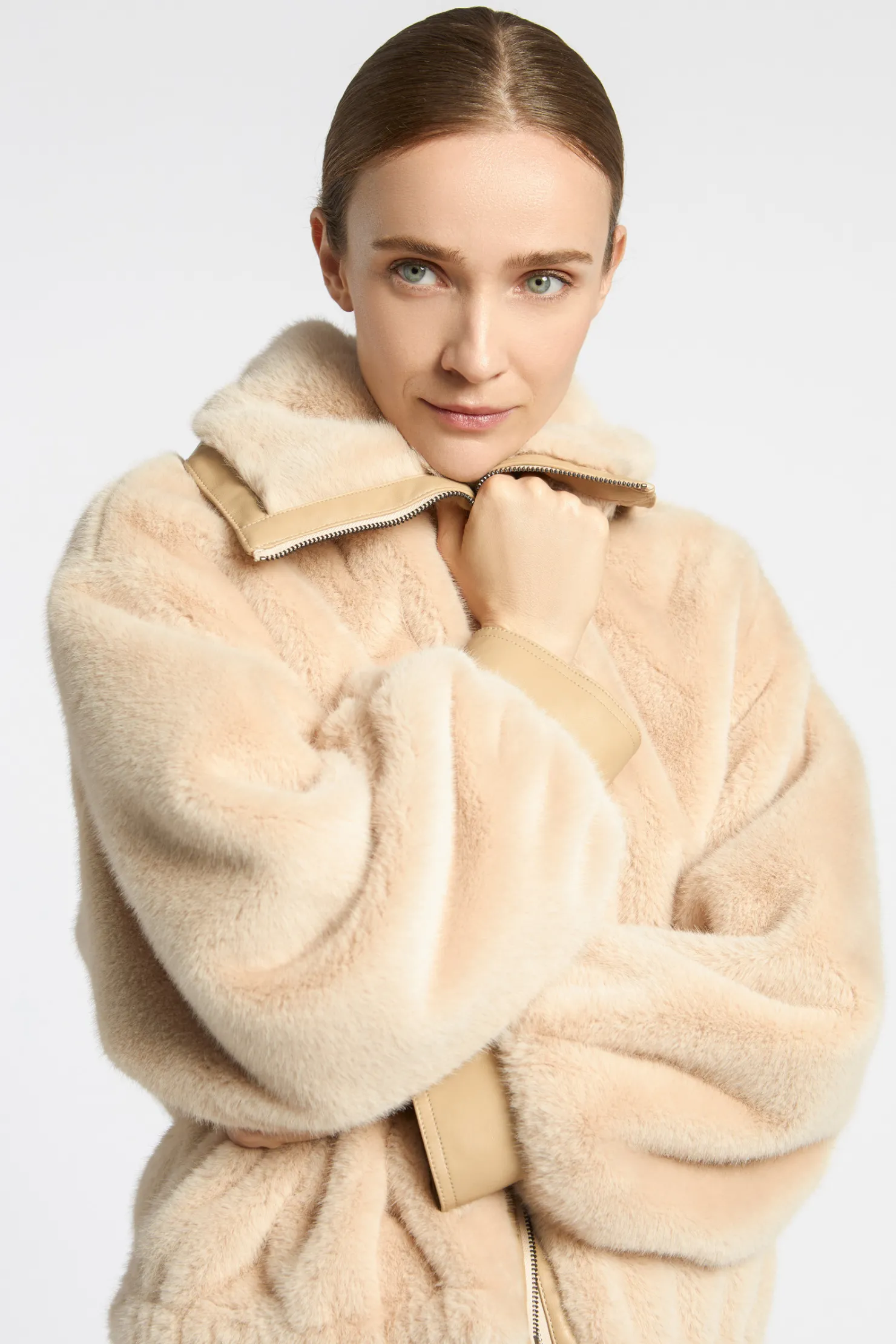 Korte jas van faux fur Faux leather details Gevoerd met logoprint Losse pasvorm