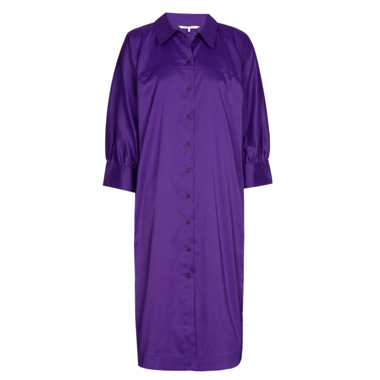 Hemdjurk met knopen Steekzakken aan de zijkant Afgeronde zoom met split 7/8 mouwen Glanzend stretchkatoen