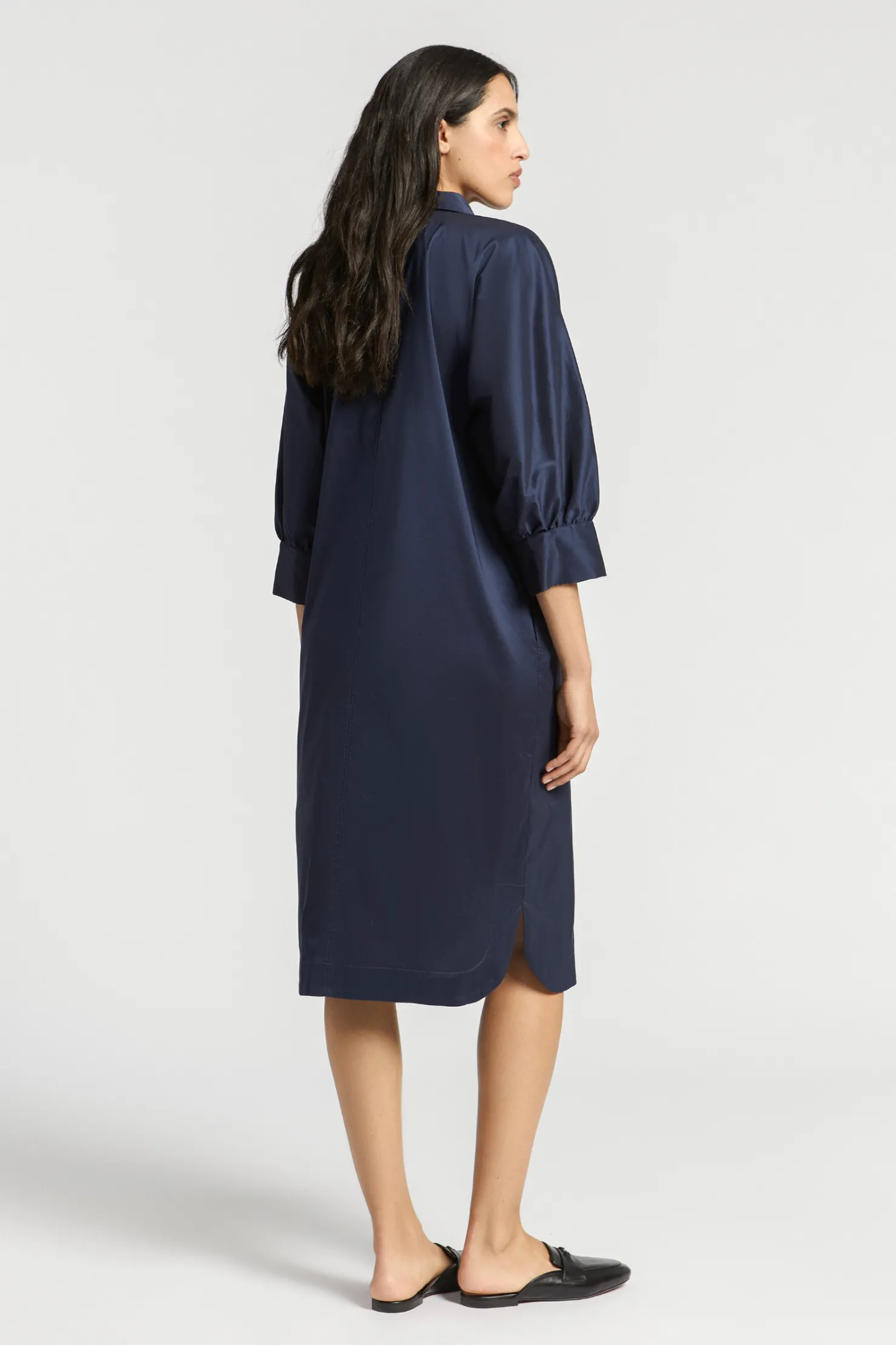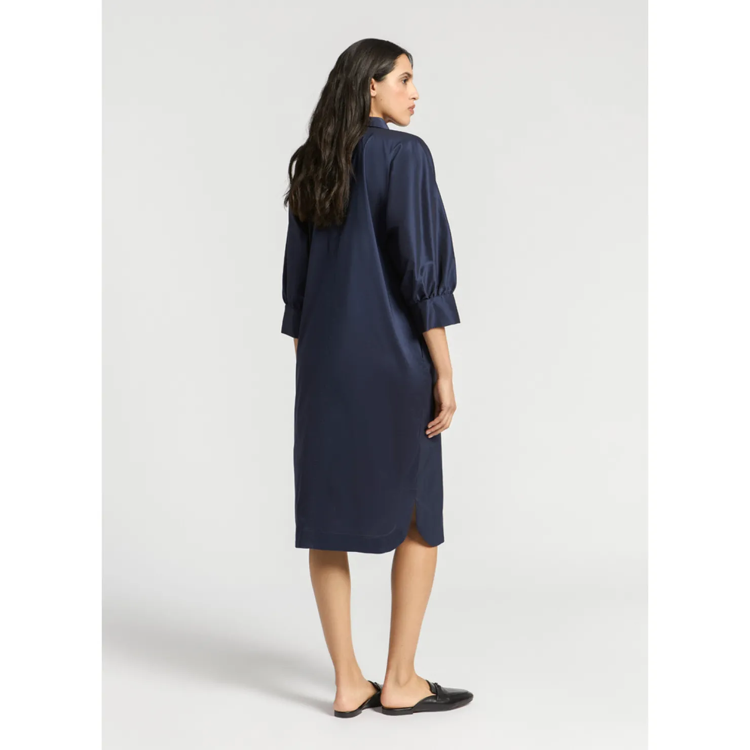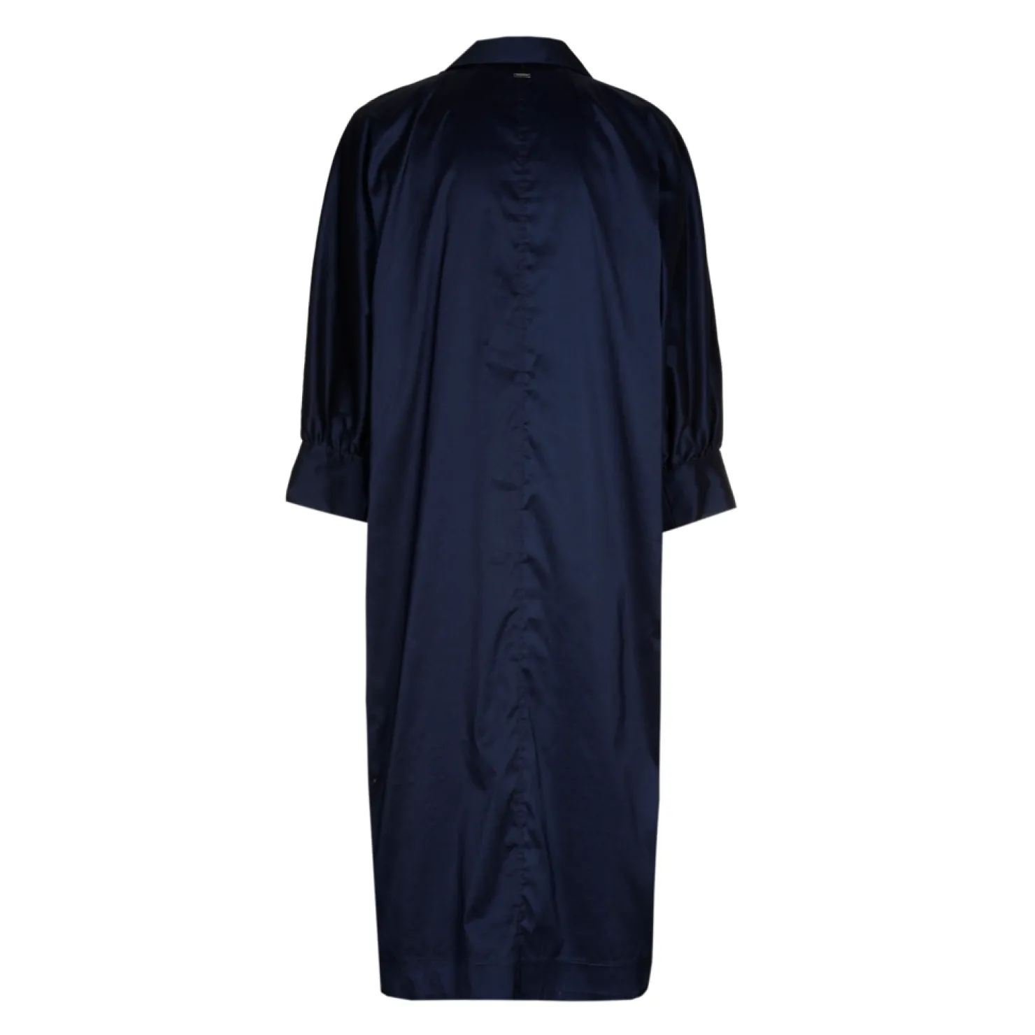 Hemdjurk met knopen Steekzakken aan de zijkant Afgeronde zoom met split 7/8 mouwen Glanzend stretchkatoen