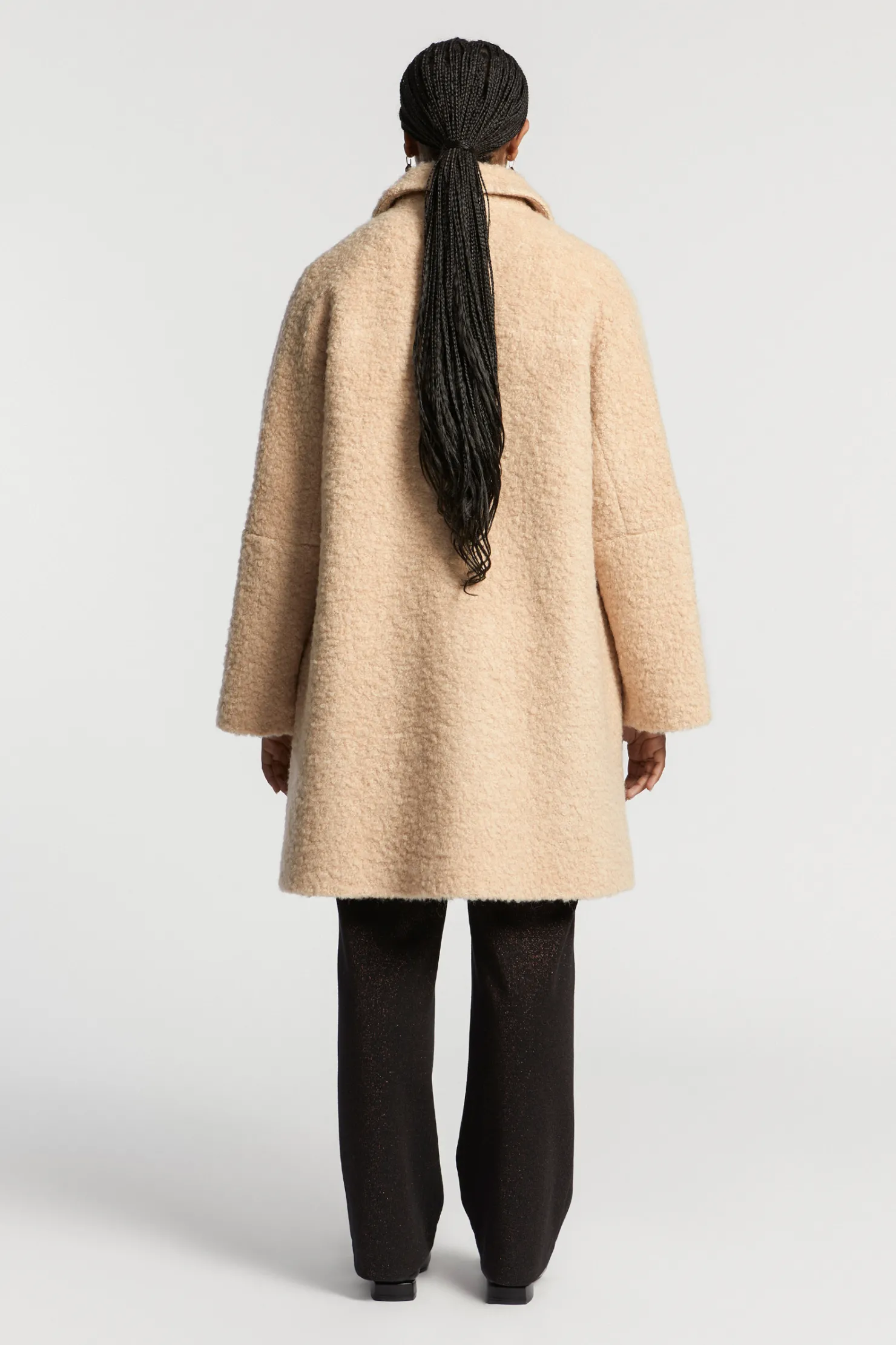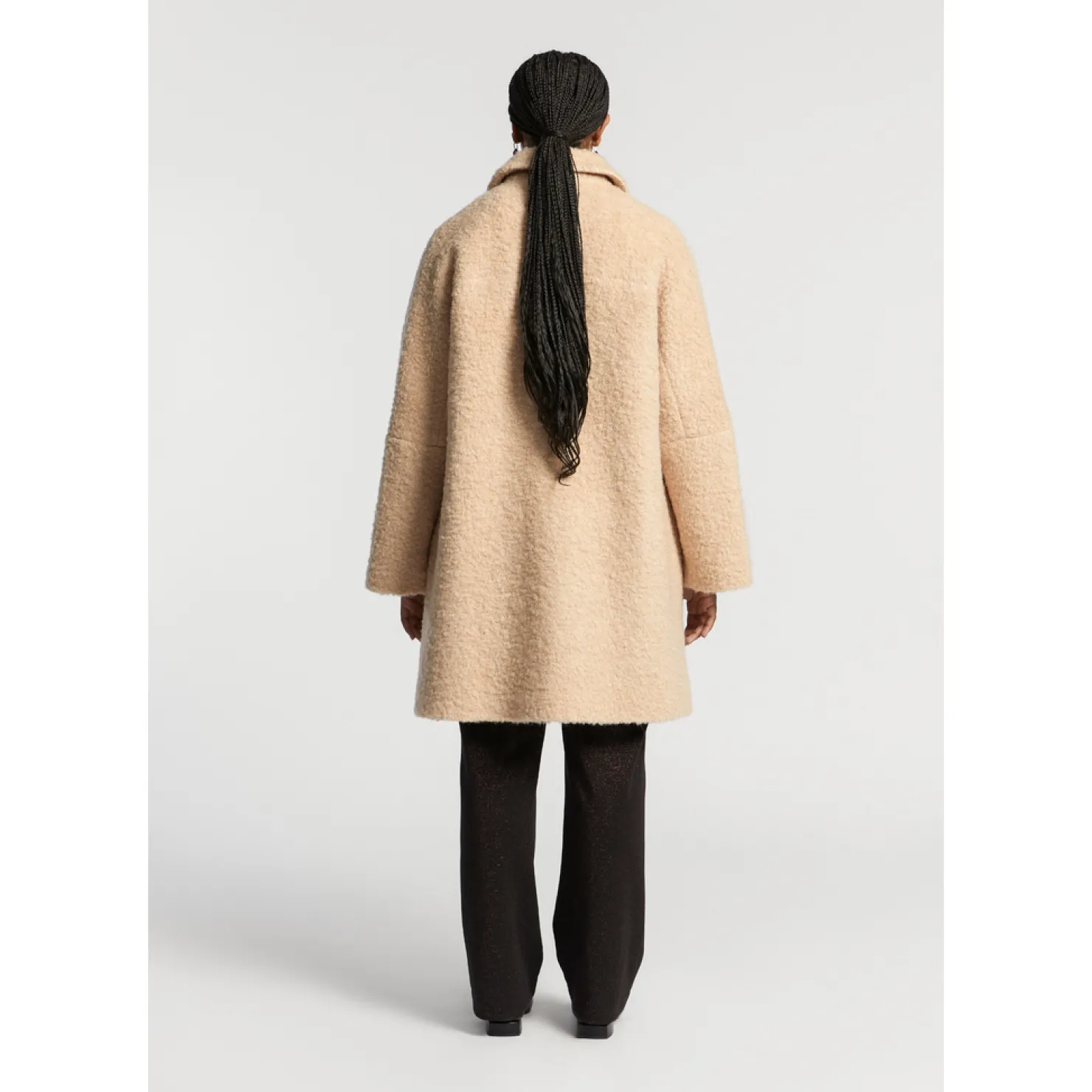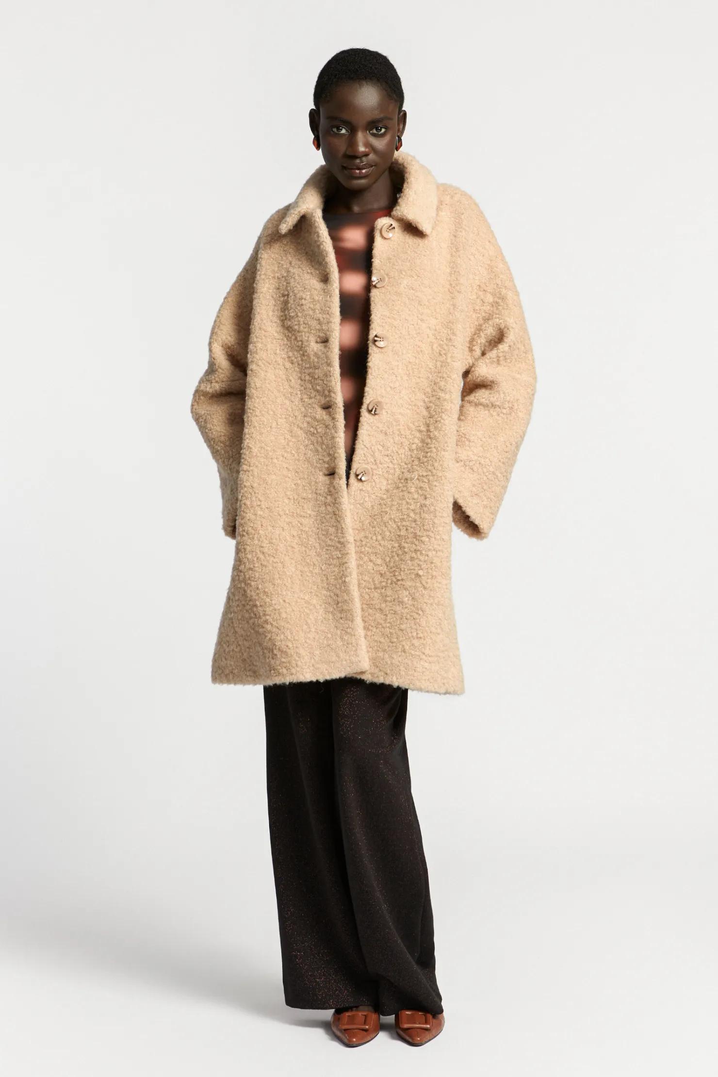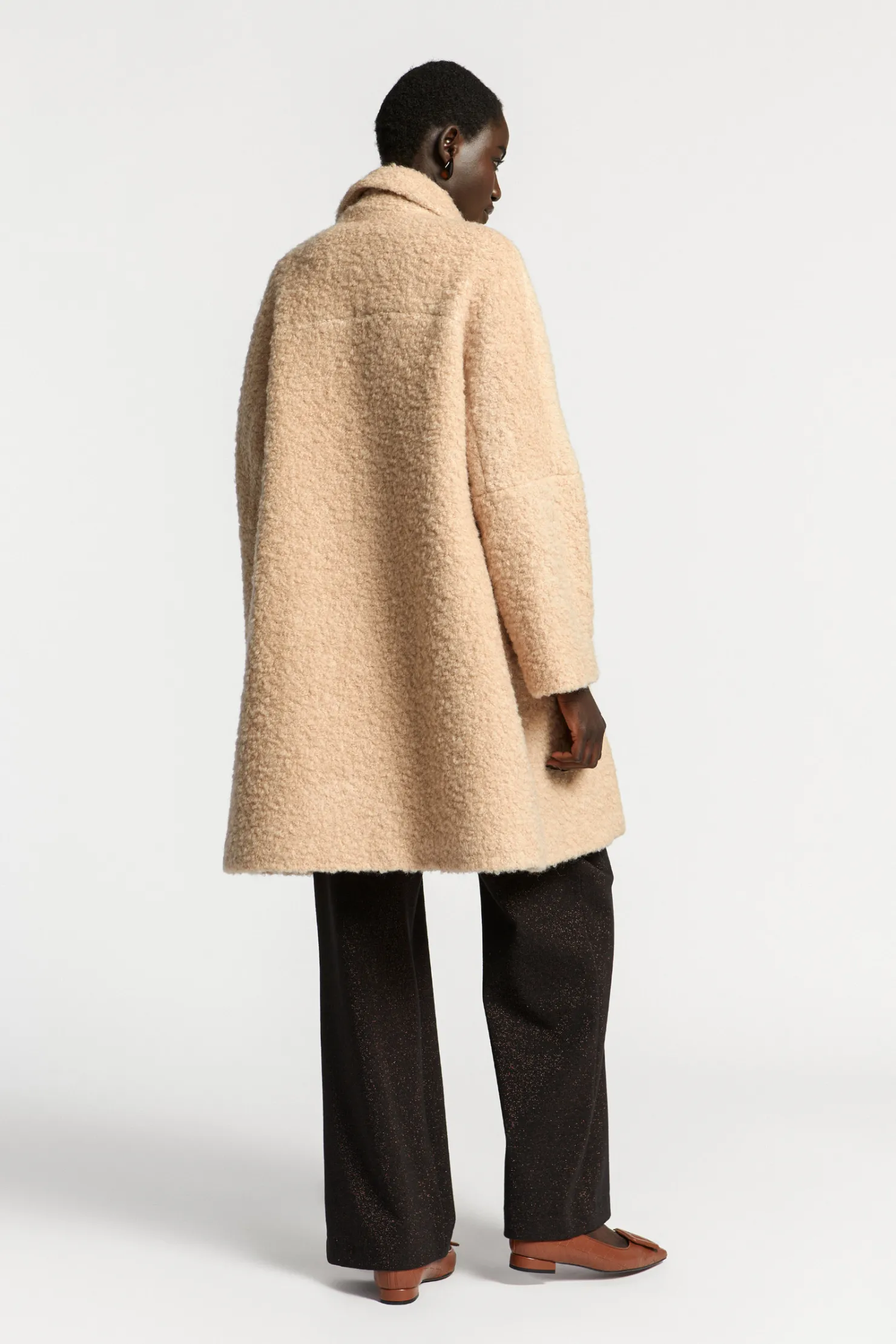Warme wintermantel met A-lijn Zachte boucléstof Brede boord aan de mouwen Hoge kraag