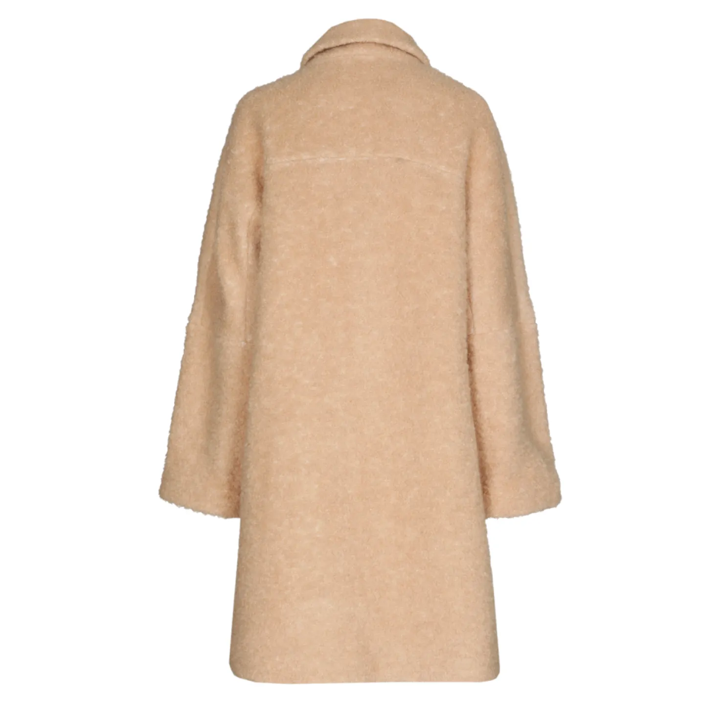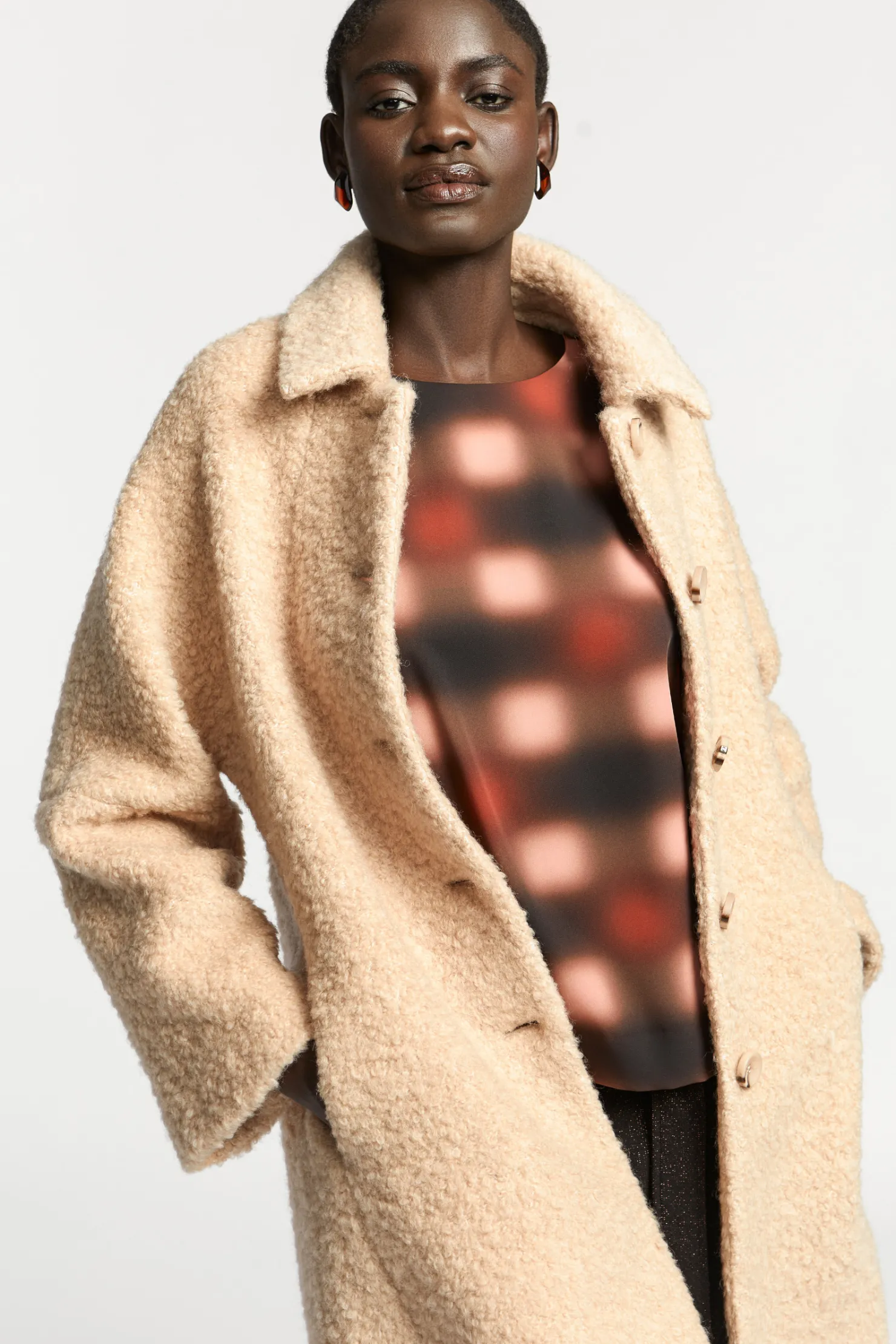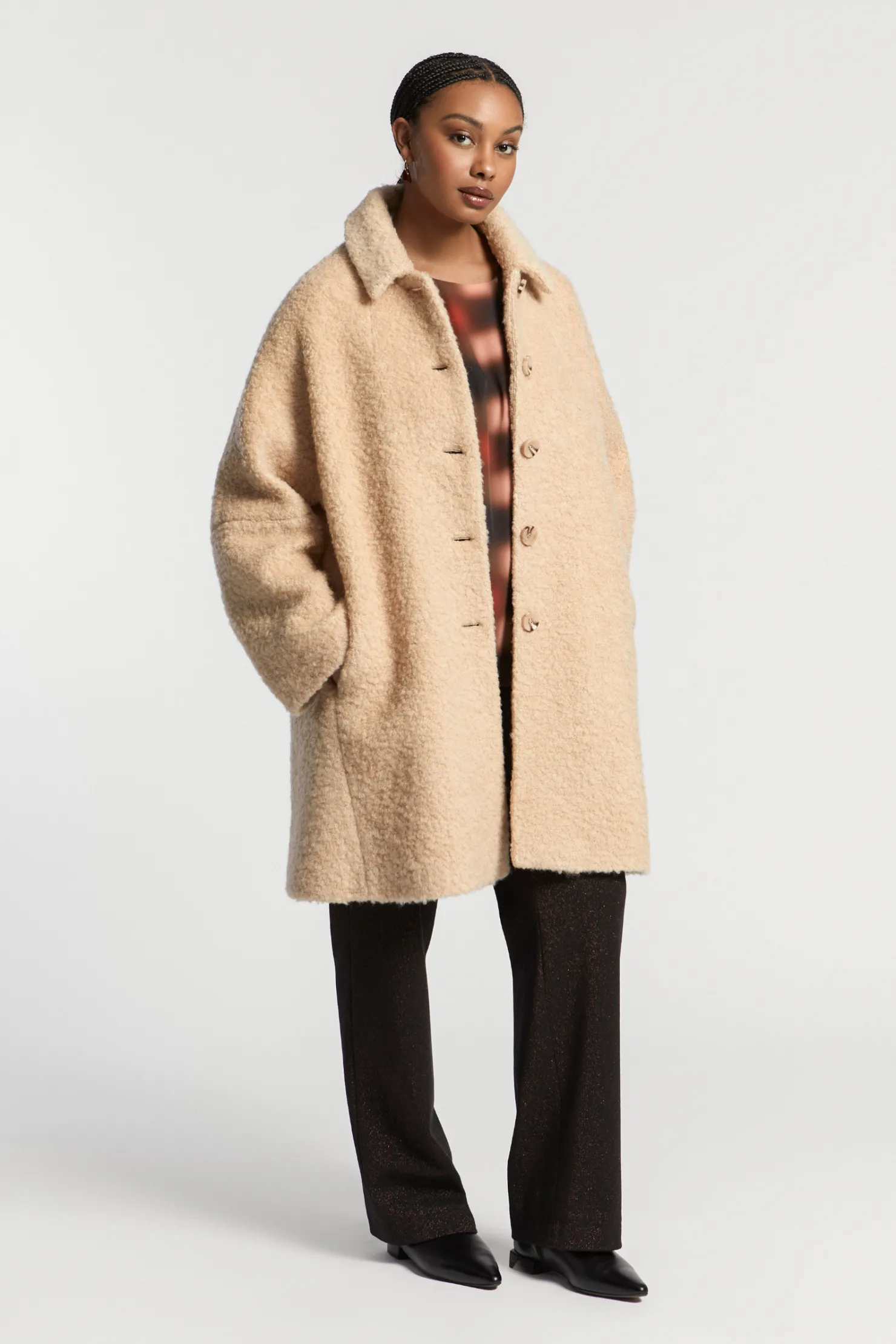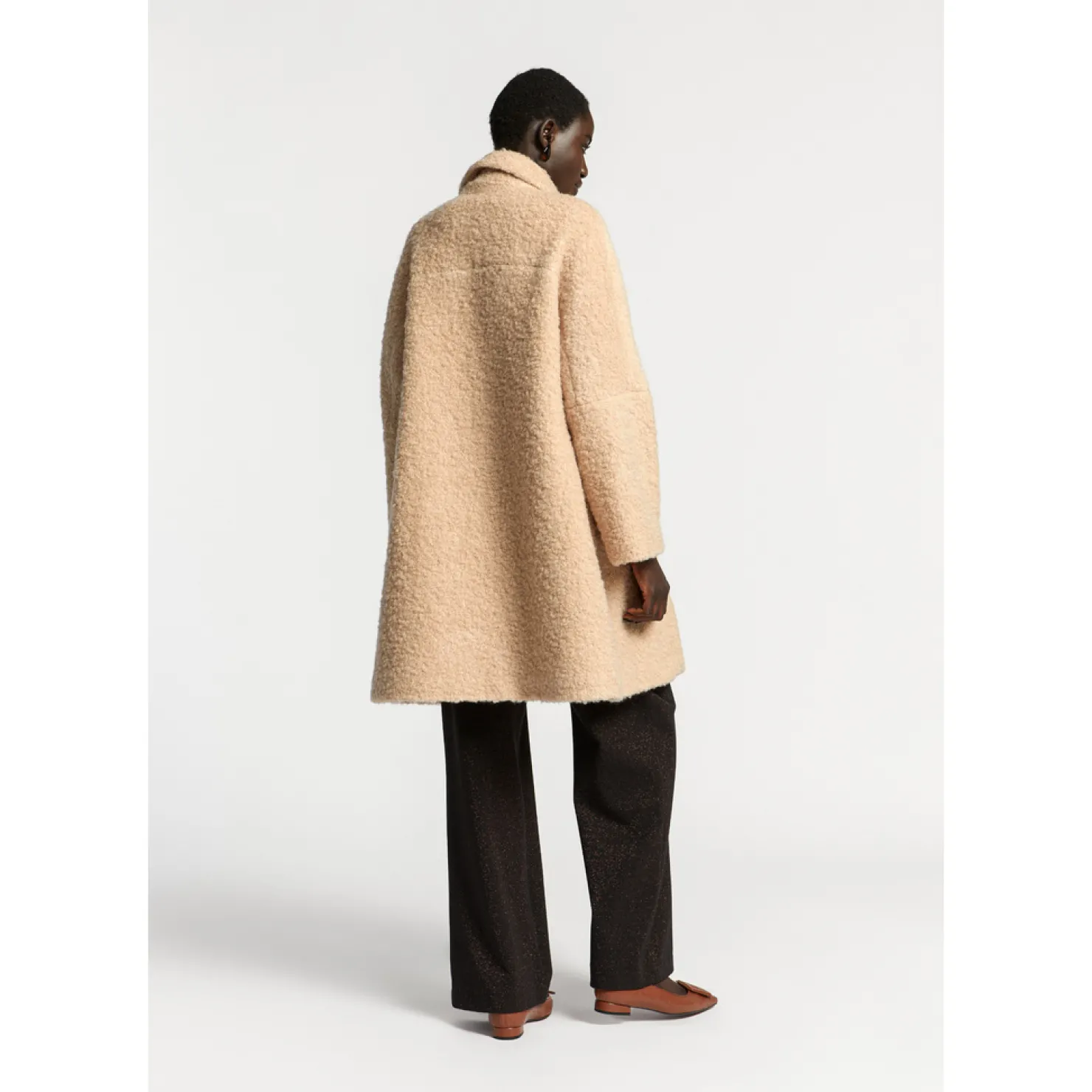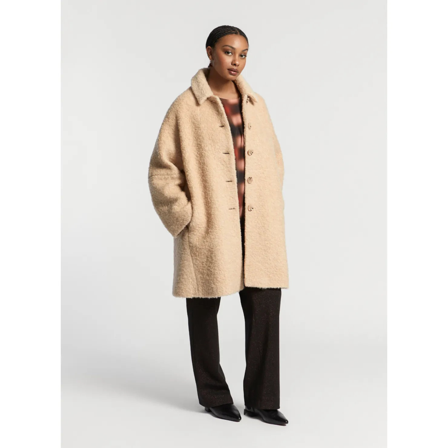 Warme wintermantel met A-lijn Zachte boucléstof Brede boord aan de mouwen Hoge kraag