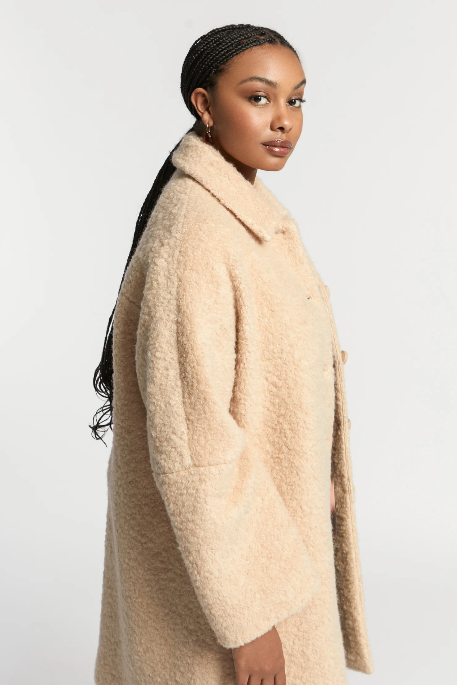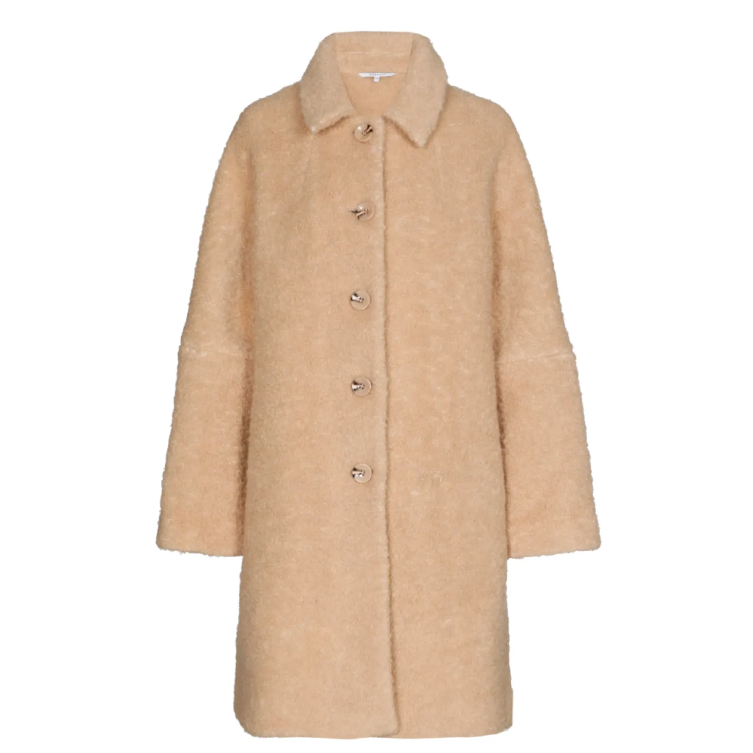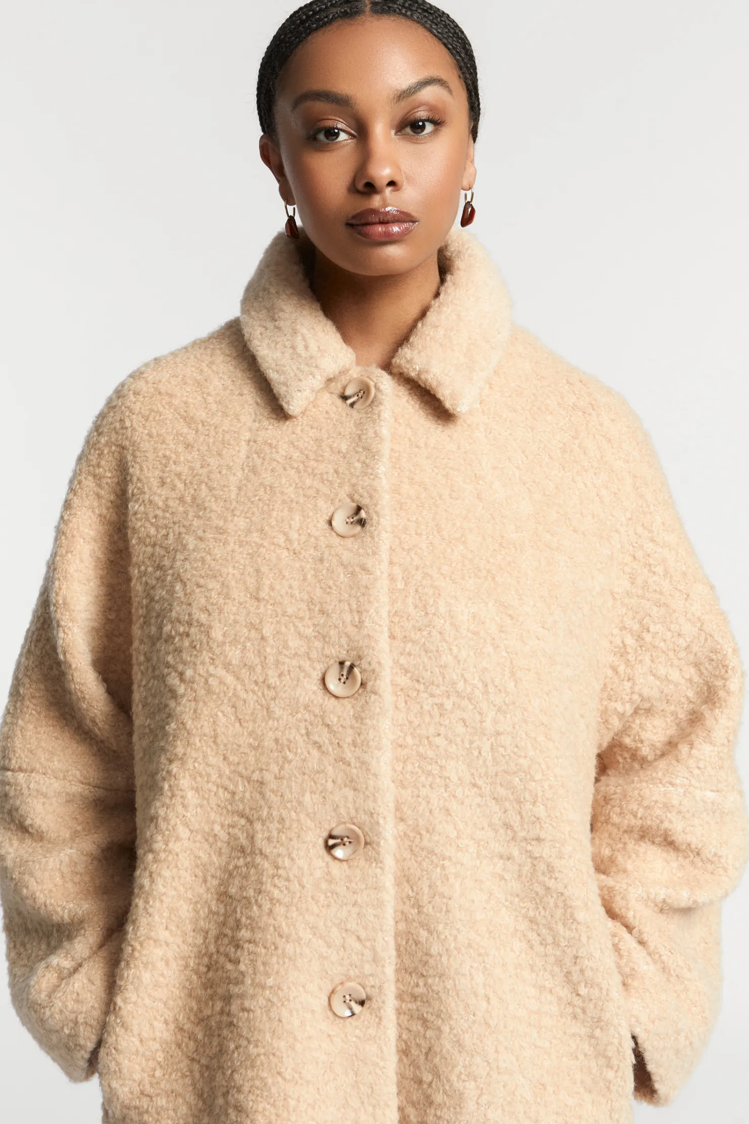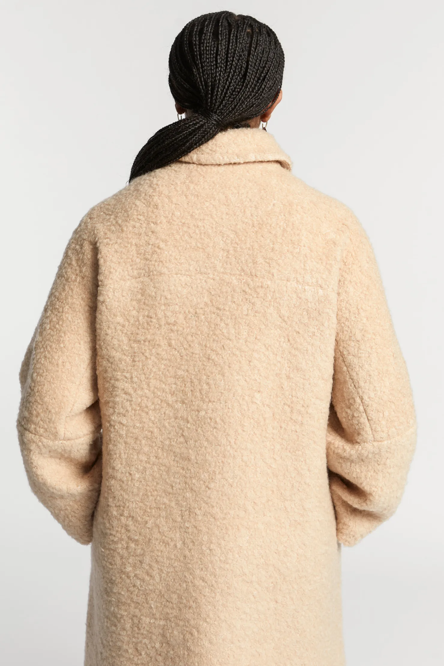 Warme wintermantel met A-lijn Zachte boucléstof Brede boord aan de mouwen Hoge kraag