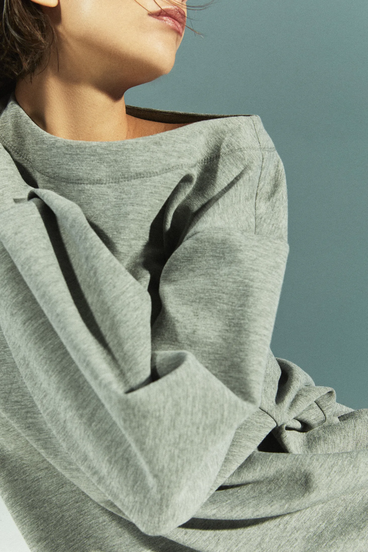 Comfortabele, losse pasvormBoothalsZijsplit onderaan de zoomLange mouwen met cuff