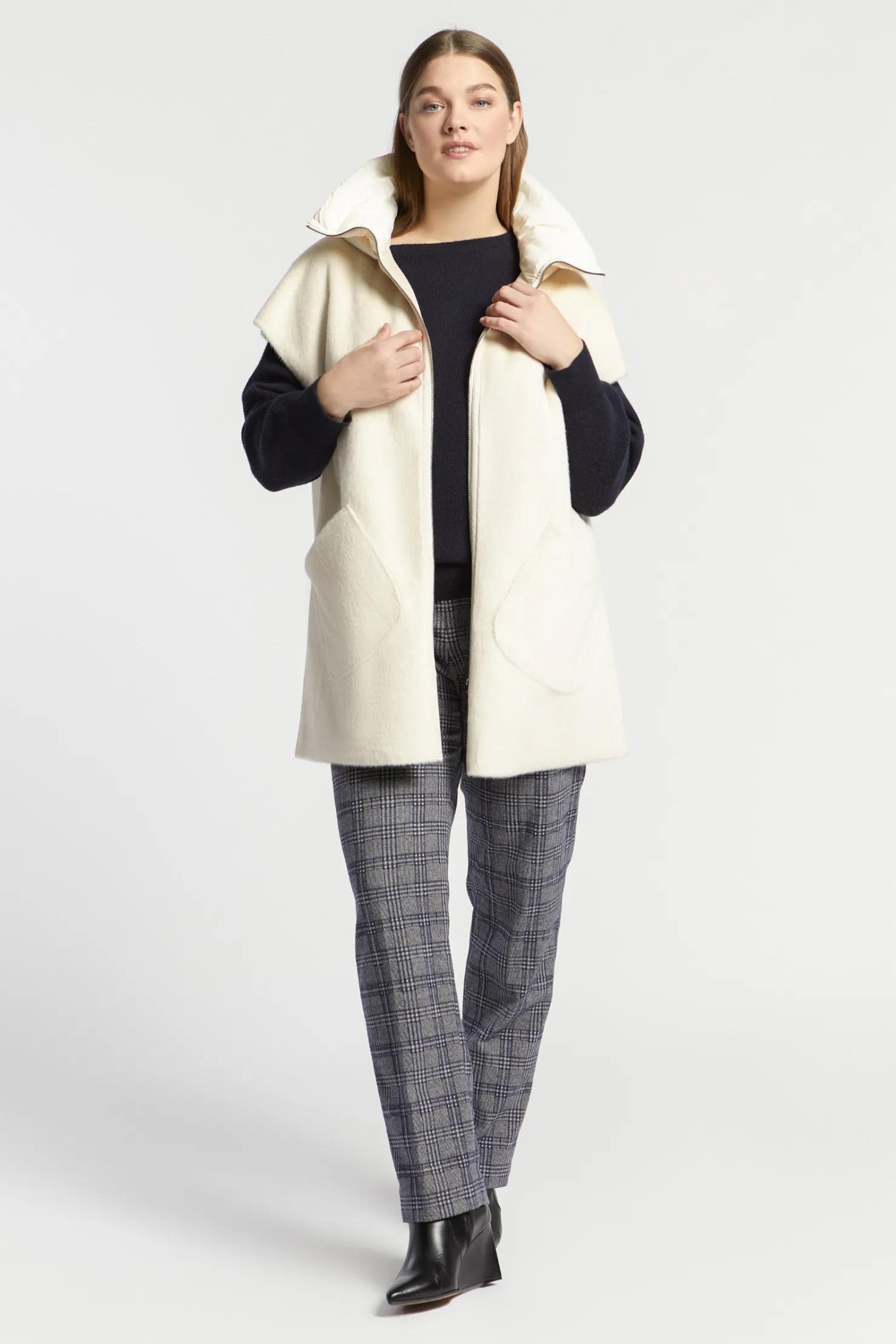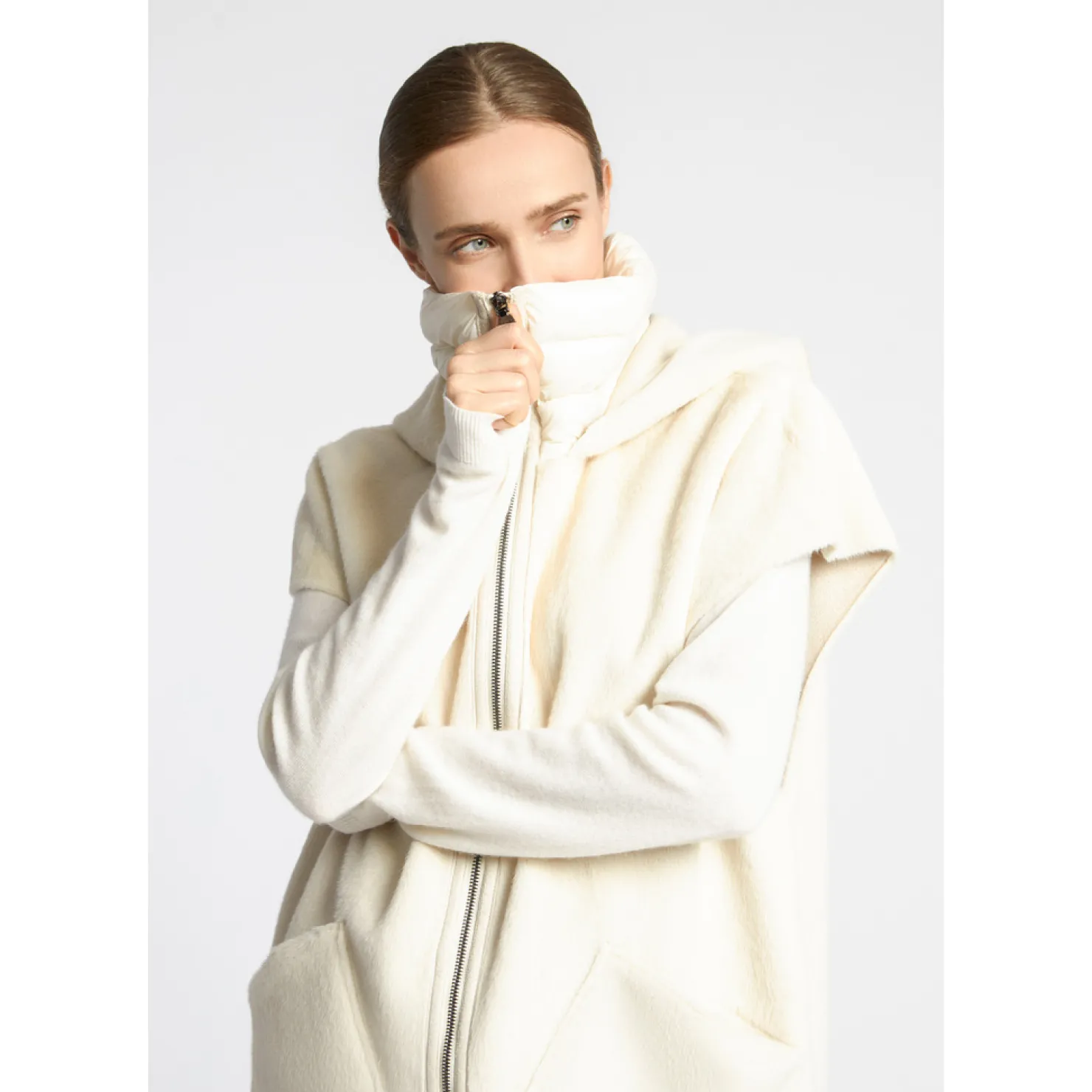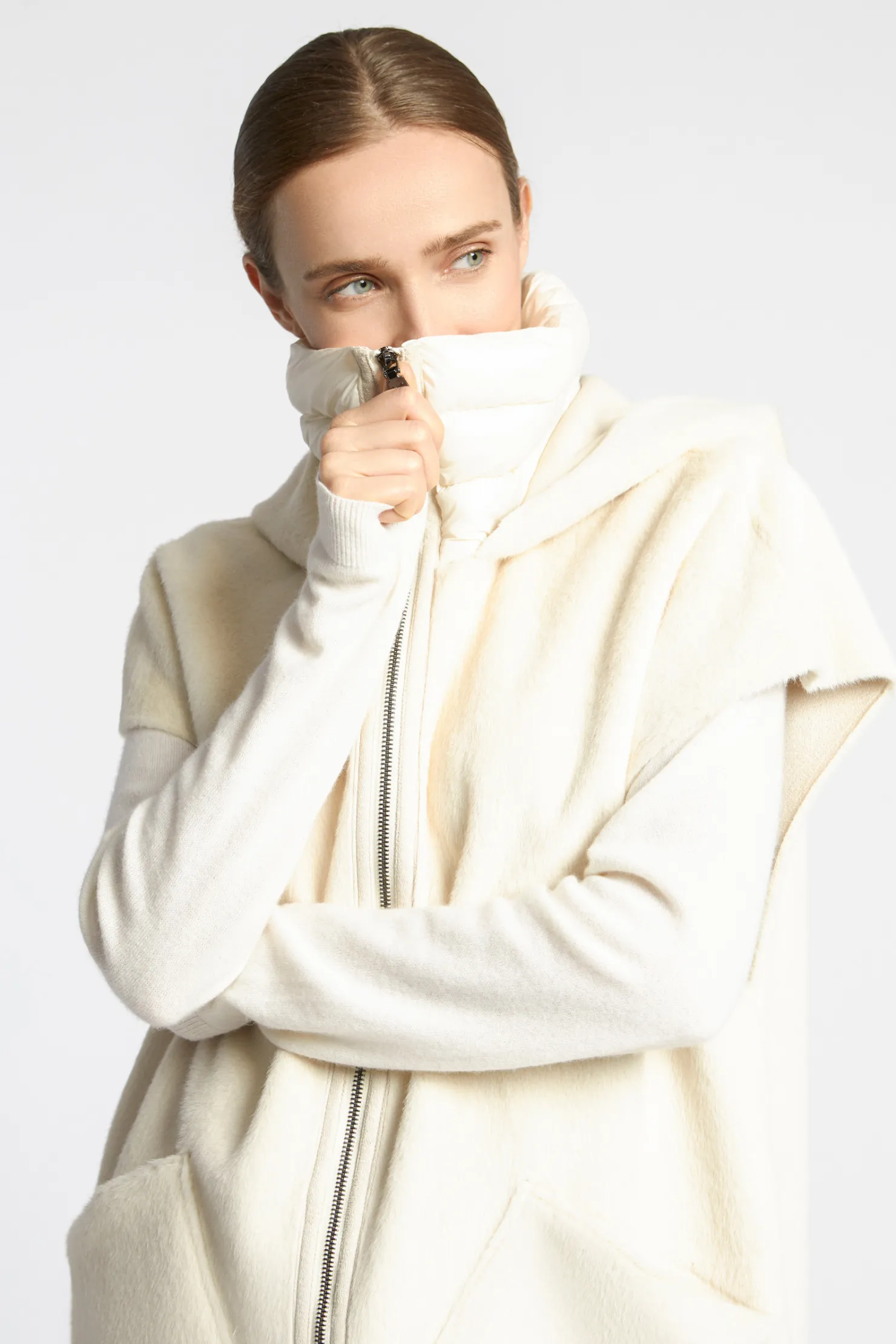 Mouwloze faux fur jas Opgestikte zakken Gewatteerde opstaande col Kap Ritssluiting