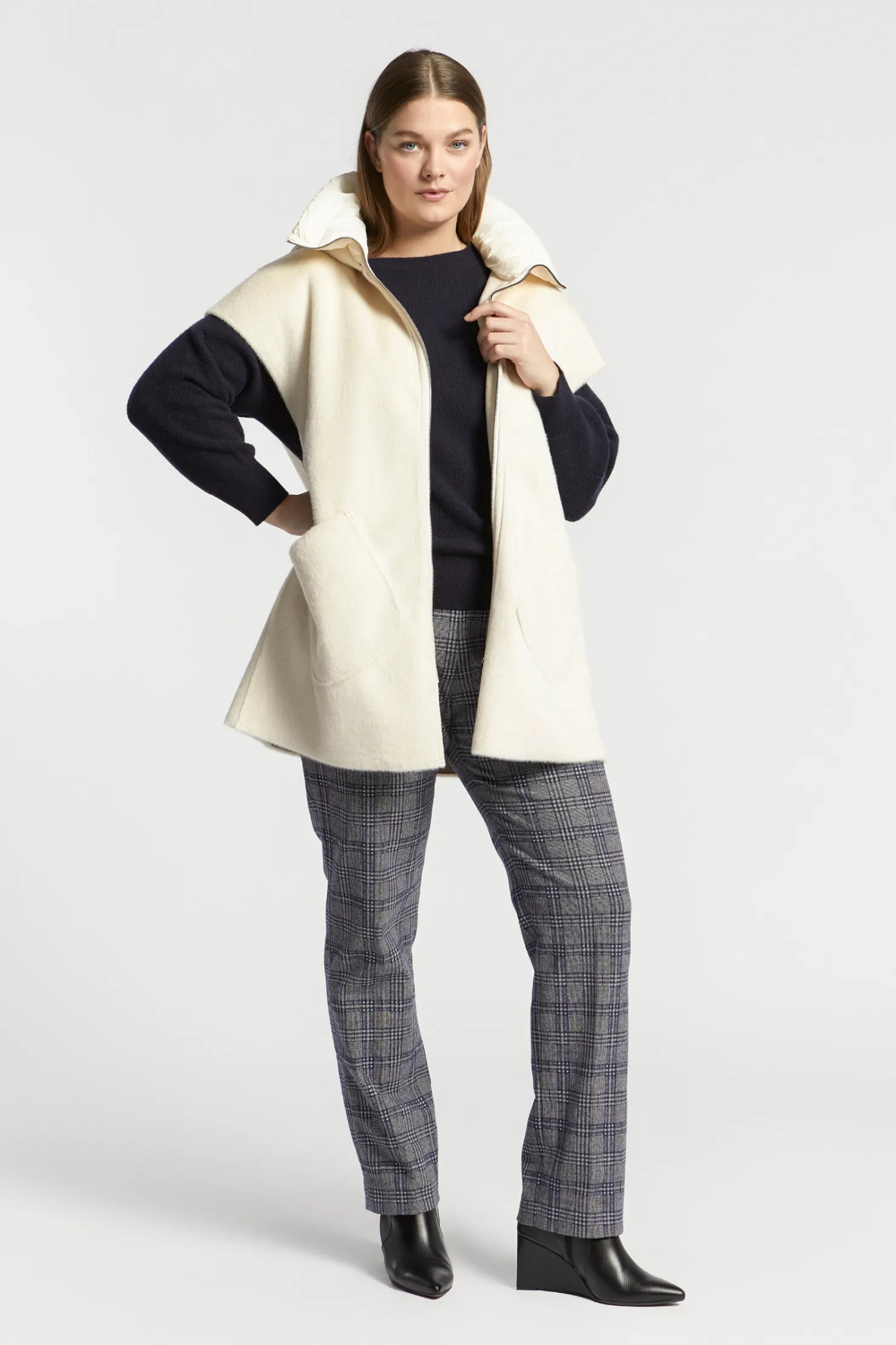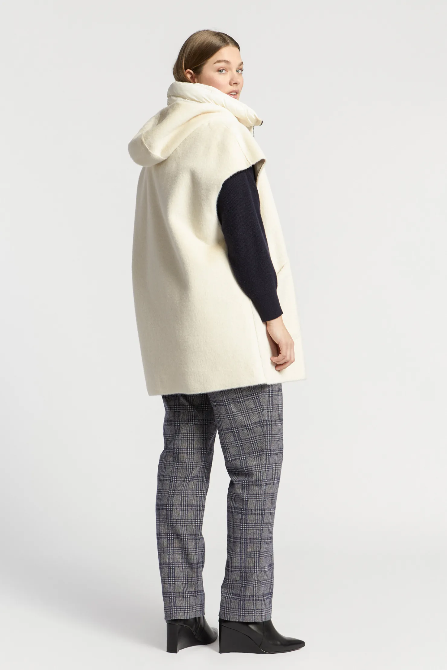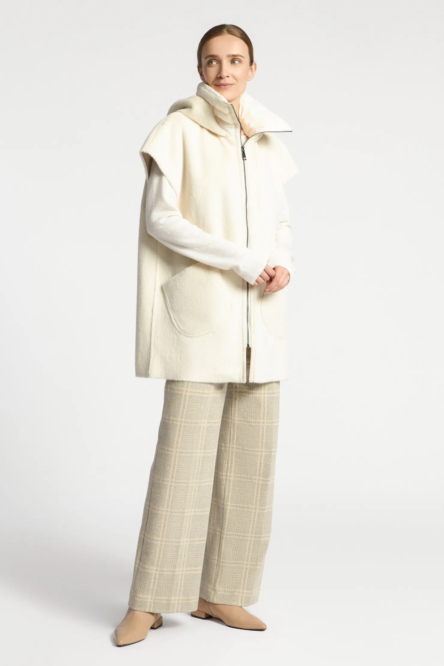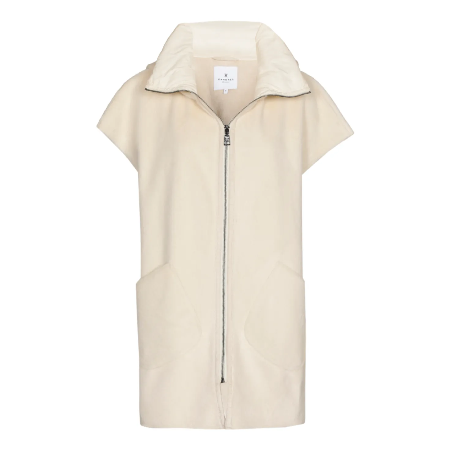 Mouwloze faux fur jas Opgestikte zakken Gewatteerde opstaande col Kap Ritssluiting