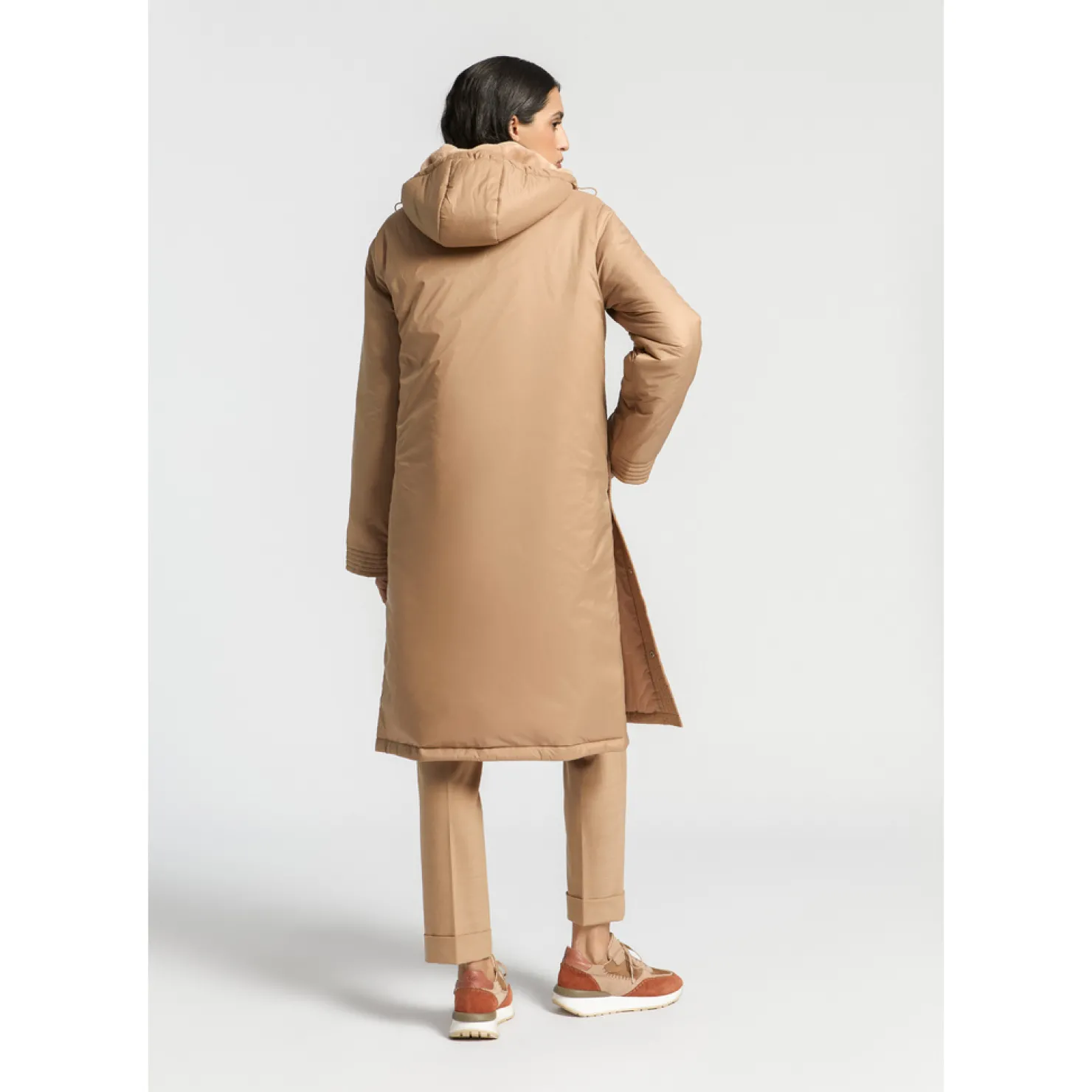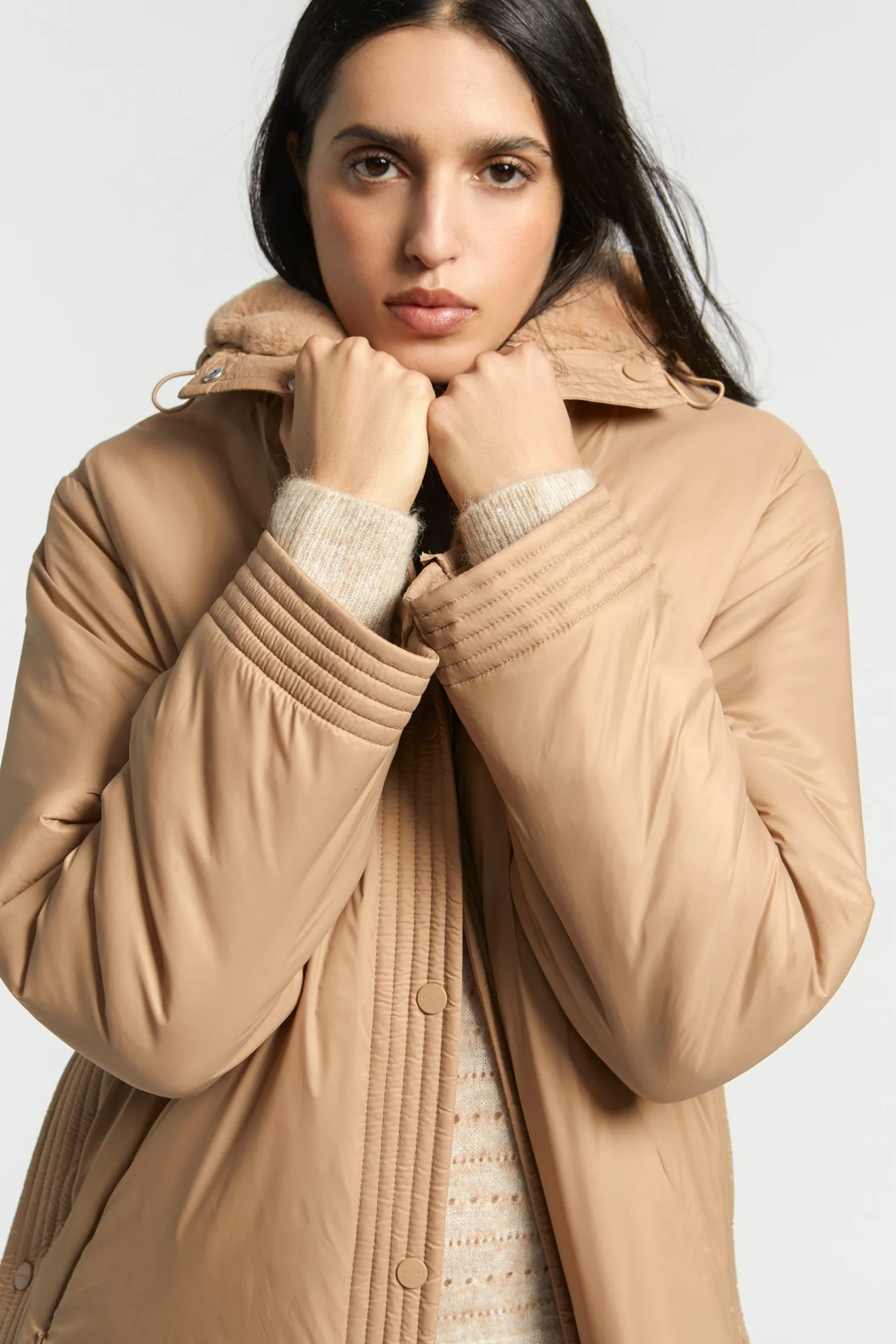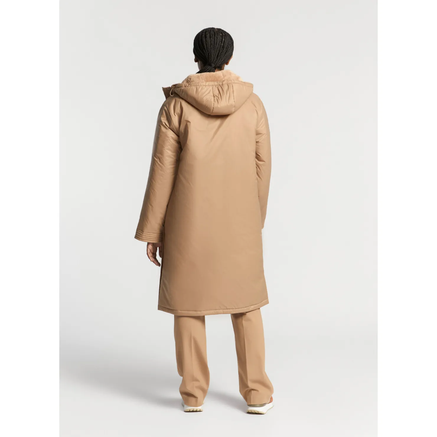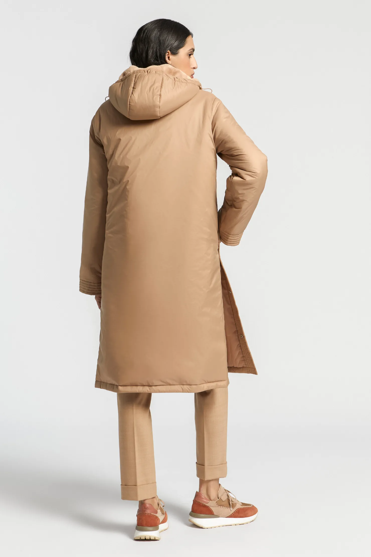 Lange padded parka Drukknopen en split aan zijkant Kap met faux fur Sluiting met drukknopen Steekzakken in zijnaad