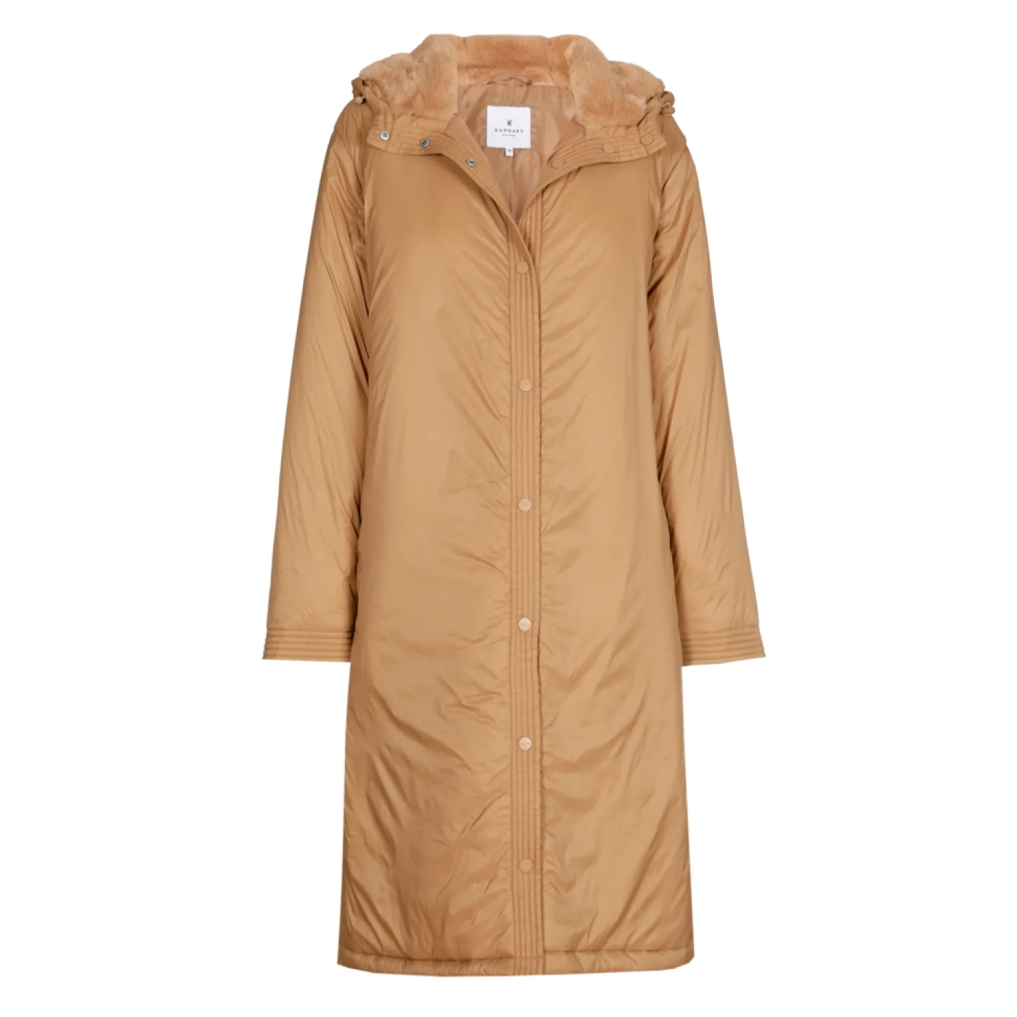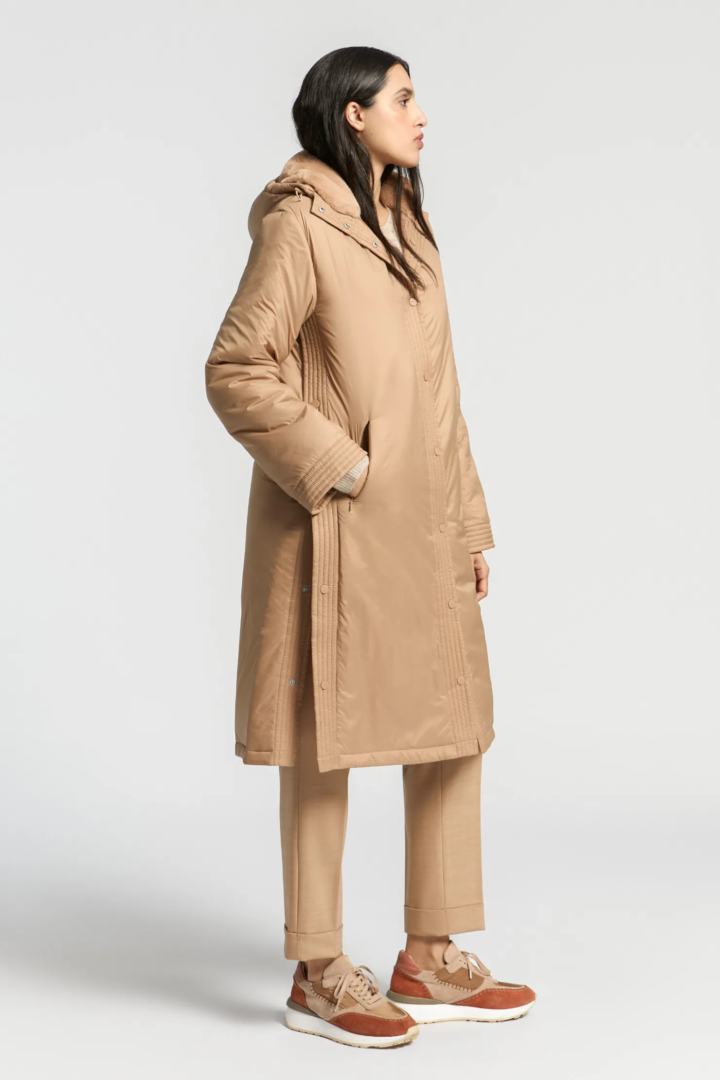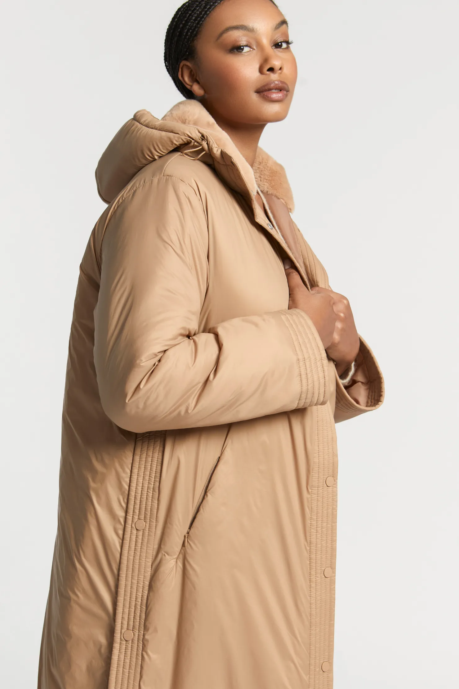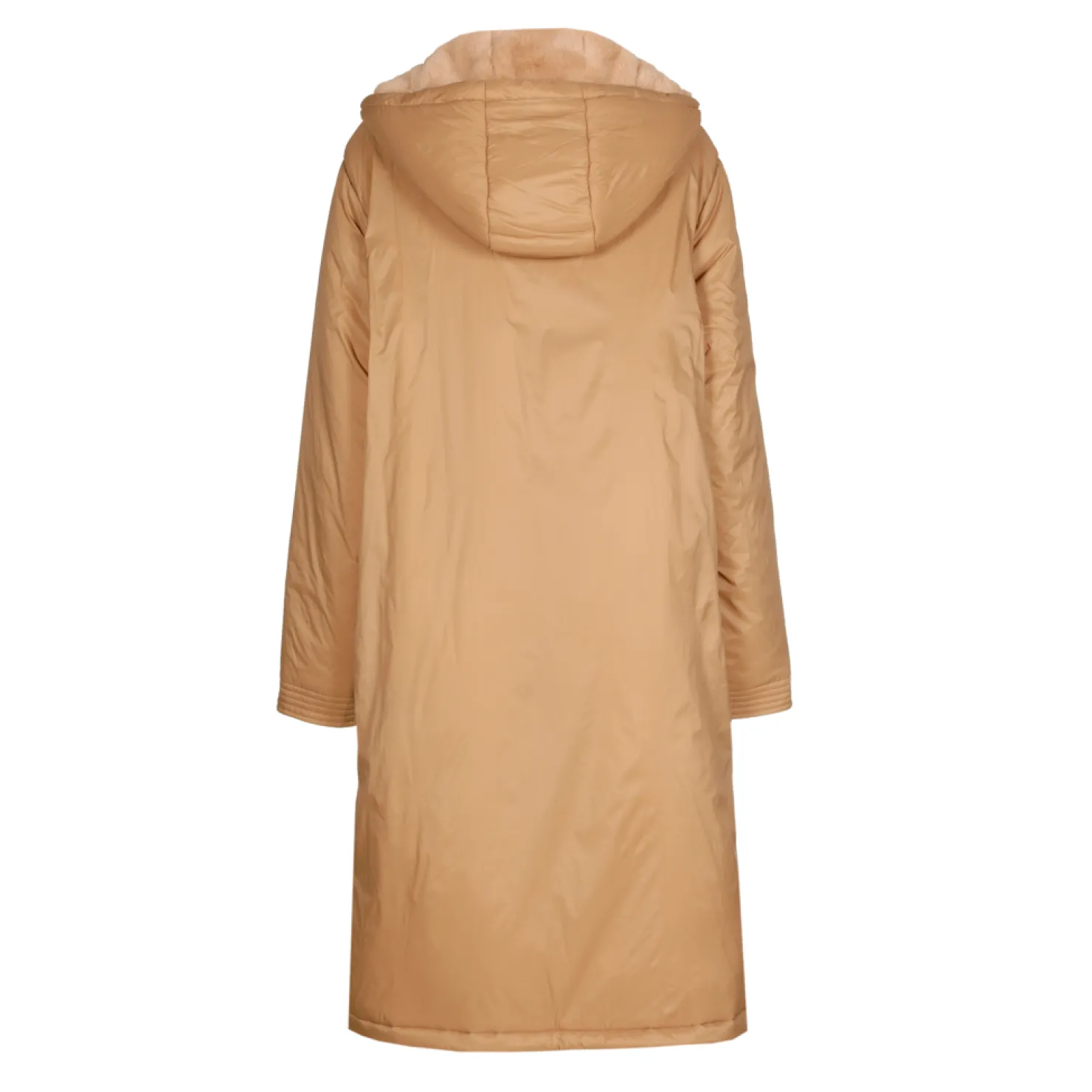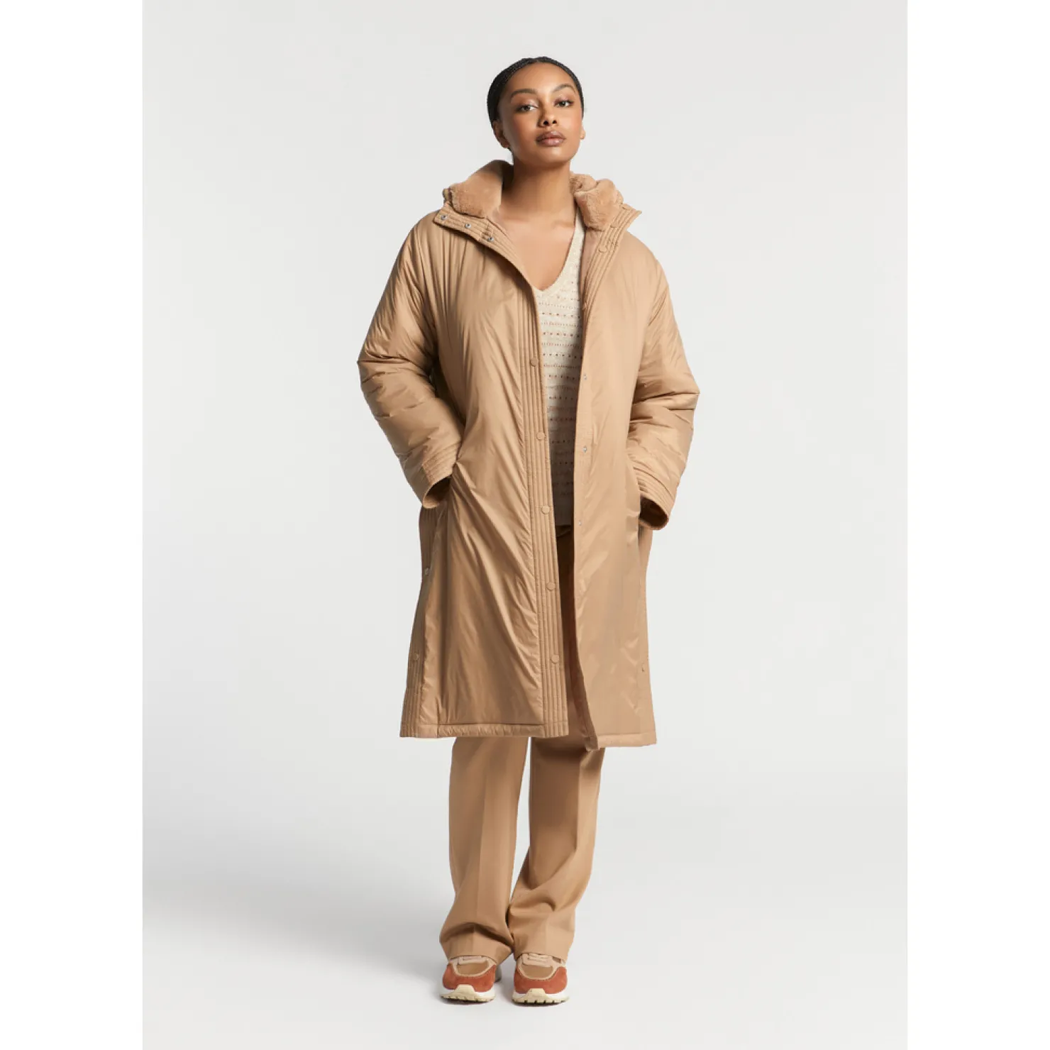 Lange padded parka Drukknopen en split aan zijkant Kap met faux fur Sluiting met drukknopen Steekzakken in zijnaad