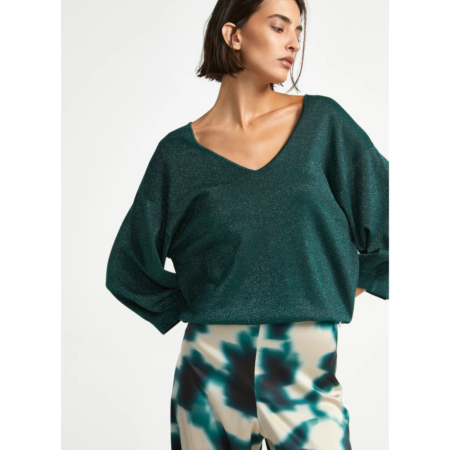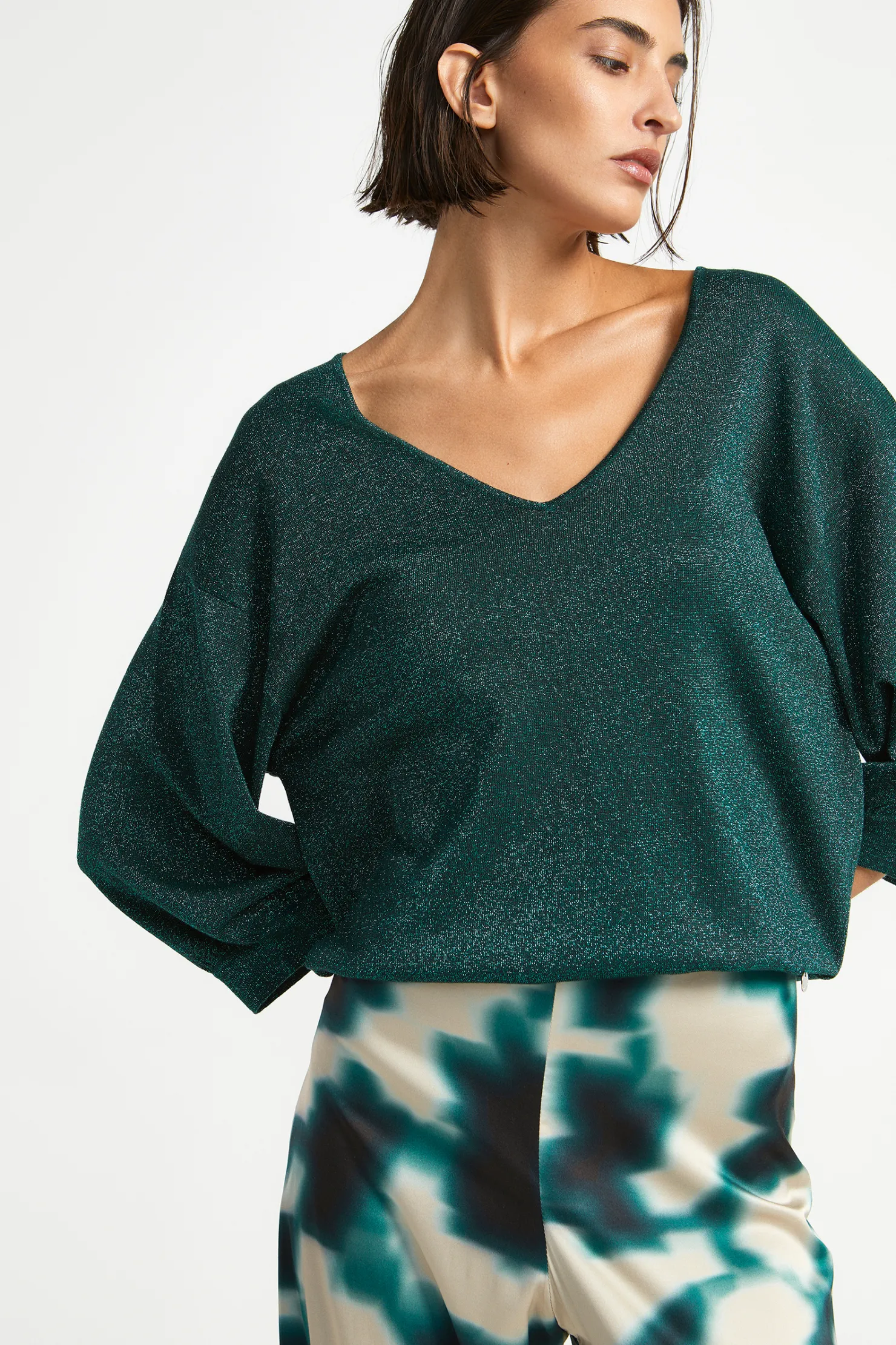 Oversized V-hals Volumineuze 3/4 mouwen Lurex