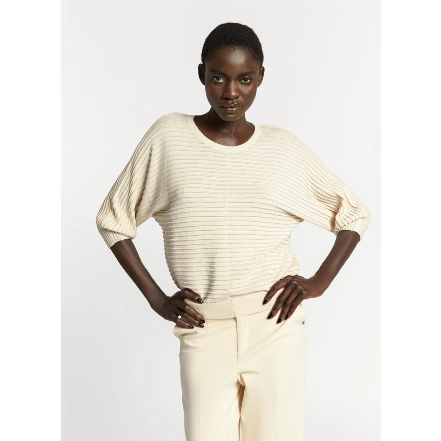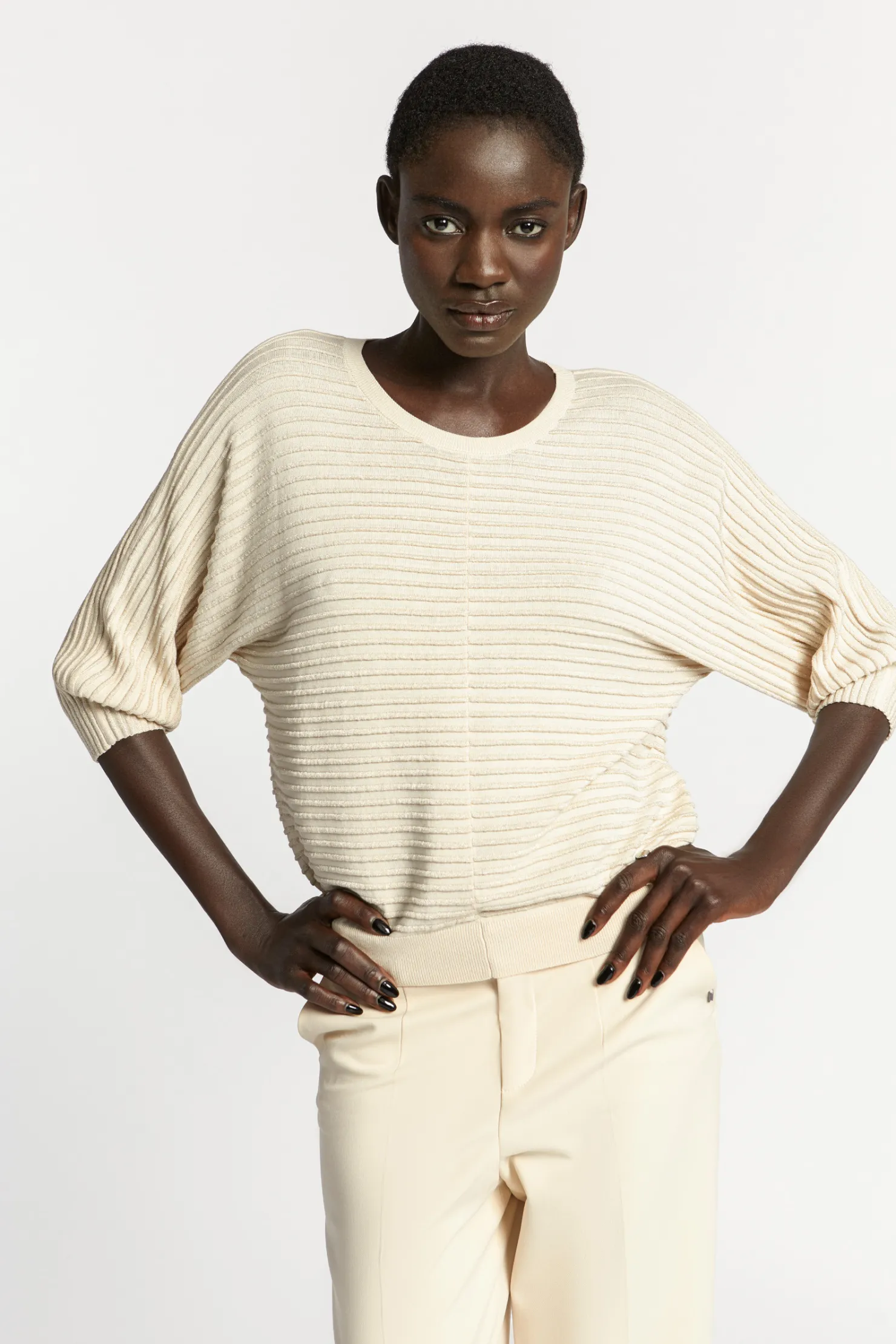Toon op toon lurex Ronde hals Aangebreide mouw Volumineuze pasvorm Ottoman-steek