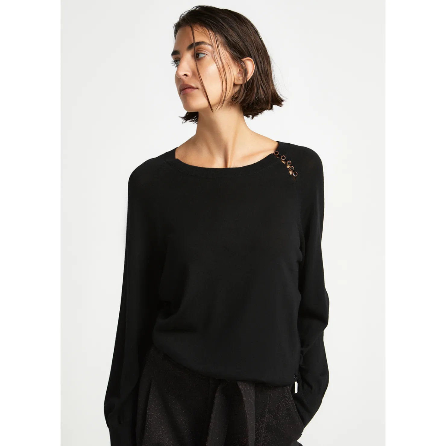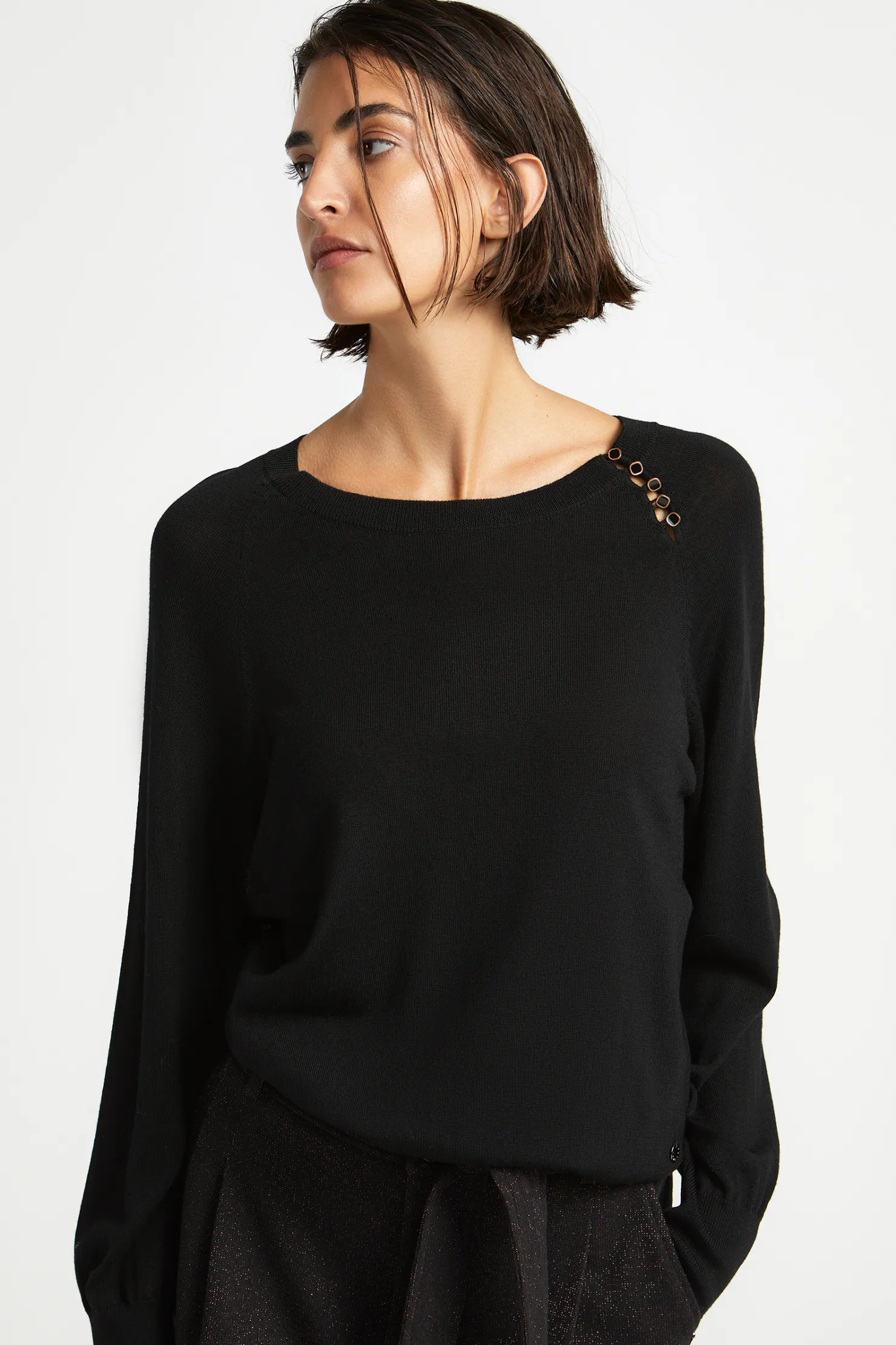 Elegante boothals met knoopjes Fijn gebreid 100% low impact wol
