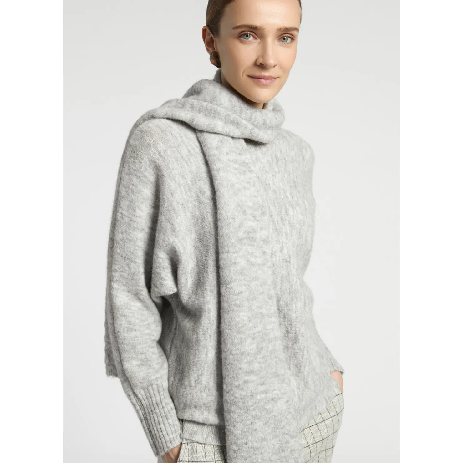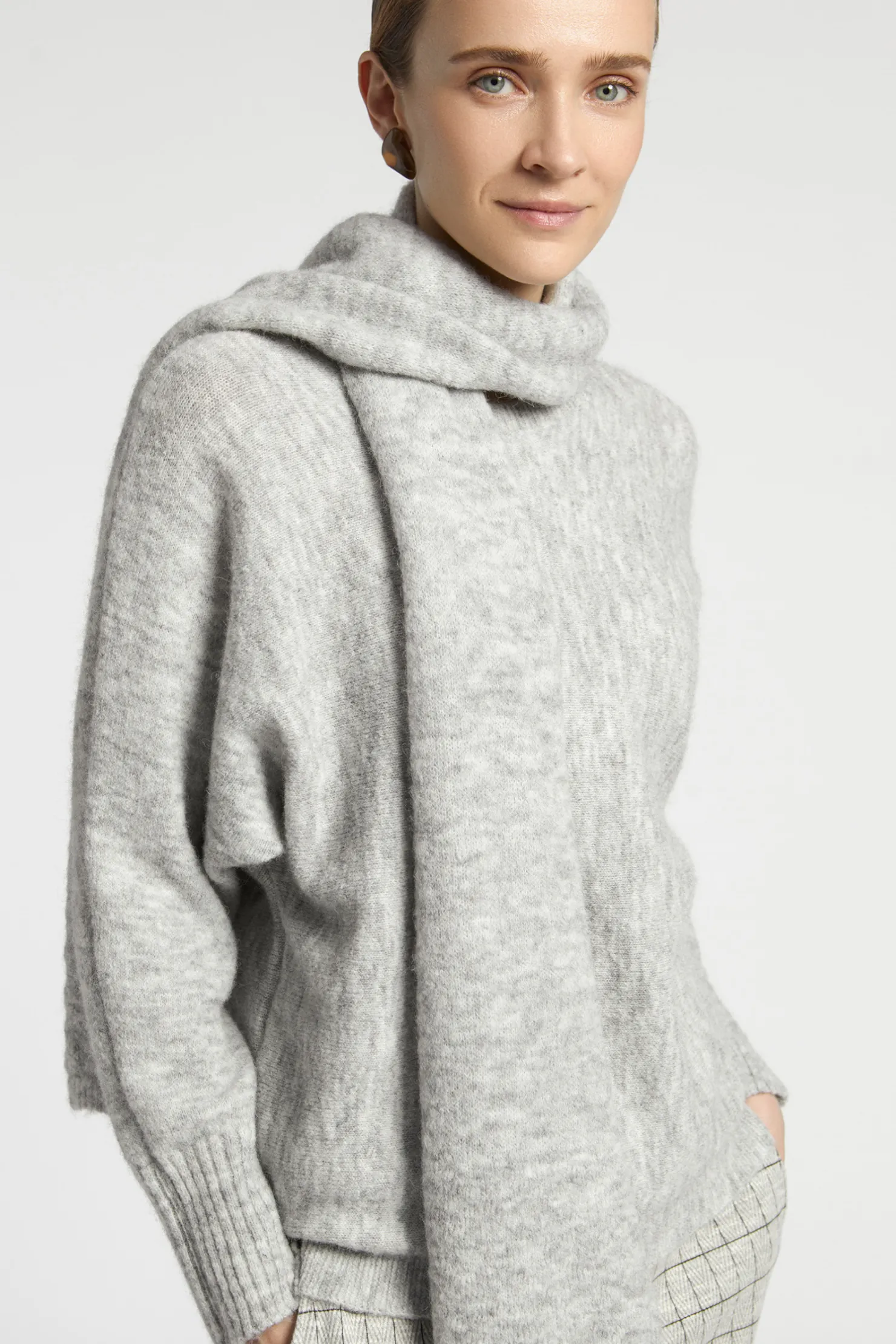 Wolmix met alpaca Ronde hals Wijde, aangebreide mouwen Geribde boorden